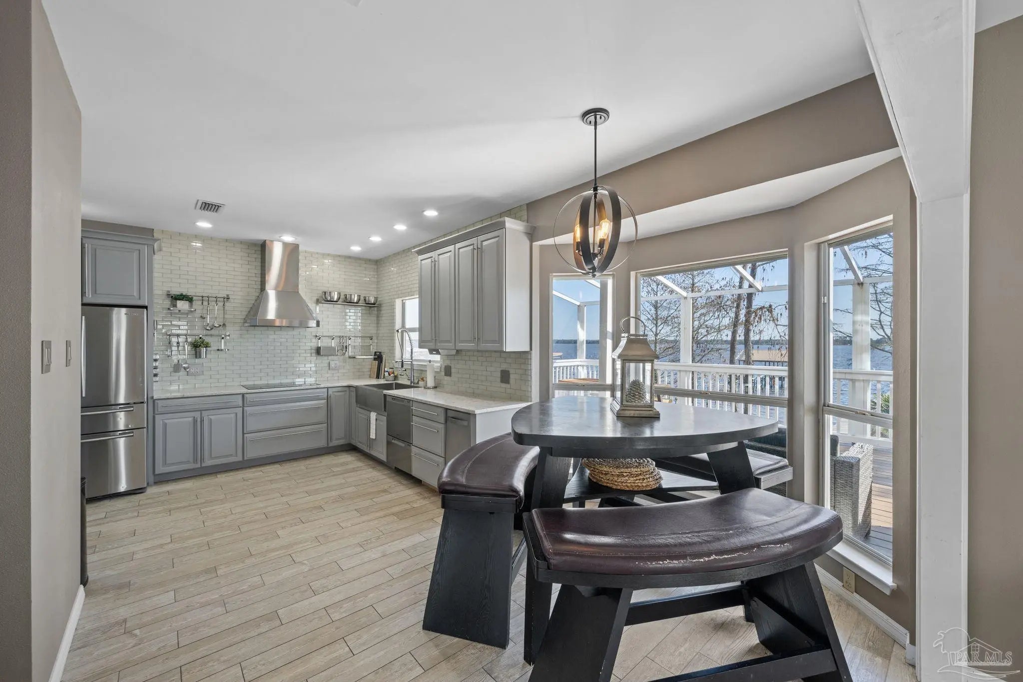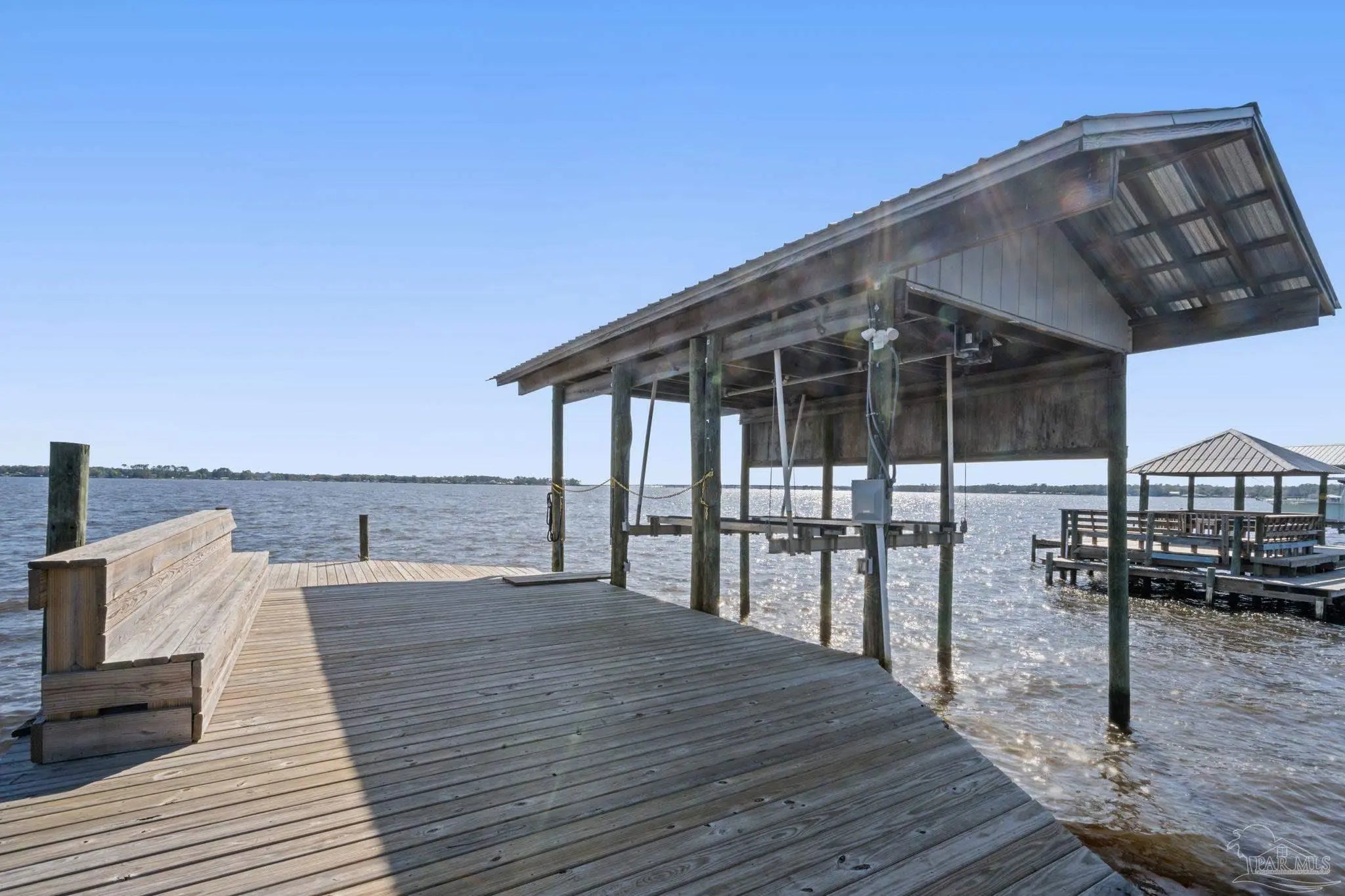 Experience refined Bayfront living in this beautifully upgraded waterfront retreat, complete with multiple decks, private pier, boathouse, and boat lift. Designed for both entertaining and coastal living, this residence captures the very best of Gulf Coast sunsets and waterfront access. The chef’s kitchen underwent a full renovation in 2017 and showcases premium stainless steel appliances, including a convection oven, microwave, hood, and cooktop. A farmhouse sink with restaurant-grade sprayer anchors the space, complemented by striking white granite countertops, classic subway tile backsplash, double dishwashers, and a built-in trash compactor. The main level is finished with 12" tile plank flooring and 2" blinds throughout for a clean, cohesive look. Step onto the newly updated screened balcony and take in panoramic bay views before heading down to the heated saltwater gunite pool with fountain; an inviting outdoor sanctuary ideal for both quiet evenings and gatherings. The sunsets from this vantage point are simply unforgettable. Upstairs, extensive 2018 renovations expanded the primary suite and added an additional bedroom, increasing the home’s overall footprint. The primary ensuite offers two walk-in closets, dual vanities, and a zero-entry shower, delivering both comfort and sophistication. Outdoors, true waterfront living awaits. The private pier features a boathouse and boat lift rated for up to 6,500 lbs, providing direct, convenient access to the bay. The ground level includes generous garage storage and a full bathroom; perfect after a day on the water or by the pool. A Tesla charging station adds a modern, forward-thinking touch. This is Gulf Coast waterfront living elevated. Schedule your private showing today.