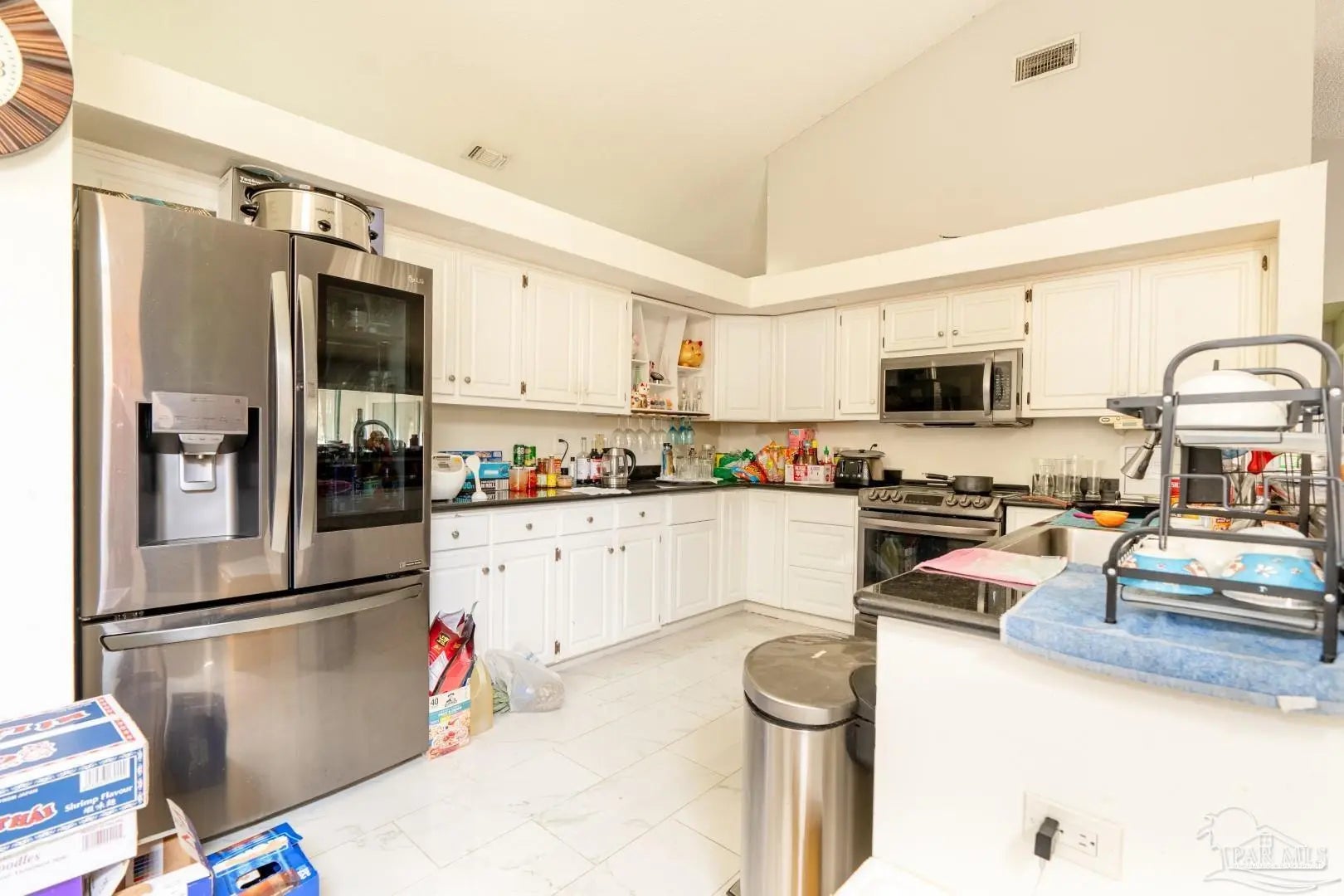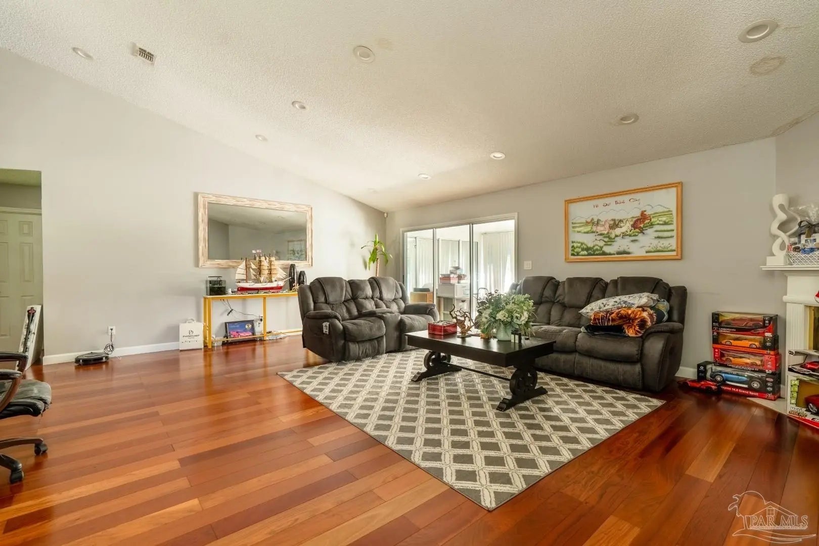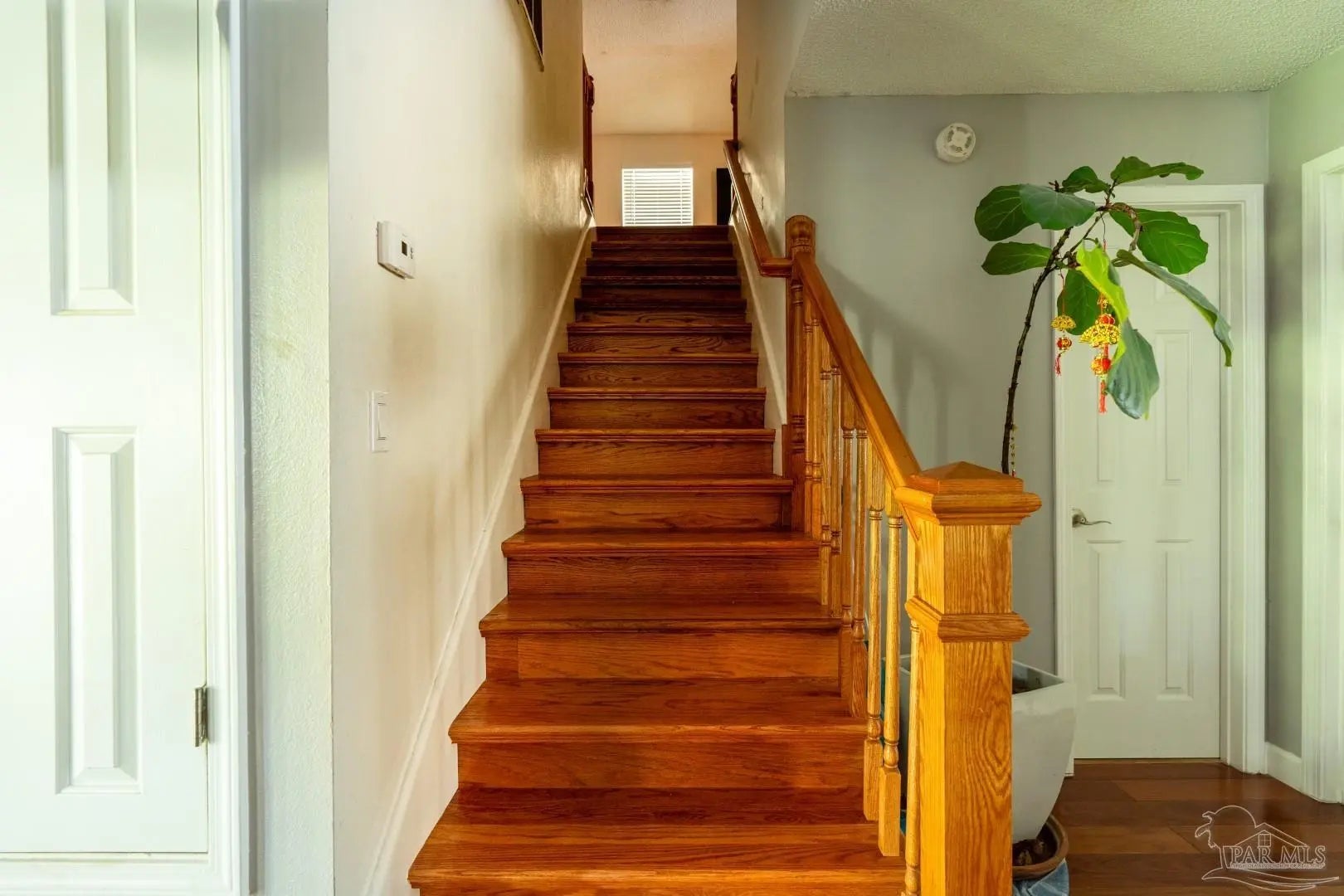 Charming 4-bedroom, 2.5-bath home in the highly sought-after Marcus Pointe subdivision! This spacious 2-story brick home comes with a side-entry two-car garage and a large in fenced backyard, perfect for adding a pool or creating your own garden retreat. With plenty of extra space, you can easily add a workshop or storage building for all your toys. Perfect for BBQs and family gatherings, the home offers a downstairs master suite, an enclosed Florida room filled with natural light, and beautiful cathedral ceilings. Located in a golf course community with access to a community center, this home sits on over half an acre, offering lots of potential. Upstairs are three additional bedrooms and a cozy sitting area, great for relaxed family living. In the heart of Pensacola, this home is minutes from white sandy beaches, shopping centers, top-rated schools, universities, and great restaurants. The kitchen features granite countertops, stainless-steel appliances, ceramic marble tiles, and updated light fixtures. Luxury wood flooring runs throughout, including in the upstairs living area and bedrooms. The two Florida rooms provide flexible space, ready to be converted into extra bedrooms, a man cave, gym, office, or anything you need. Don't miss the chance to make this your forever home!