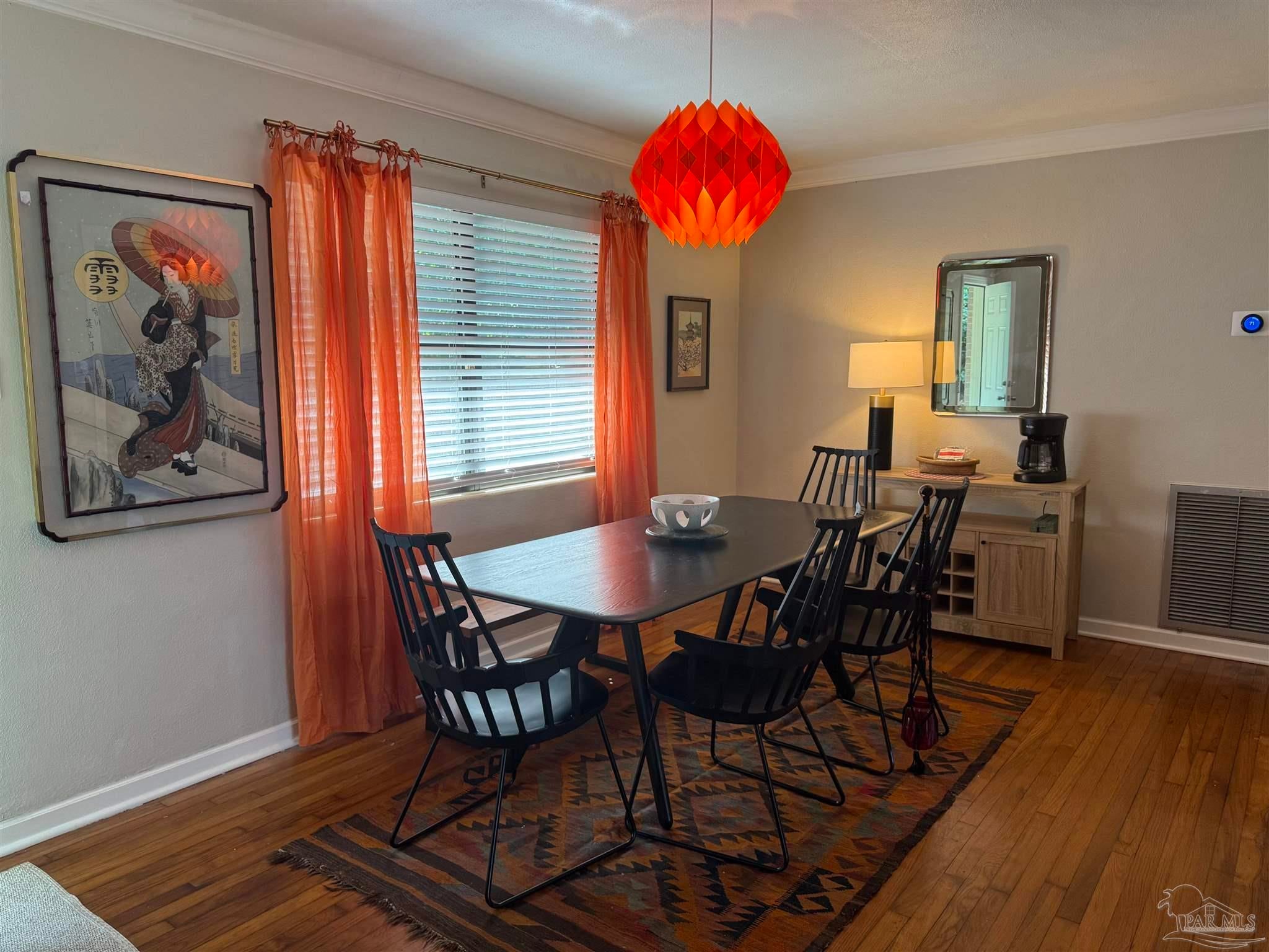 PRICED TO SELL!!!! Well maintained home located in beautiful PINEGLADES, only minutes from Cordova Mall, Sacred Heart Medical, Pensacola State College, Top Restaurants, Great Schools and only 5 mins from Downtown Pensacola and 15 minutes to the lovely WHITE SAND Beaches. Home features 3 bedrooms and 1 full bath with an amazing floor plan that welcomes any kind of décor. You will notice a great lot, gorgeous landscaping and lots of mature trees for shade when you first arrive. Neighborhood Park is a short distance from the house featuring trails, walkways, playground equipment etc. Home also features HARDWOOD Flooring throughout with the exception of kitchen and bath. You will love the updated interior paint, CROWN MOLDING and abundance of windows that allow plenty of NATURAL LIGHT. Right off the dining area is your gorgeous kitchen featuring LVP Flooring, Stainless Steel side by side refrigerator, gas stove, tons of cabinets, window above the sink and an entrance to the garage. Garage also features a WORKSHOP, Work Bench and an entrance to the backyard. Home offers spacious bedrooms with lighted ceiling fans and lots of closet space. Roof was installed in 2018 for your peace of mind. Backyard is very private and has plenty of room for entertaining or pets to run around. Backyard is fenced. Along with all these great features, this home is offered at a very reasonable price for a quick sale. Call today for your private showing.