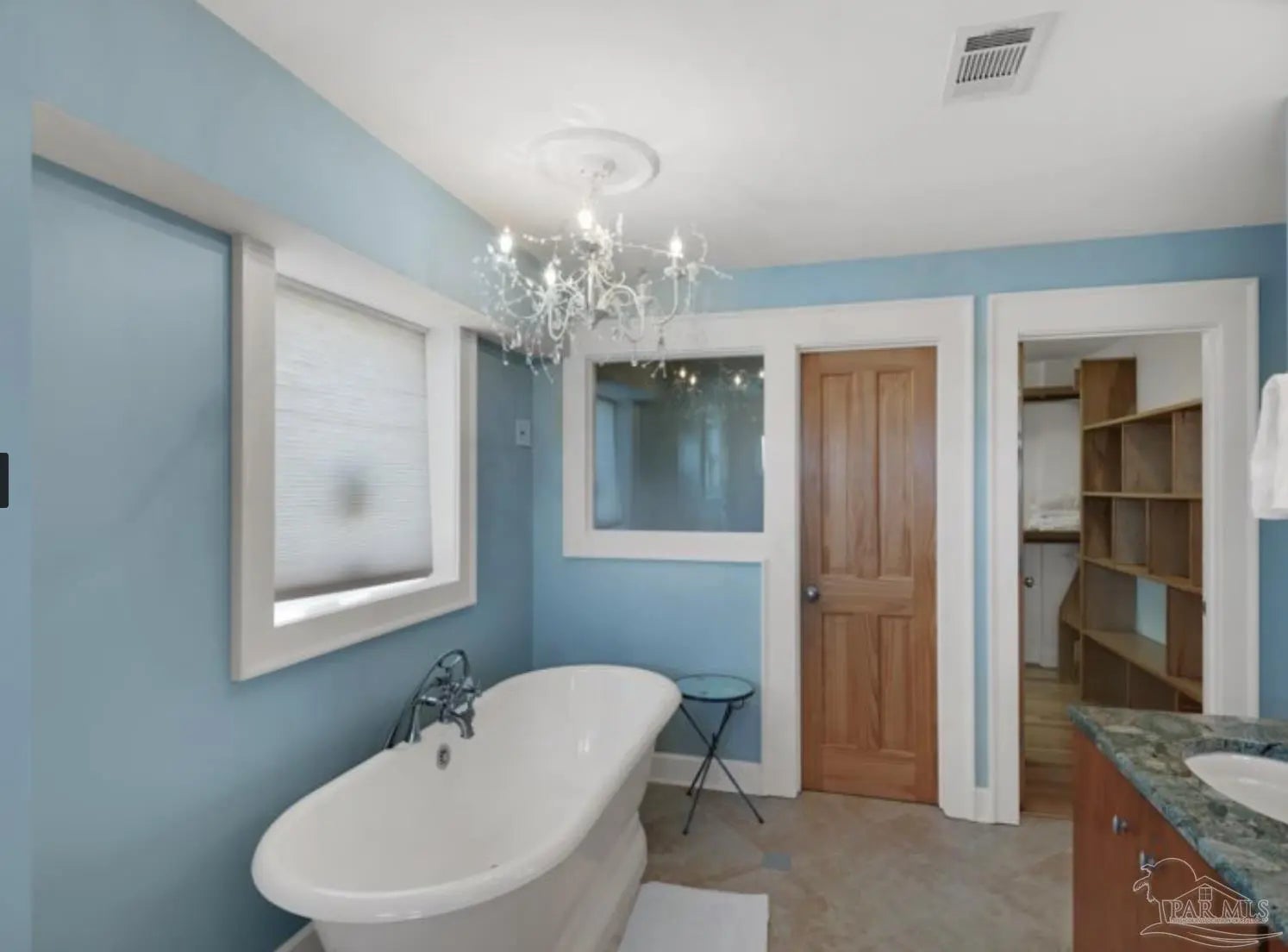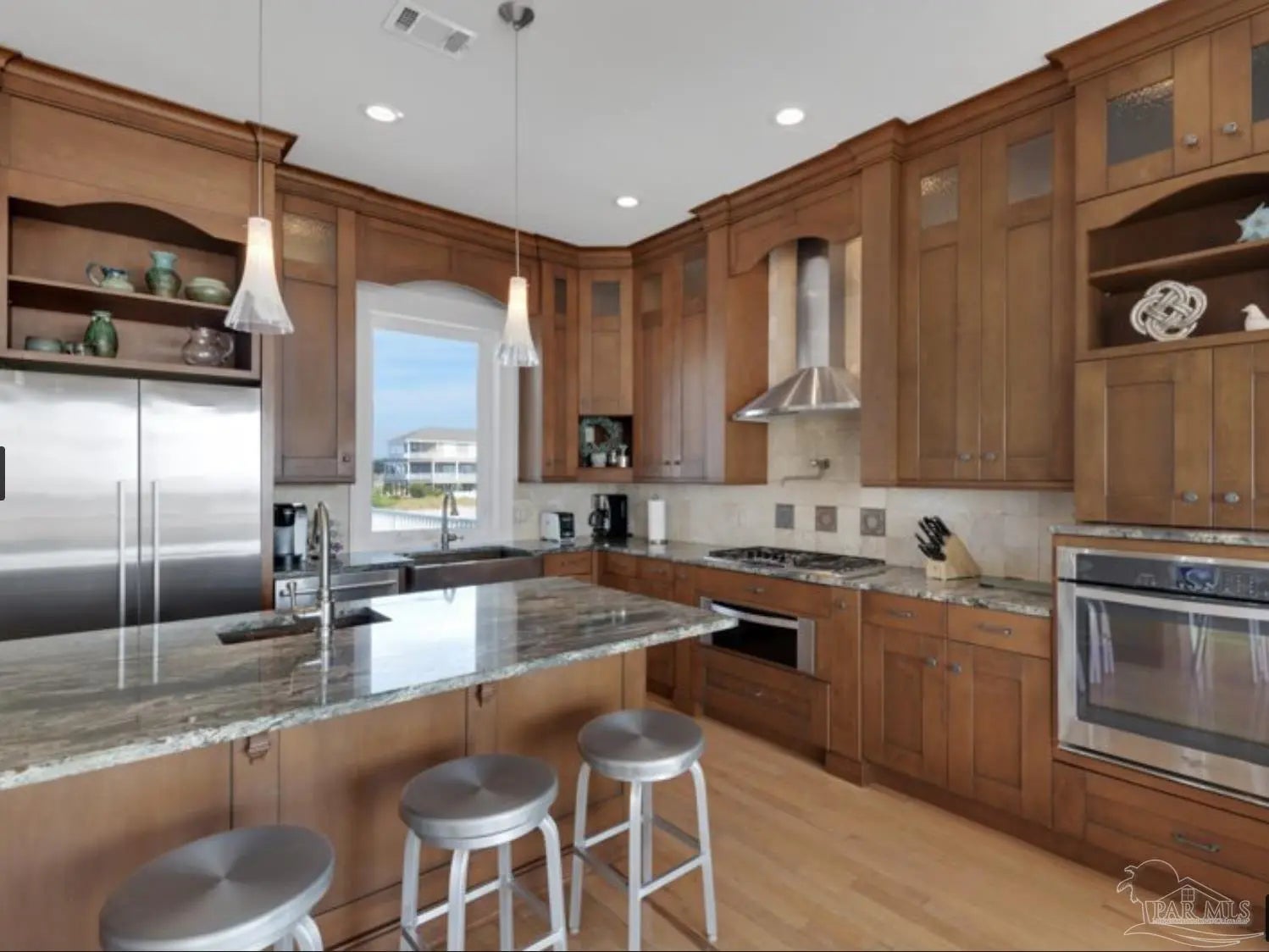 This family, kid friendly beach home features a nice pool with large area for lounging and option to heat the pool. The charm and character this home possesses is seldom found on Pensacola Beach. So much thought was put into the details that you would never guess it wasn't a new custom build. The home has a spectacular views of the gulf and is just a short walk to the beach. On the right side of the house is a closed off path that leads directly to the gulf. The beautiful pool area under the house offers the option of spending the day at the beach or just hanging in the backyard and enjoying the pool. The shaded space is perfect for staying cool while watching the kids swim. This area also has a convenient pool bath with a shower. No climbing the stairs with little ones for the bathroom!! There is a gas grill for cooking poolside.