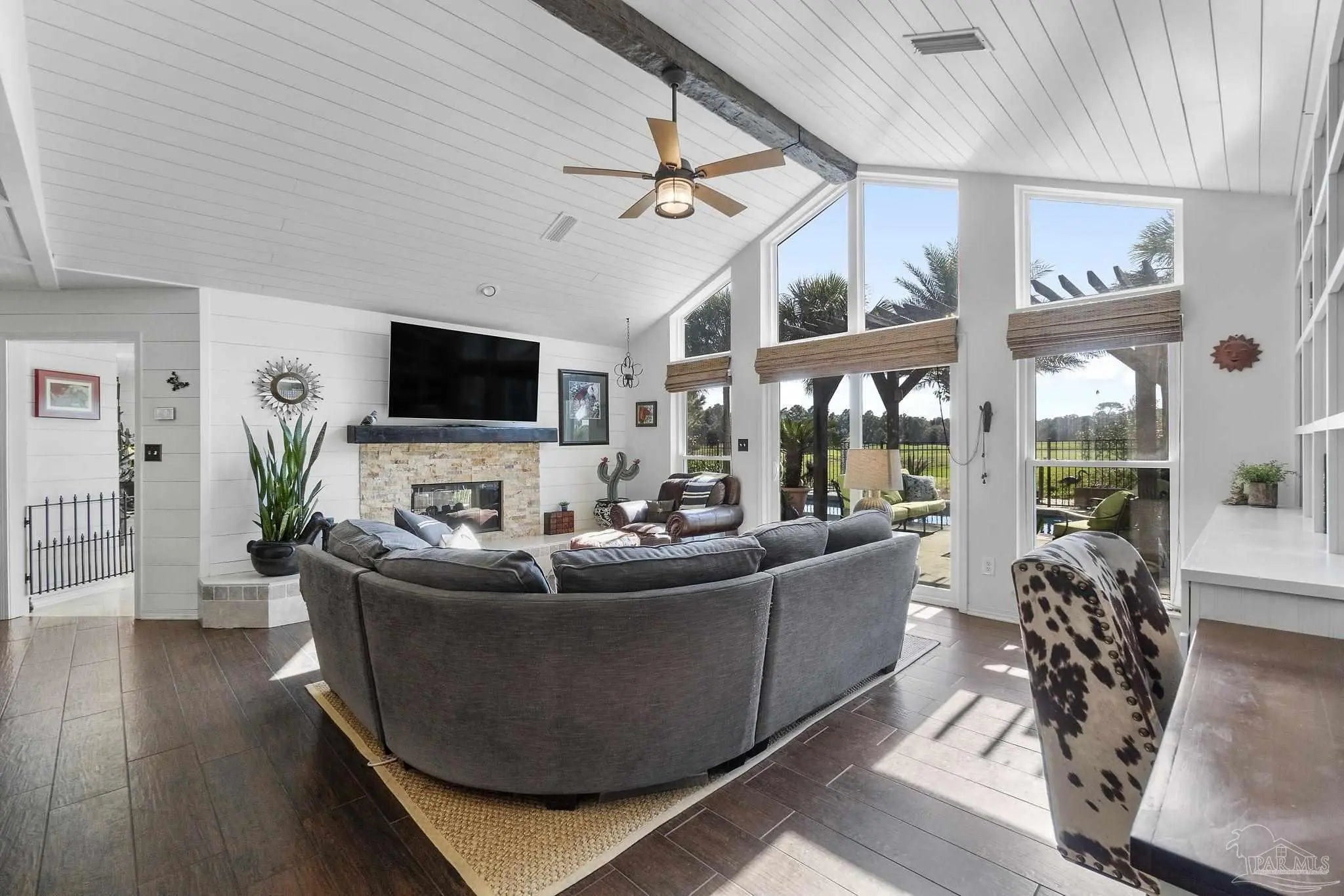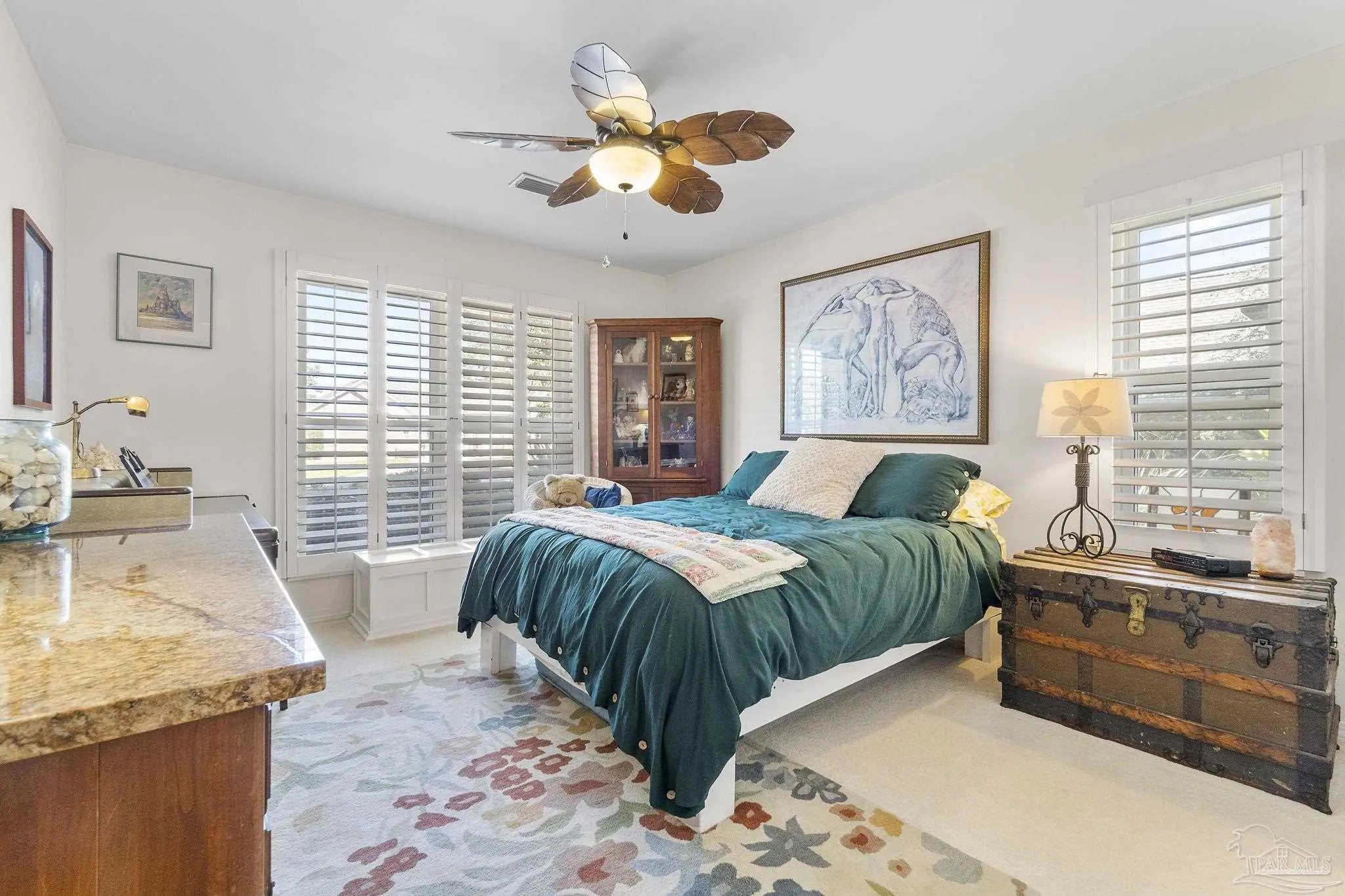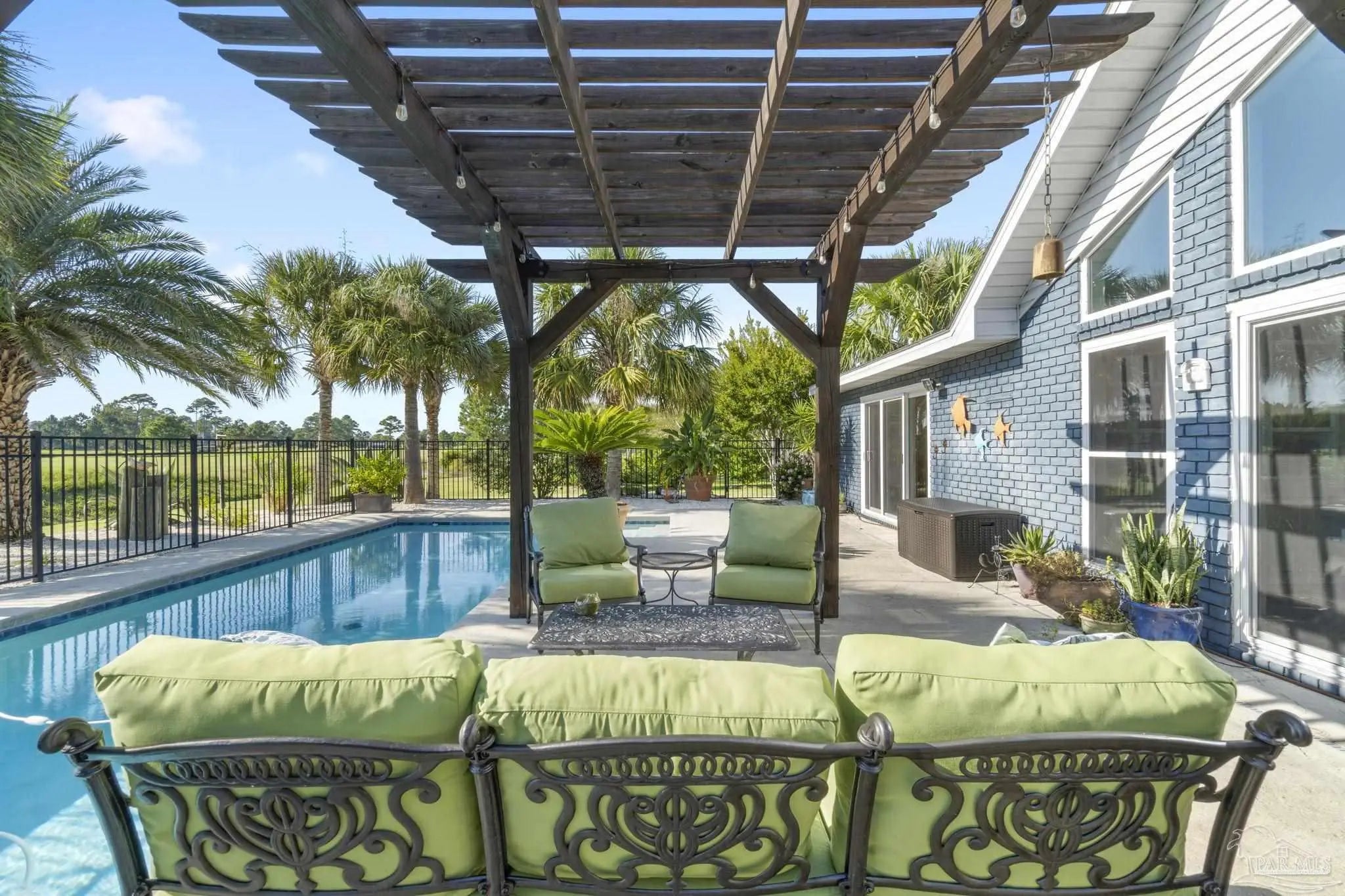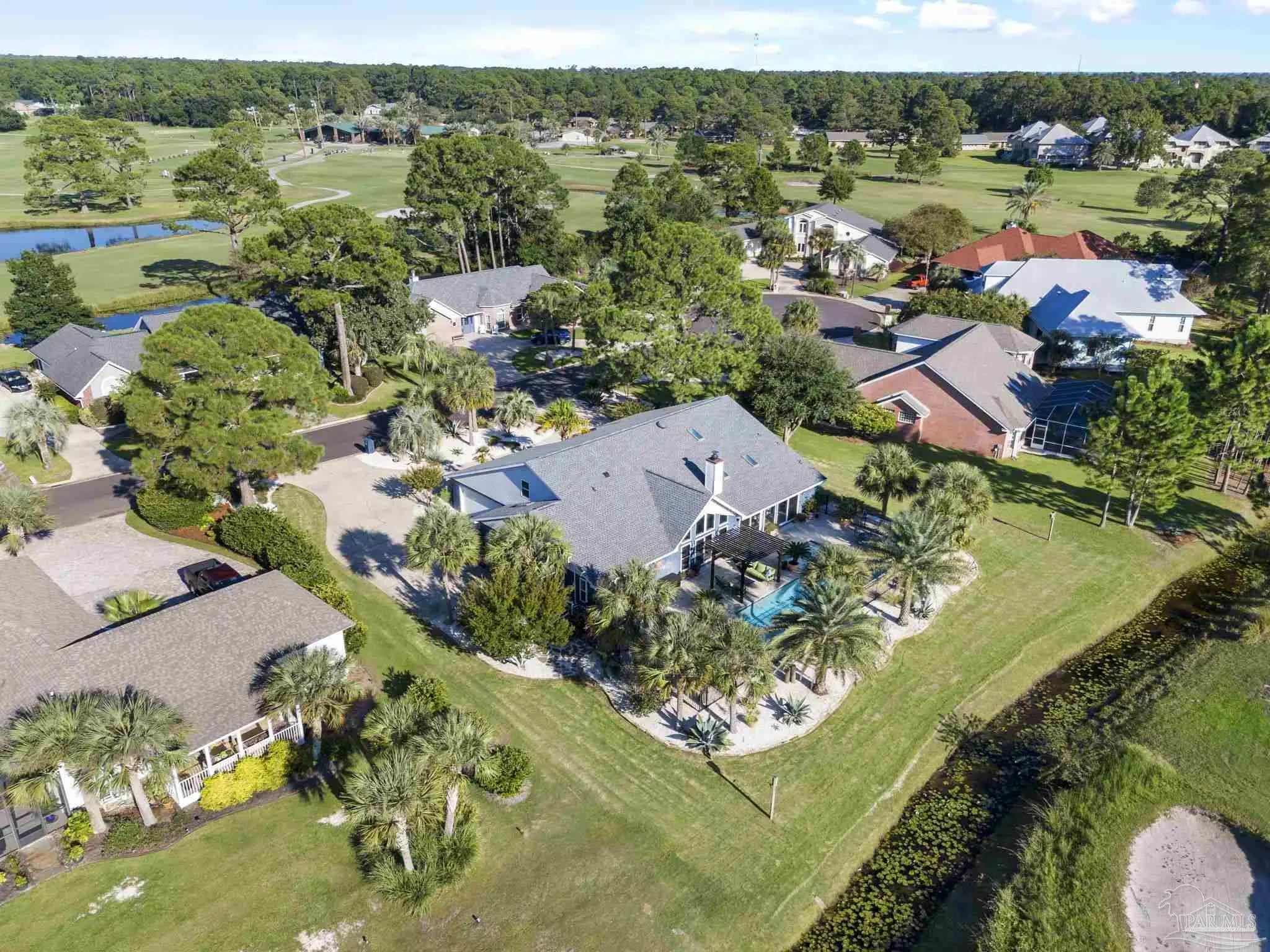 Amazing expansive sunset views looking over the 7th green at Perdido Bay Golf Club. Easy living at its finest, this custom single story brick home has been remodeled with beautiful interior finishes. Custom built saltwater gunnite lap pool with swim shelf. New roof, 2 water heaters, Polaris pool vac, windows/doors & much more. Huge attic with plenty of storage space. Updated with wind mitigation improvements by Rebuild NW Florida. Convenient to the beautiful beach of Perdido Key, NAS Pensacola, restaurants & shopping. Sellers are motivated...bring offers.