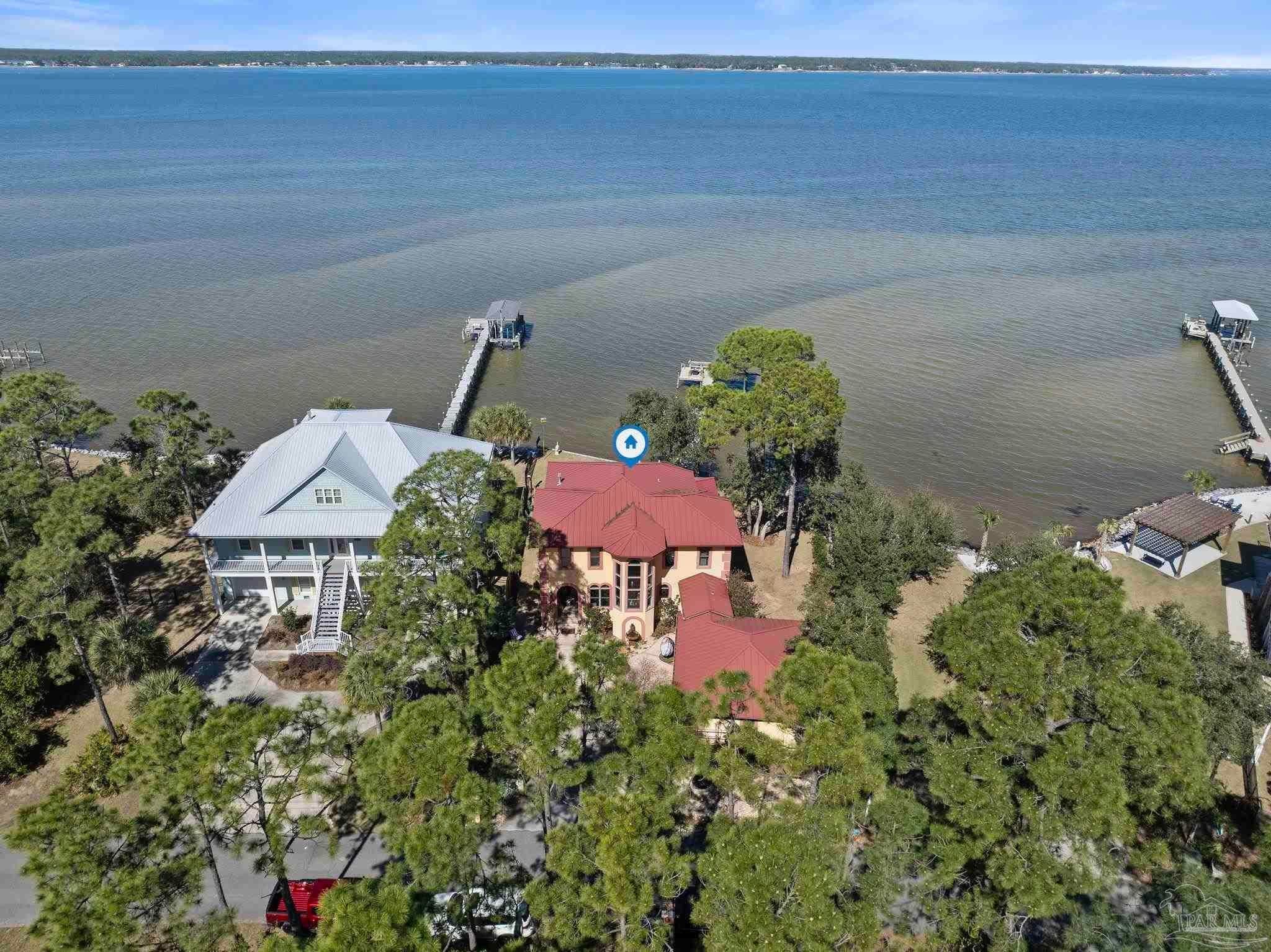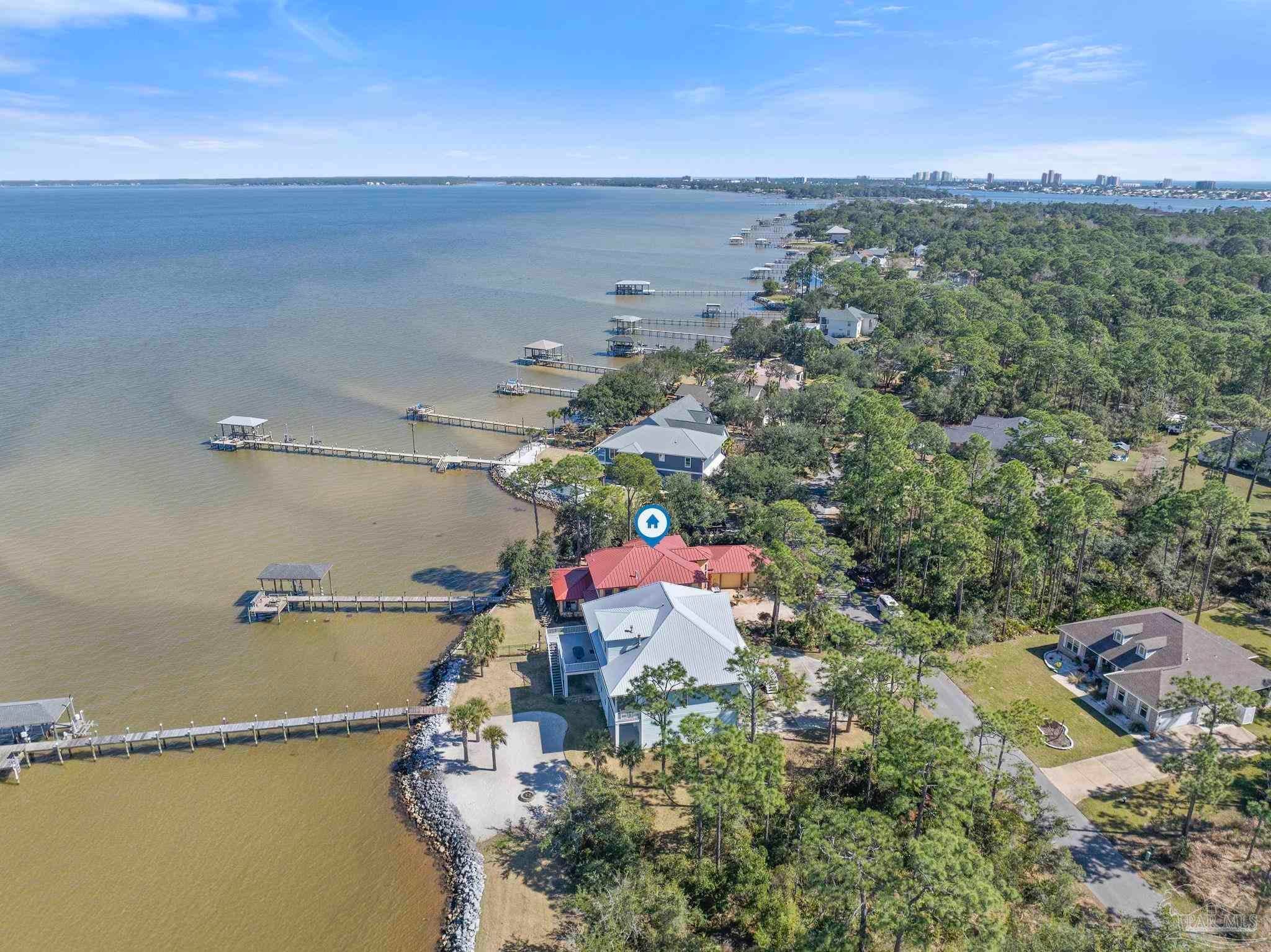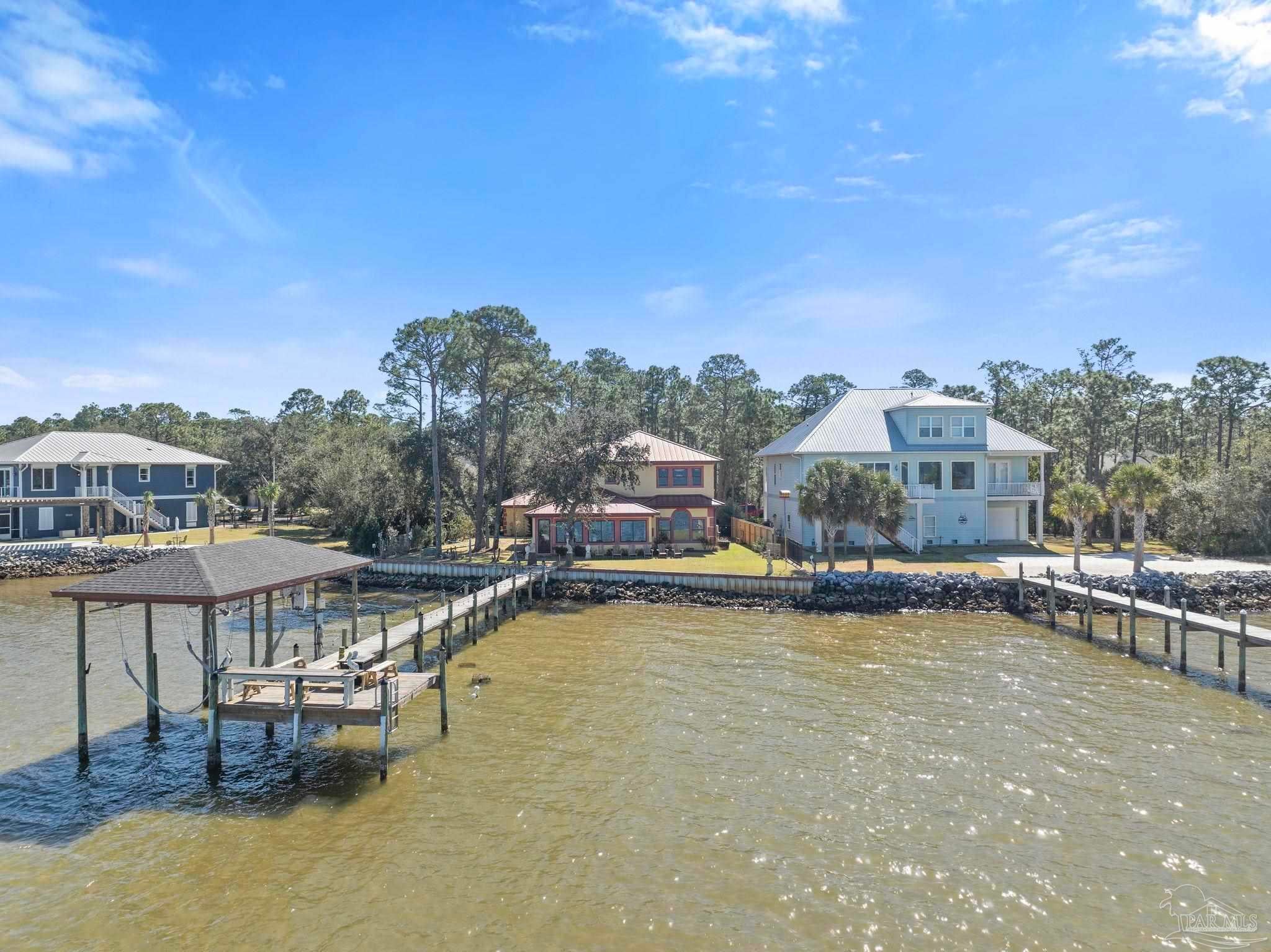Waterfront Wonderland on Perdido Bay – with Dolphins, Fishing & Crabbing! Wake up to sparkling sunrises over Perdido Bay and let the soothing sounds of the water set the tone for your day. This gorgeous Mediterranean-inspired home isn’t just a house—it’s a front-row seat to paradise, complete with daily dolphin sightings and endless fun right from your backyard! Step inside and fall in love with the warm, inviting vibe. The first floor is decked out with authentic Mexican Saltillo tile that adds a splash of charm, while an open-concept layout keeps the kitchen, dining, and living spaces flowing effortlessly together. Picture cozy evenings by the fireplace, mornings with coffee in the sunroom, and every meal served with a side of breathtaking bay views.Head upstairs to your dreamy master retreat, where a fireplace, spa-worthy bath with Jacuzzi tub, and panoramic water views make every day feel like a vacation. And when it’s time to play. Step outside to the newly built Catwalk dock—perfect for fishing, crabbing, or simply watching the dolphins put on a show as the sunsets.This home also comes packed with perks: a whole-home generator (hello, peace of mind!), an artist’s studio that can double as an office or 5th bedroom, a cedar closet, laundry chute, tankless water heater, and more. All this, wrapped up with modern amenities, timeless design, and a $10,000 flex-credit to make it your own. Don’t just live by the bay—live the bay life with dolphins, fishing, crabbing, and pure coastal bliss. Buyer to verify all information during due diligence.