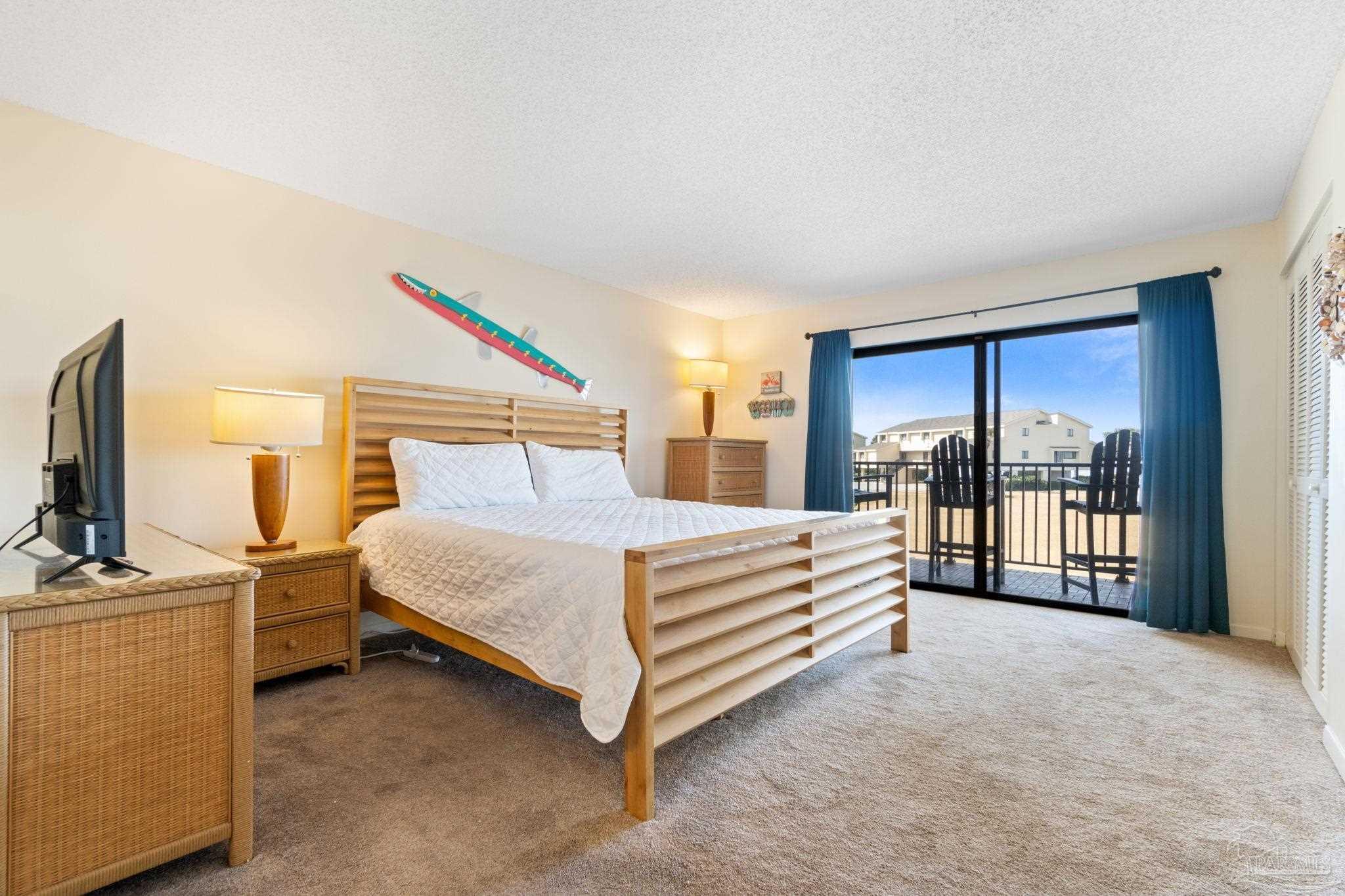 The best 3-bedroom price on Pensacola Beach! Come enjoy a spacious floorplan with an outstanding view! This quiet Sound-side facing condo offers breathtaking sunset views. The spacious three-bedroom, two-bathroom single-level unit provides an open-concept living and kitchen area with bar seating, creating an inviting space for relaxation and entertainment. A covered balcony extends off the living area, offering a charming view of the bay. The master suite features a king bed and an en-suite bathroom with walk-shower. One guest bedroom includes two twin beds, while the second guest bedroom is furnished with two full beds and a twin bed, providing ample sleeping accommodations. A second full bathroom with a tub and shower combination serves the guest rooms. A laundry closet with a full-size washer and dryer adds convenience to the home. Located in the desirable Santa Rosa Dunes Complex, this condo offers resort-style amenities, including an Olympic-sized swimming pool, a shared dock for peaceful waterfront moments, and tennis courts for recreation. The family-friendly environment provides easy access to the calm waters of the Sound, making it ideal for children to explore and play. The complex is well-maintained with beautiful grounds, enhancing the overall experience of coastal living. Just a short walk away, the renowned Peg Leg Pete’s restaurant offers delicious dining, while a nearby corner store ensures convenience. The pristine white sands of the Gulf are within easy reach, allowing for endless beach days. Pensacola Beach is known for its sugar-white sand, turquoise waters, and vibrant beach culture. With bars and restaurants less than five minutes away, this location blends tranquility with entertainment. Keep an eye on the sky, as you might catch a thrilling Blue Angels flyover. Don’t miss the chance to own a slice of paradise at a great price!