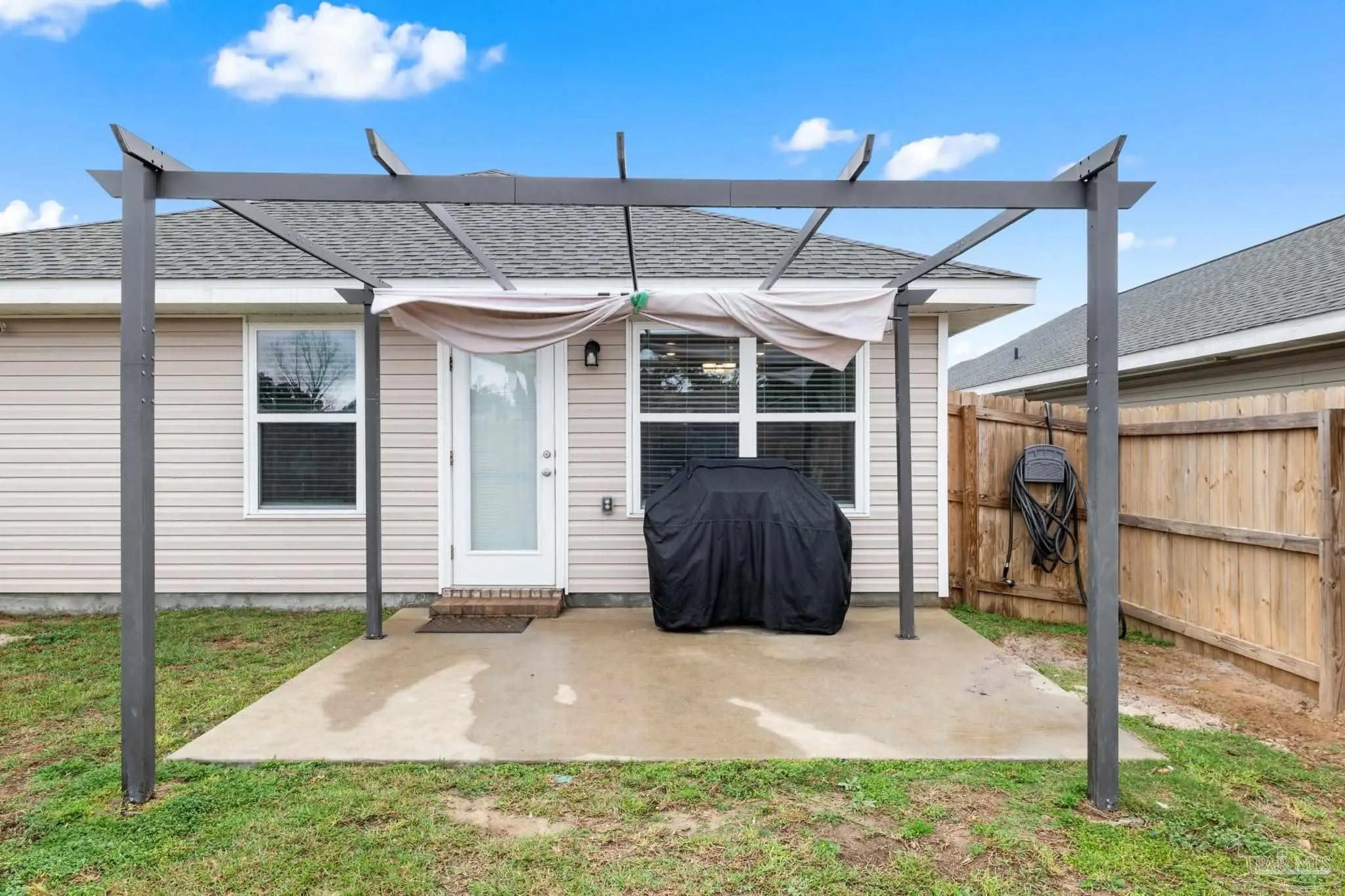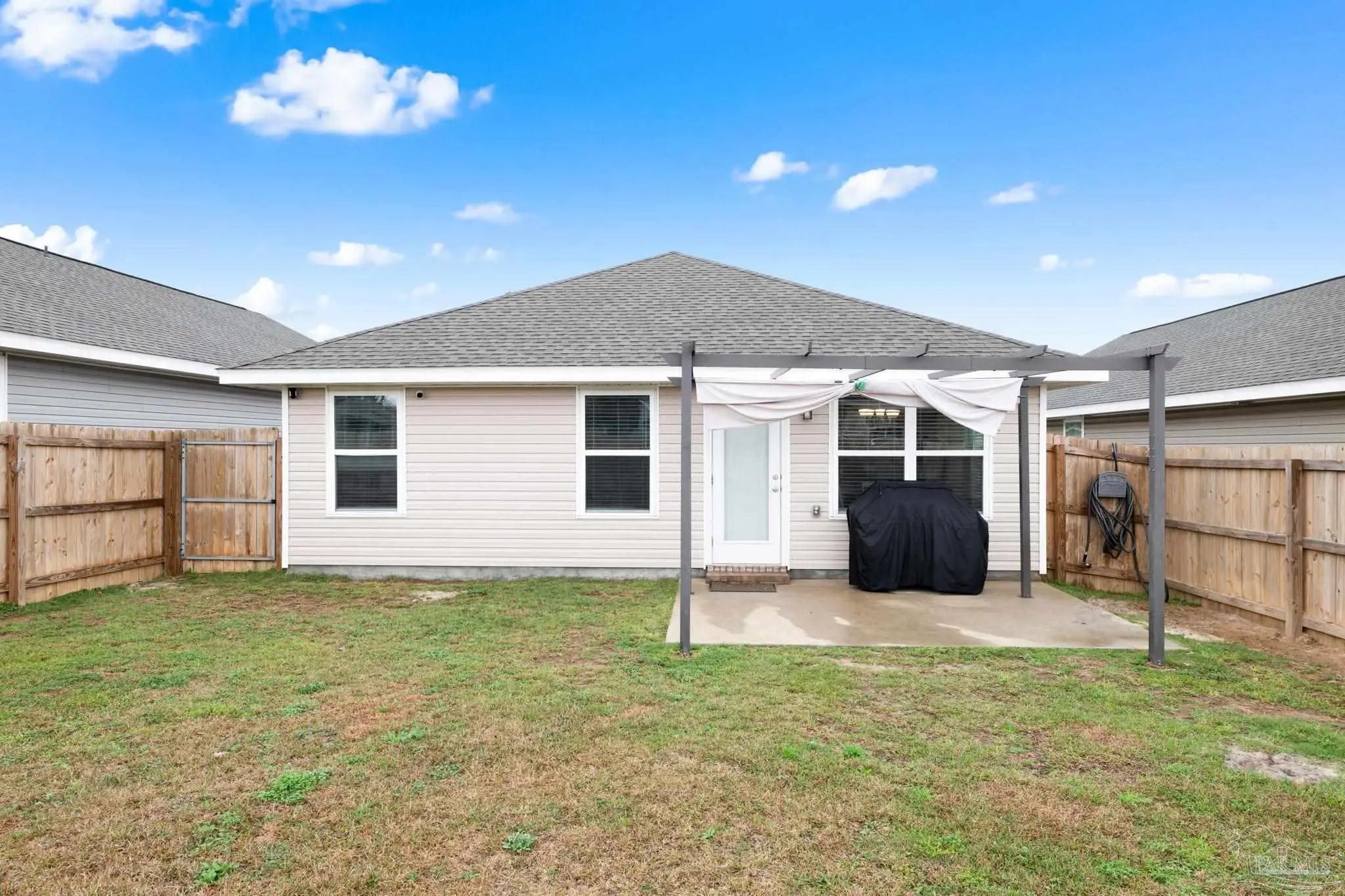 Welcome to 7157 Sonny Dr, Pensacola, FL 32504, a charming single-story home in the desirable Commanders Cove subdivision! Built in 2023, this 3-bedroom, 2-bathroom residence spans 1,515 square feet, offering a perfect blend of modern comfort and prime location. Ideal for UWF students, nurses, first-time home buyers, downsizers, or investors, this home is a fantastic opportunity in the heart of Pensacola’s 32504 zip code. Step inside to a bright and inviting living area, perfect for relaxing or hosting friends. The well-equipped kitchen features modern appliances, including a built-in microwave, dishwasher, refrigerator, and self-cleaning oven, designed for convenience and style. An indoor laundry room with a washer and dryer adds practicality to your daily routine. The primary bedroom offers a peaceful retreat with ample closet space and a modern en-suite bathroom. Two additional bedrooms provide flexibility for guests, a home office, or roommates. Enjoy Florida’s sunshine on the private backyard patio, perfect for morning coffee or evening gatherings, with blinds throughout for added privacy. Situated on a quiet cul-de-sac lot, this move-in-ready home is just minutes from the University of West Florida, West Florida Hospital, I-10, I-110, and Davis Highway, making it a prime choice for students, medical professionals, or anyone seeking easy access to Pensacola’s amenities.