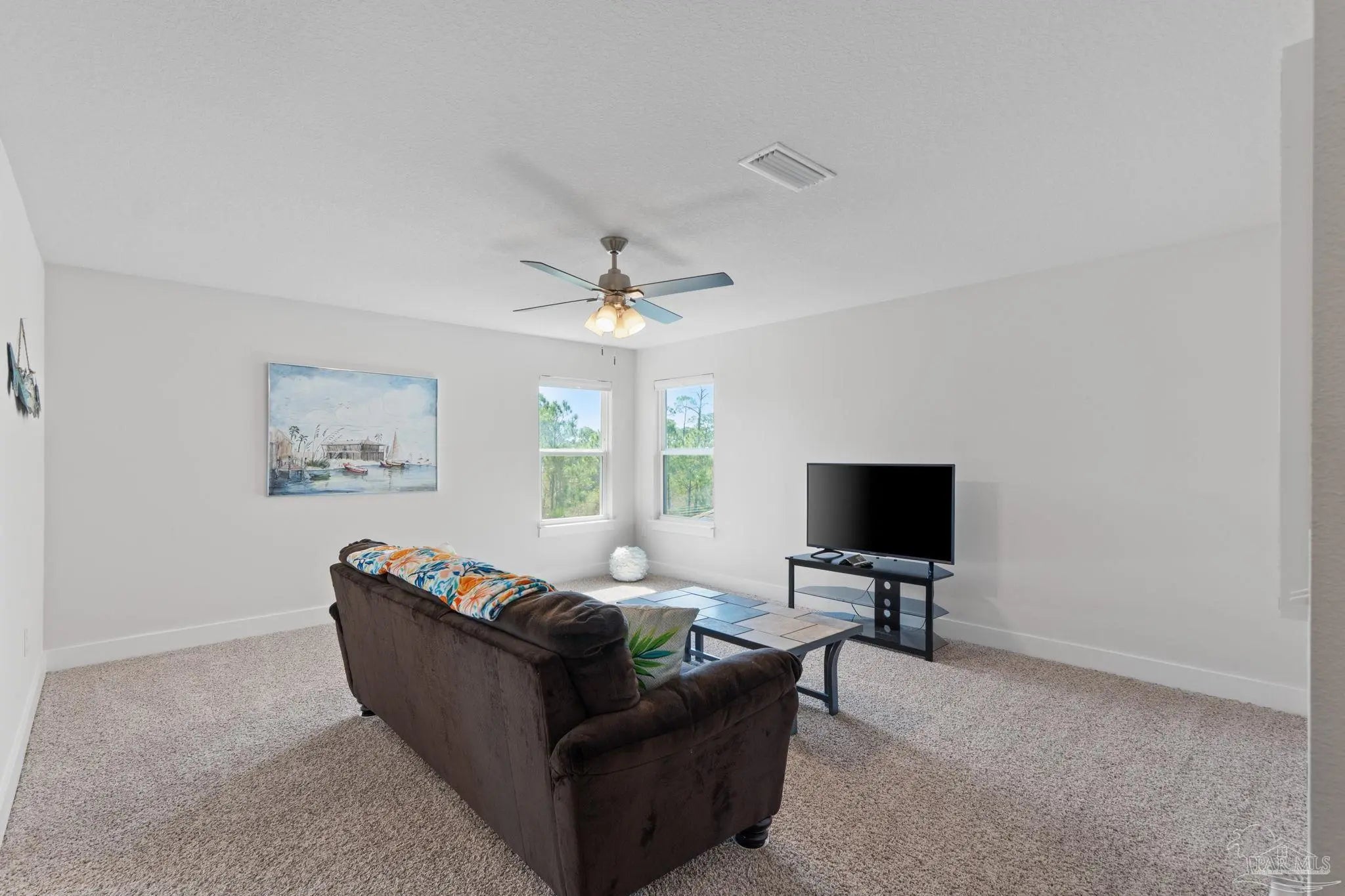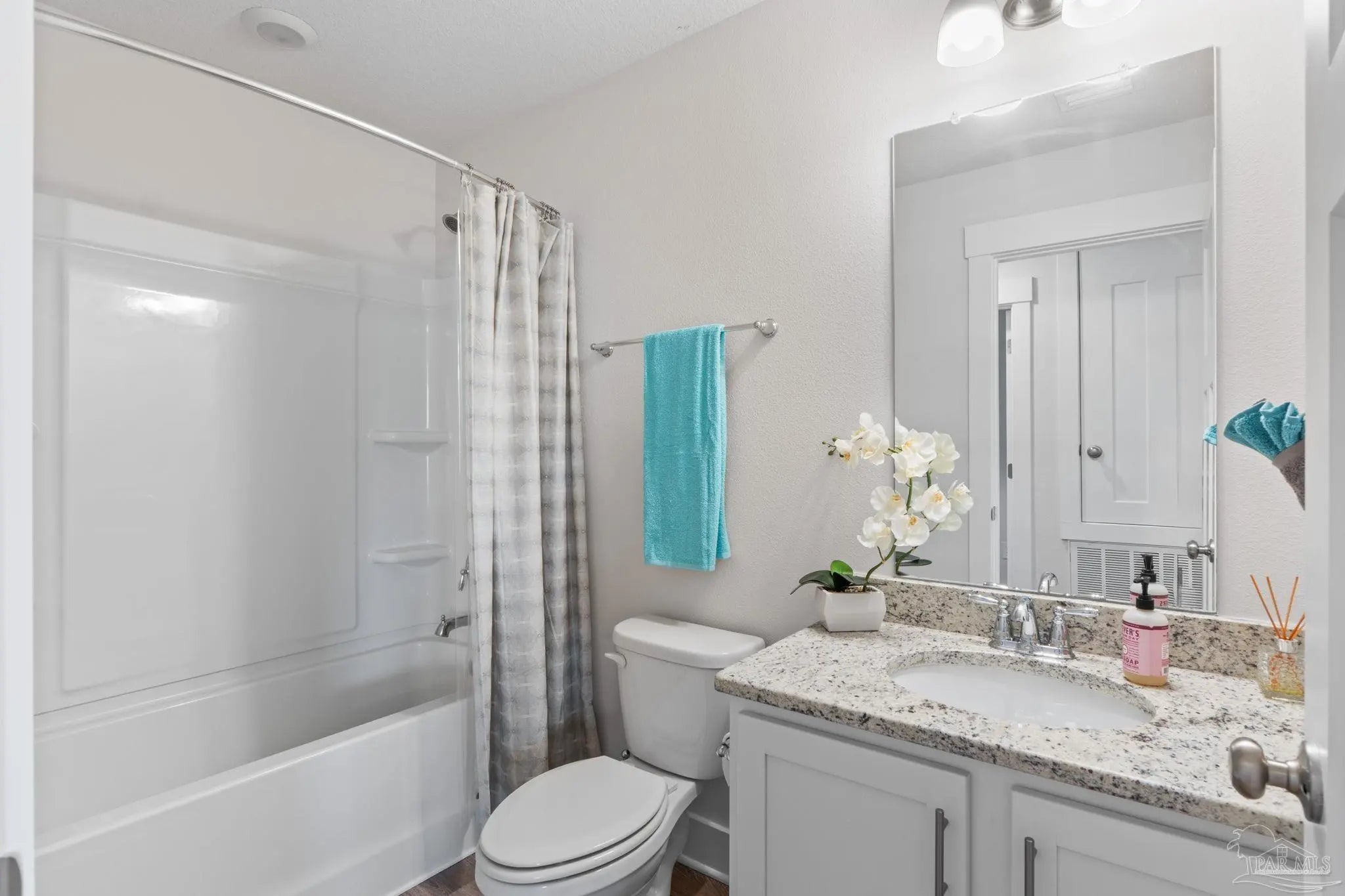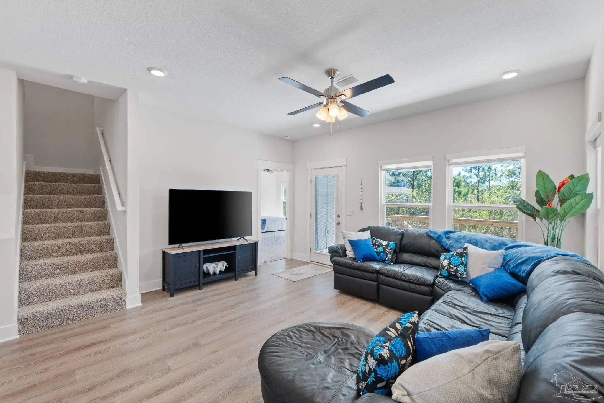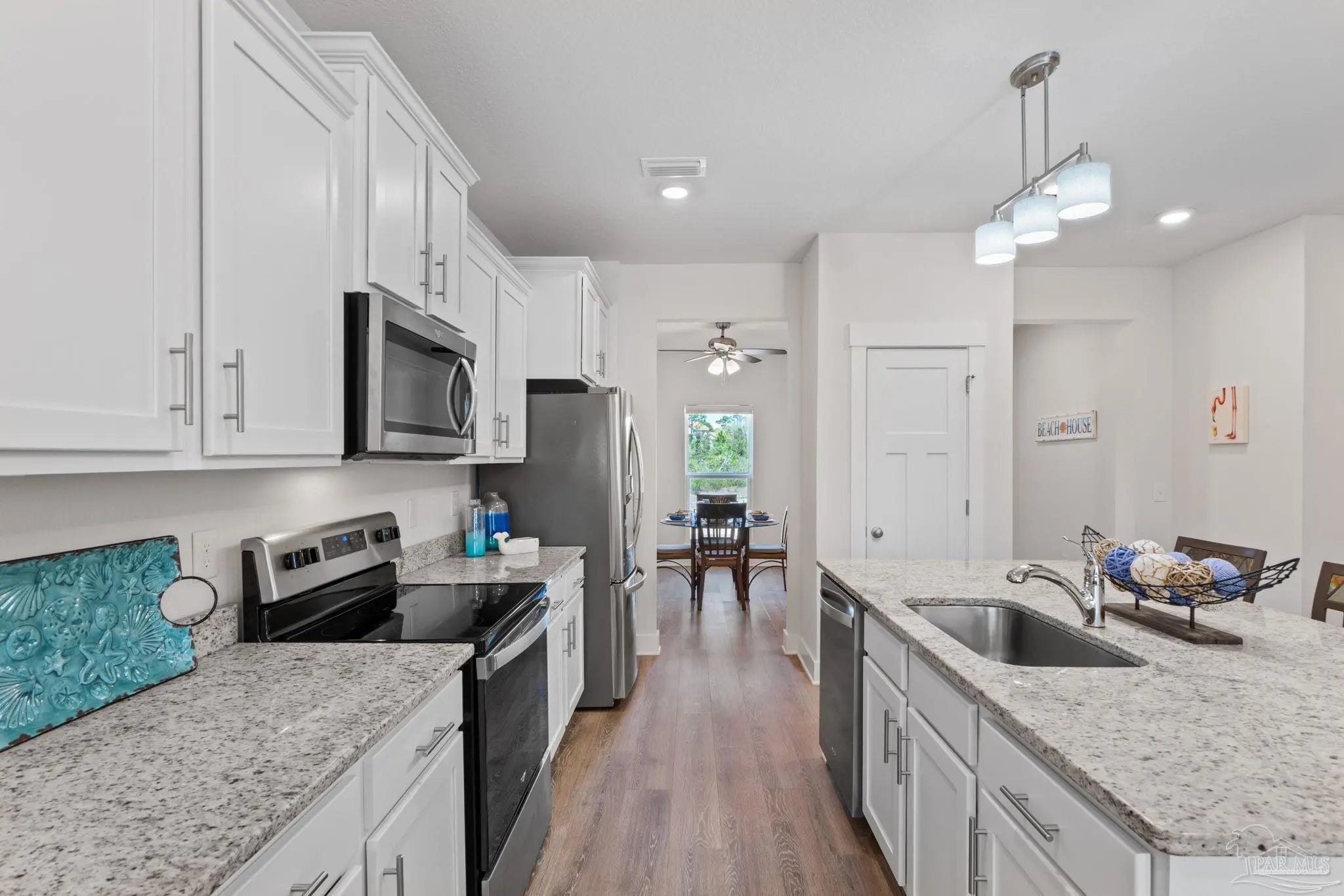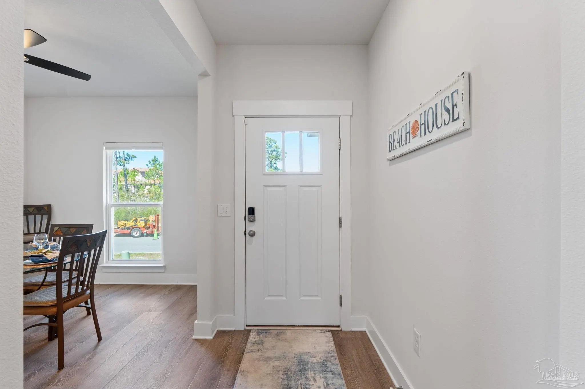 Assumable VA Loan option! No rental restrictions! Discover coastal living at its finest in this 2022-built two-story residence, where thoughtful design meets modern comfort. This is arguably the best lot in the community, as you can watch the most beautiful sunsets as you're relaxing on your back porch. The well-appointed first floor showcases a sophisticated primary bedroom suite, featuring a spa-inspired bathroom with double vanity, granite countertops, and a luxurious walk-in closet. The gourmet kitchen delights with a breakfast bar, granite surfaces, and a generous pantry, flowing seamlessly into an elegant dining room and living area. Upstairs, a dedicated family room and additional bedrooms provide the perfect retreat for relaxation or entertainment. The home's 2,260 square feet of living space is adorned with premium finishes, including luxury vinyl and plush carpet flooring throughout. Practical elegance extends to the covered porch, equipped with remote-controlled blinds for effortless outdoor enjoyment. This coastal gem offers the perfect blend of privacy and accessibility, with a serene dog park and kayak launch just steps away. Beach enthusiasts will appreciate the convenient sidewalk leading to public beach access, a mere three-quarter mile stroll. Additional features include hurricane shutters, Hardieplank siding, and a sprinkler system. The property comes partially furnished, including washer and dryer, making the transition to coastal living seamless. Short term rentals allowed in community.