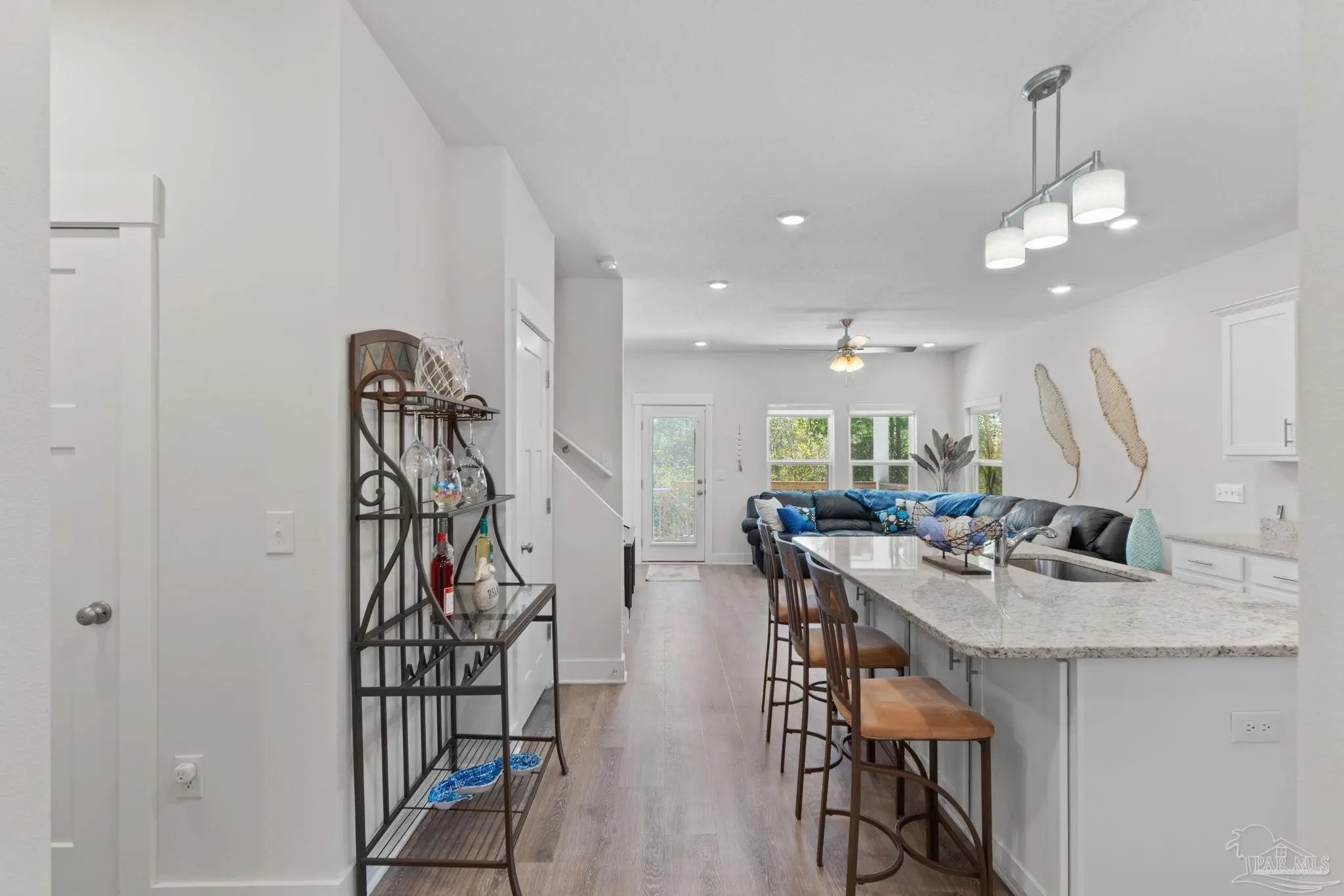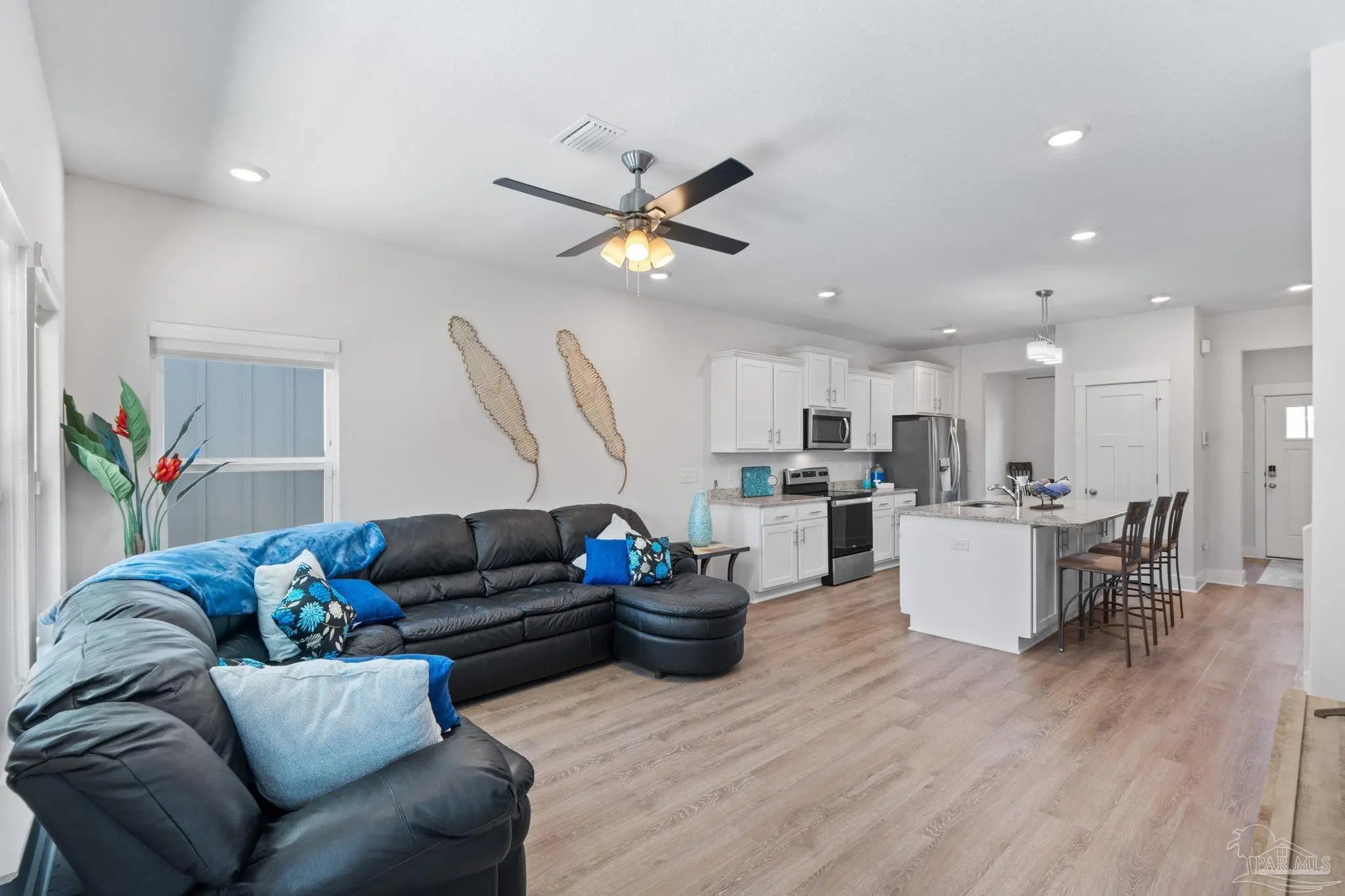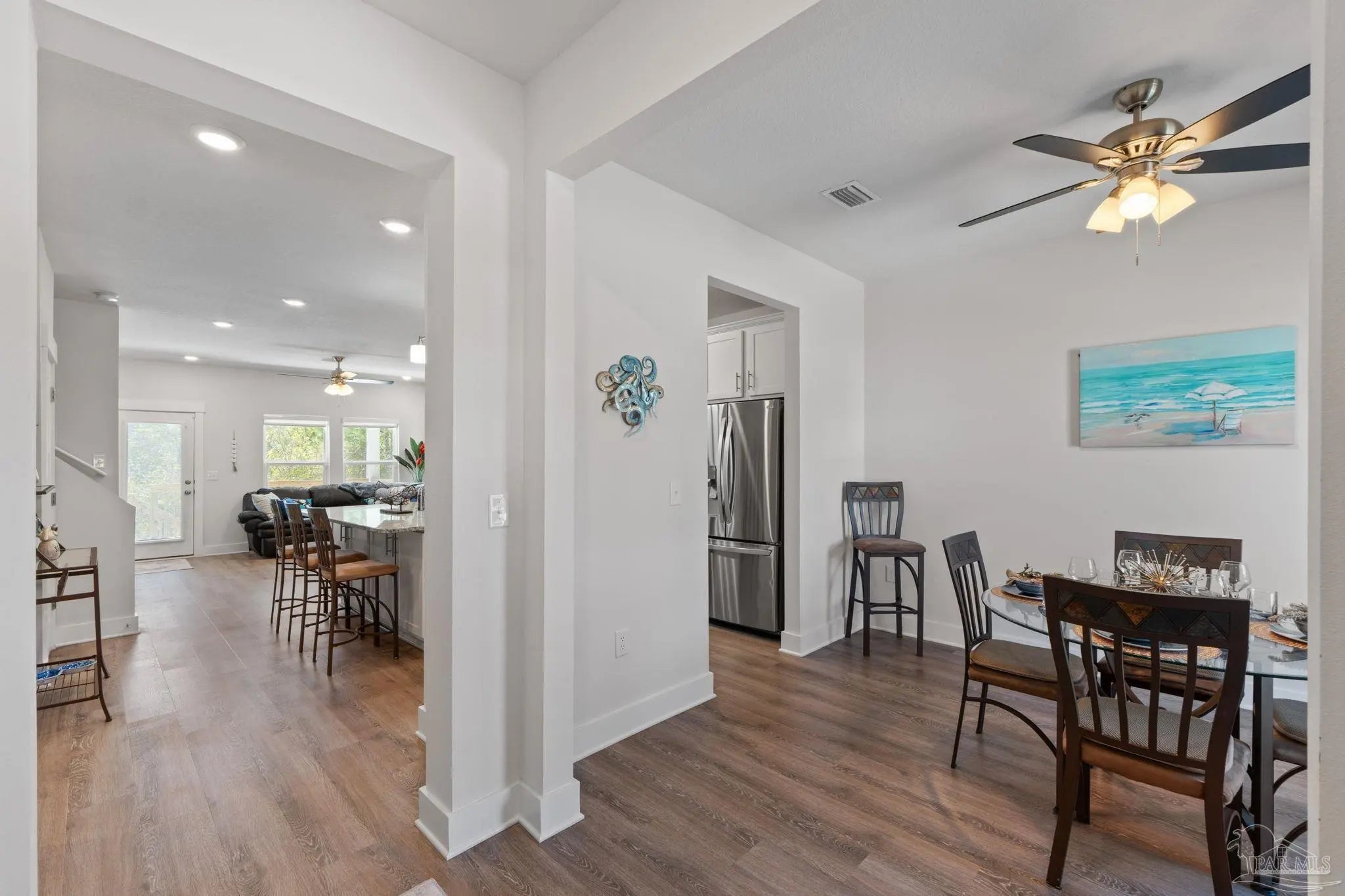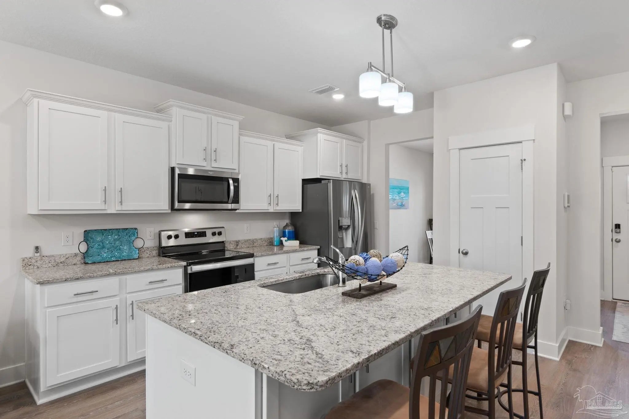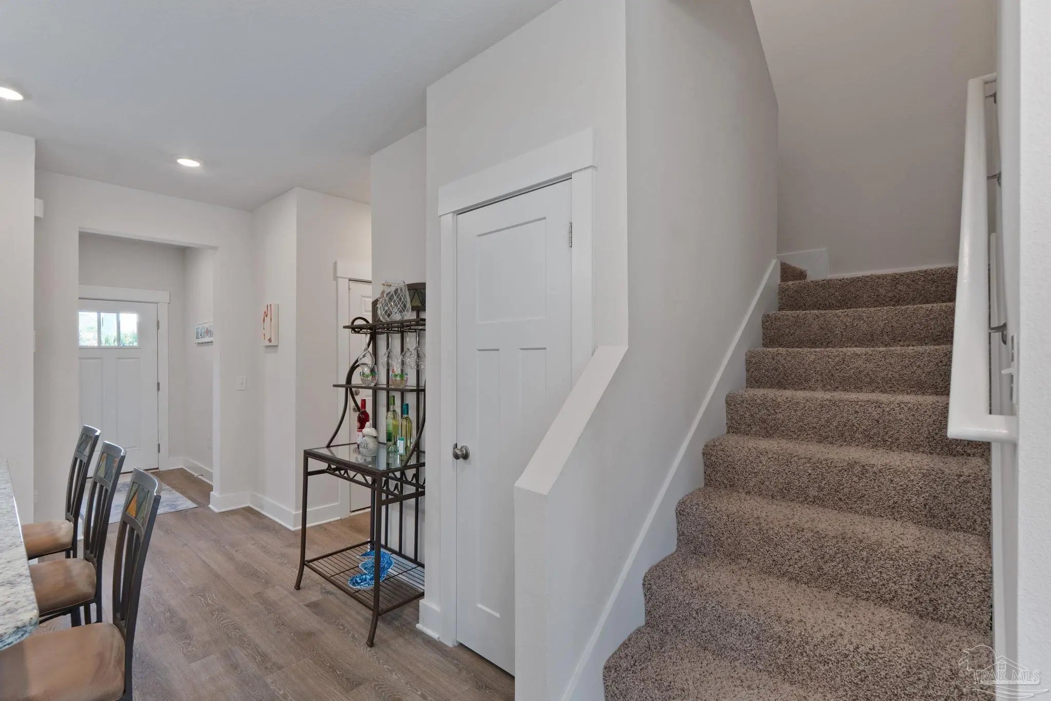 Assumable VA Loan option! No rental restrictions! Discover coastal living at its finest in this 2022-built two-story residence, where thoughtful design meets modern comfort. This is arguably the best lot in the community, as you can watch the most beautiful sunsets as you're relaxing on your back porch. The well-appointed first floor showcases a sophisticated primary bedroom suite, featuring a spa-inspired bathroom with double vanity, granite countertops, and a luxurious walk-in closet. The gourmet kitchen delights with a breakfast bar, granite surfaces, and a generous pantry, flowing seamlessly into an elegant dining room and living area. Upstairs, a dedicated family room and additional bedrooms provide the perfect retreat for relaxation or entertainment. The home's 2,260 square feet of living space is adorned with premium finishes, including luxury vinyl and plush carpet flooring throughout. Practical elegance extends to the covered porch, equipped with remote-controlled blinds for effortless outdoor enjoyment. This coastal gem offers the perfect blend of privacy and accessibility, with a serene dog park and kayak launch just steps away. Beach enthusiasts will appreciate the convenient sidewalk leading to public beach access, a mere three-quarter mile stroll. Additional features include hurricane shutters, Hardieplank siding, and a sprinkler system. The property comes partially furnished, including washer and dryer, making the transition to coastal living seamless. Short term rentals allowed in community.
