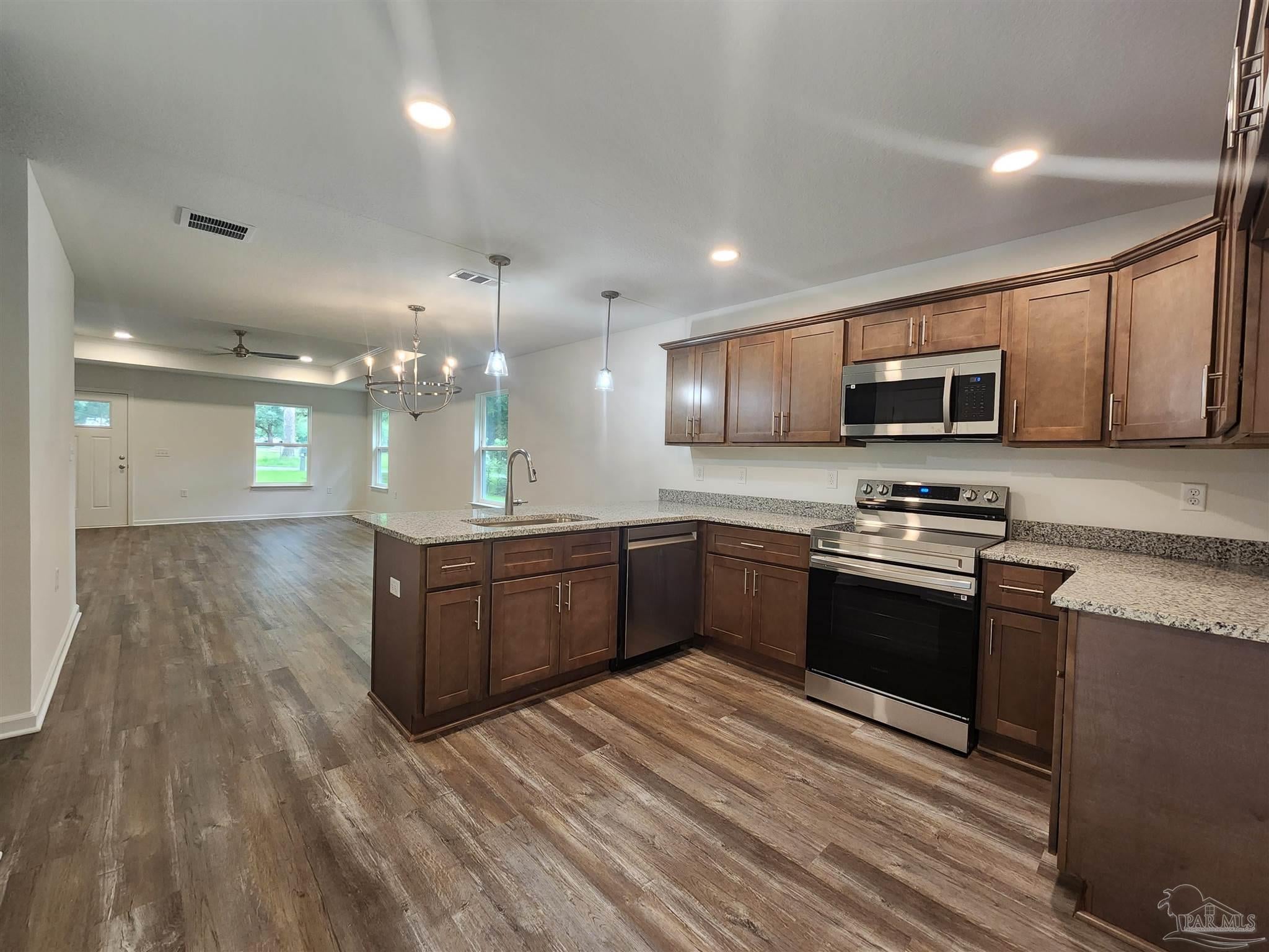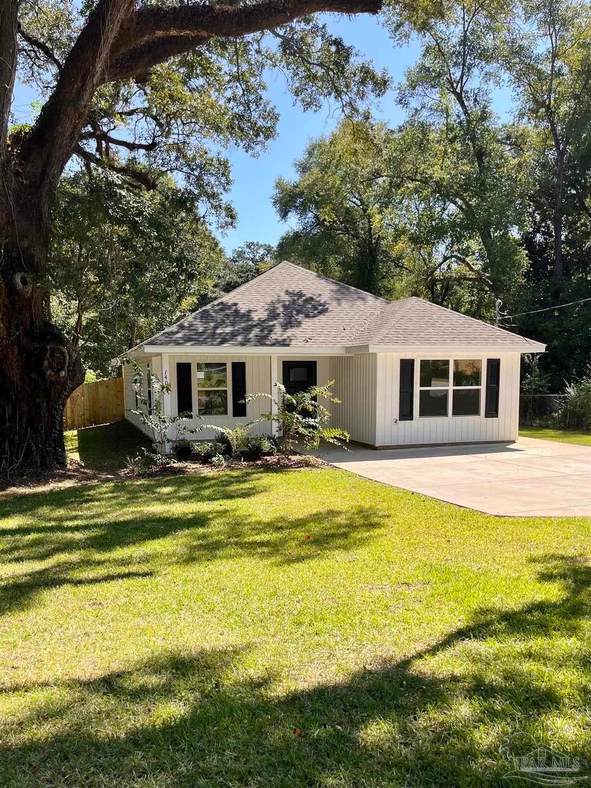 Back on the market! Builder is offering seller concessions with an acceptable offer! Brand new home ready for its new owner. Centrally located close to NAS, Corry Field, Saufley Field, shopping, restaurants, and a public golf course, this three bedroom, two bath adorable cottage has a large family room with boxed ceiling and fan, nice sized beautiful kitchen with granite countertops, breakfast bar for at least four barstools, pantry, and is equipped with Samsung SS appliances. The owner’s bedroom is in the rear of the home overlooking the backyard and is separate from the other bedrooms for privacy. It features a walk-in closet, ceiling fan, boxed ceiling, and private bath. Other great features include: large dining room, inside laundry room, upgraded and recessed lighting, upgraded LVP throughout the home so NO CARPET, all electric, double pane windows, tons of natural light, hurricane fabric shield, low maintenance exterior, new 6' privacy fence, new survey and sits among majestic oaks with a fully sodded lawn. Make this home yours today!