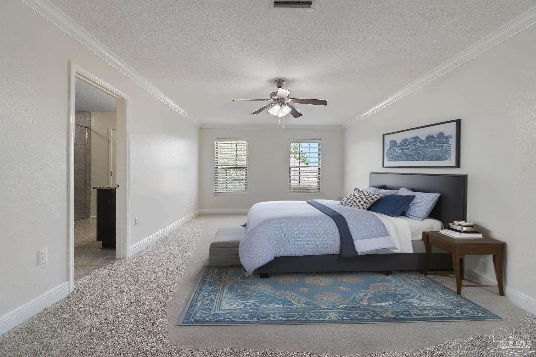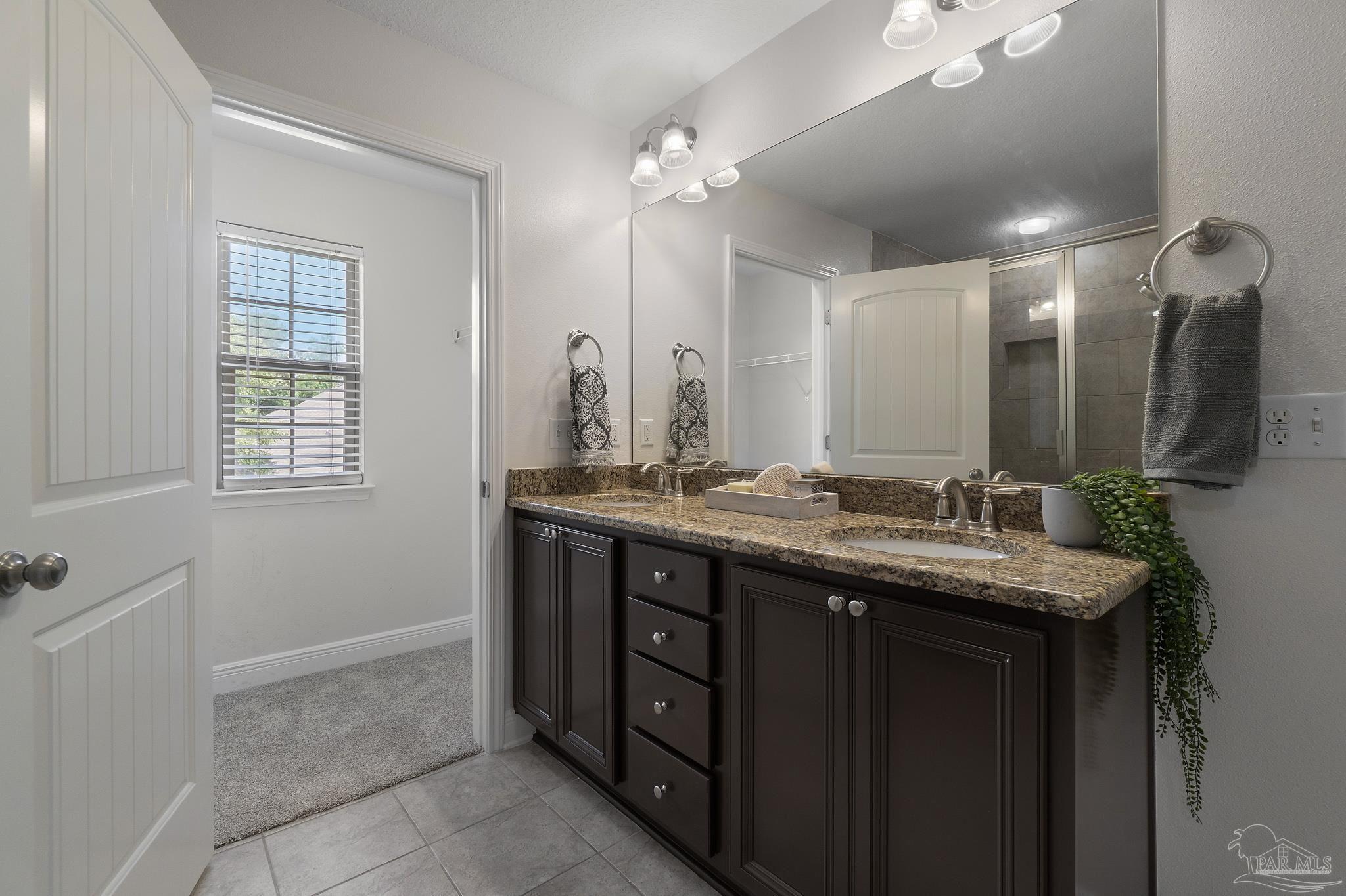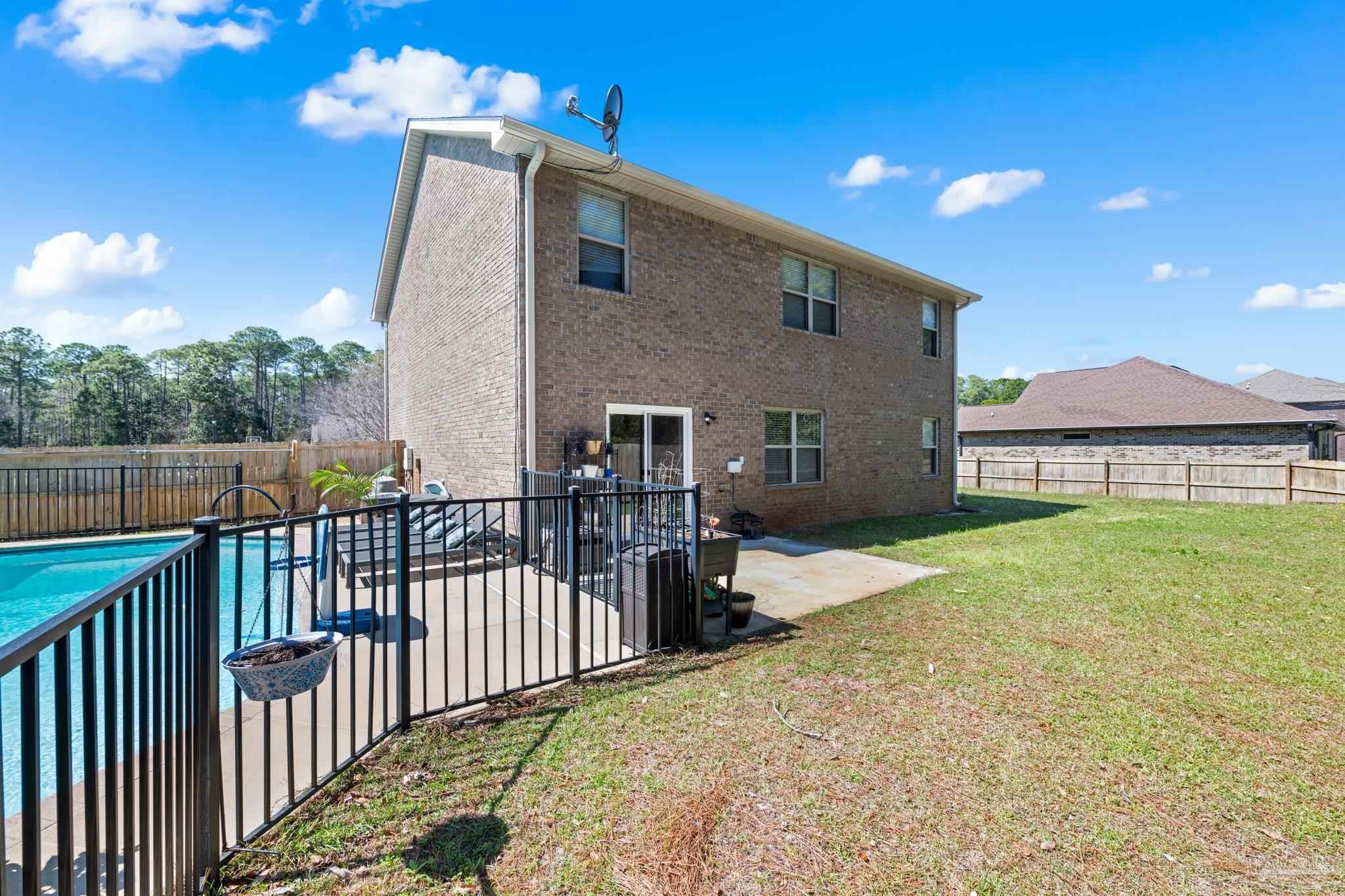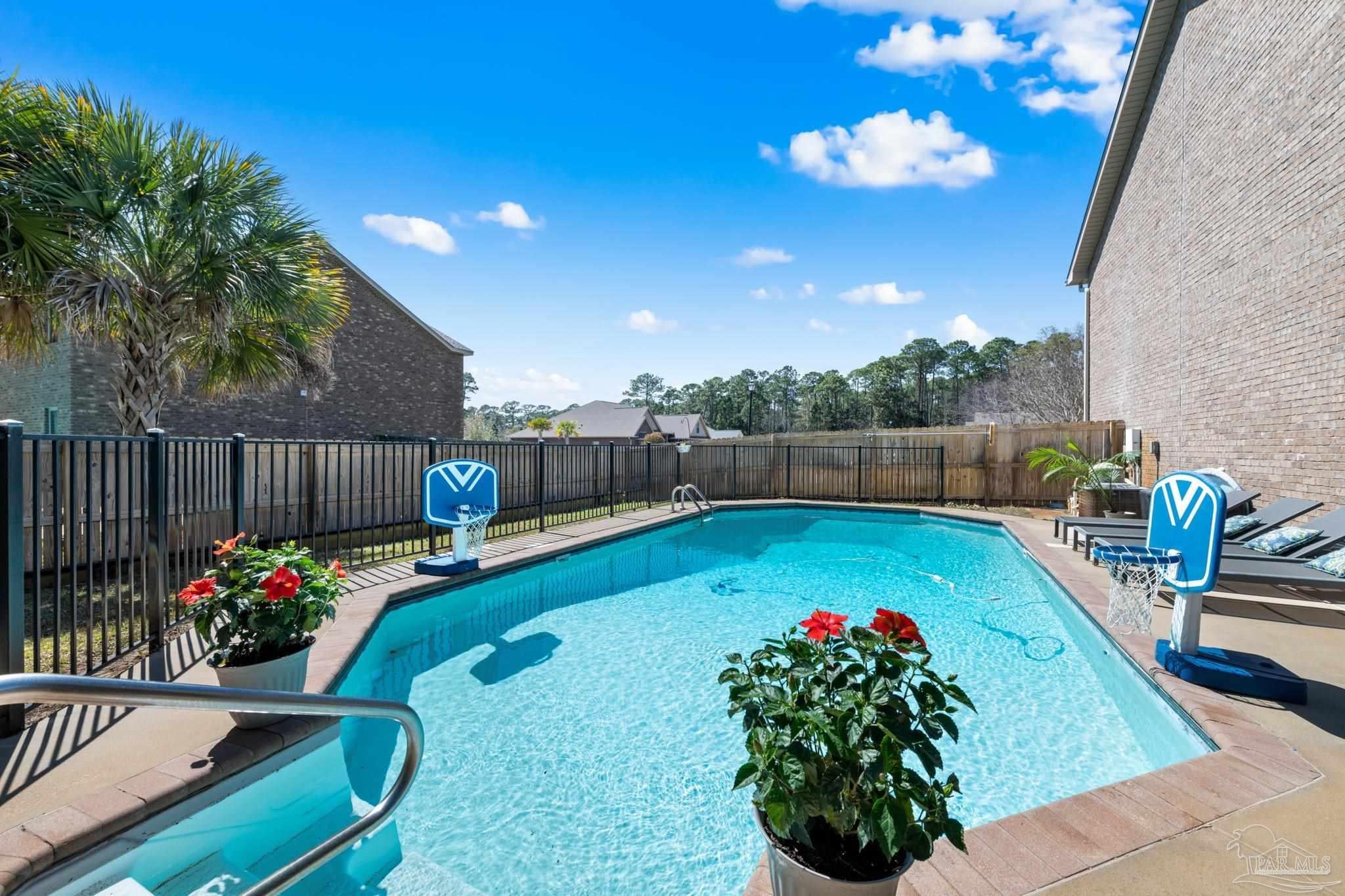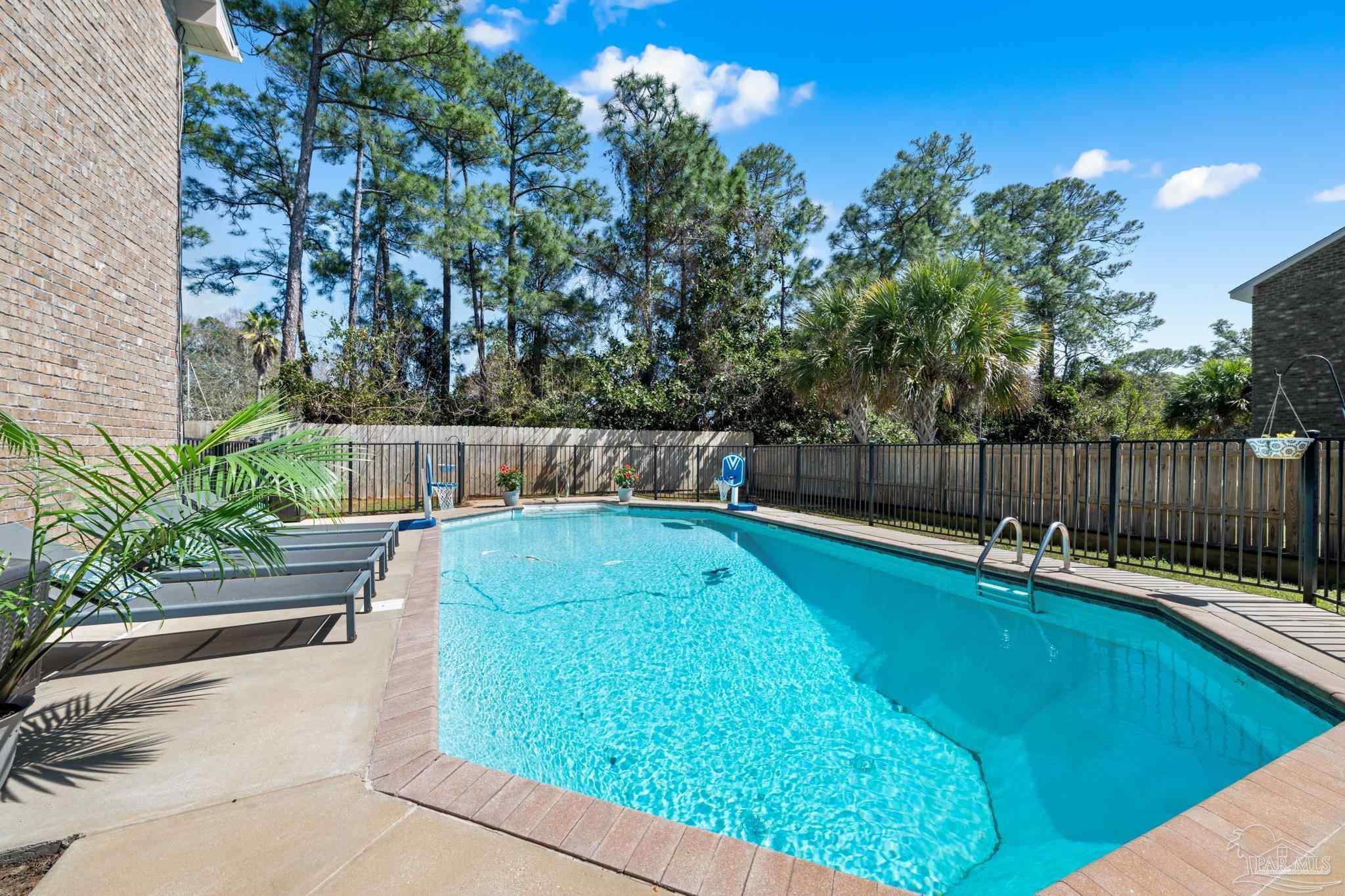 Discover your next home in the tranquil Gulf Breeze community of The Forest at Oriole Beach with new carpeting, fresh paint - and a new pool liner! This spacious five-bedroom, three-bathroom home offers a separate office and two living areas, providing ample space for all your needs. The open concept living room, kitchen, and dining area create a welcoming central area of the home. The kitchen features granite countertops, coordinating backsplash, stainless steel appliances, stove, dishwasher, and built-in microwave. While also providing abundant cabinetry, a walk-in pantry, a large breakfast/brunch bar which seamlessly flows into the bright great room - this space is both functional and inviting. The adjacent dining area opens to the kitchen and living room and then leads you outside to the 16x32x8 deep swimming pool - a true backyard oasis for your own personal relaxation or entertaining all your friends and family. On the main floor, a private 5th guest bedroom sits conveniently next to the full bathroom. Upstairs, the primary suite and three additional bedrooms are thoughtfully positioned in separate corners for privacy. The large primary suite features its own en-suite with privacy-door, double vanities, tiled shower and a generous walk-in closet. Matching granite accents elevate all three bathrooms and ties together the home’s decorative style. The second floor bonus living area - as a game room, play space, or extra study - adds flexibility and is conveniently located next to the laundry room. Outside, enjoy the large .25-acre fenced backyard and pool creating that peaceful retreat you need to unwind. The two-car garage offers an additional convenient entry/exit to the back yard and wired for a generator. Welcome to your forever home - where comfort, style, and tranquility await!