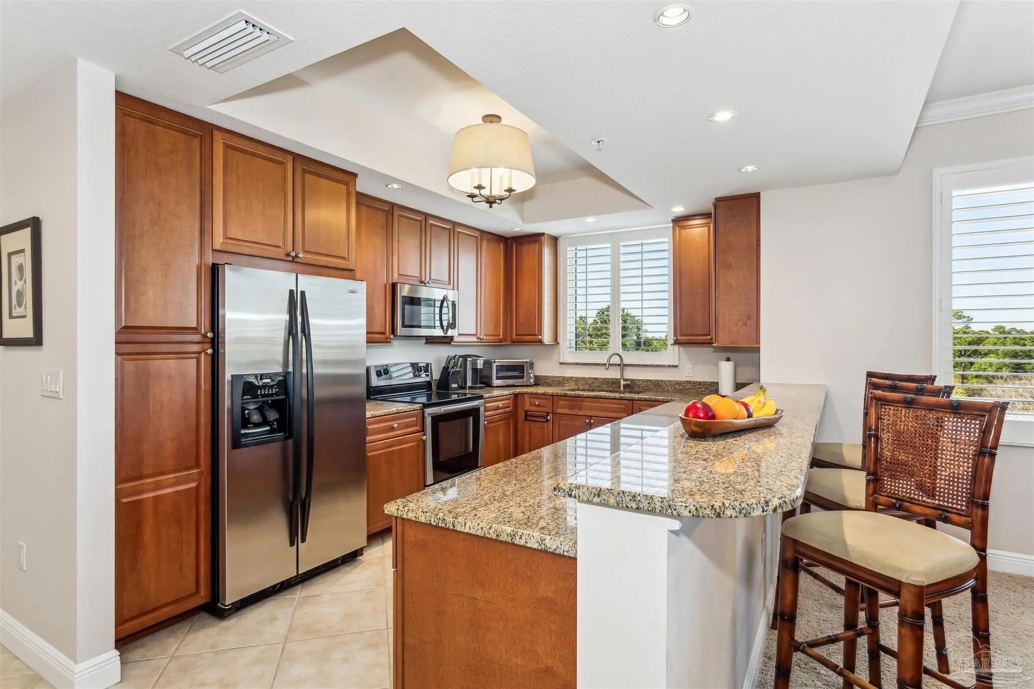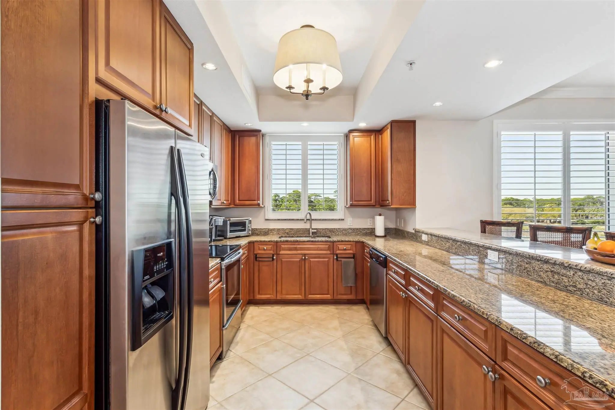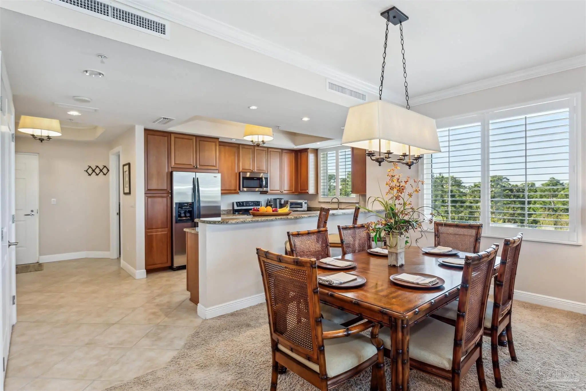 This highly sought after END unit in San Anton condominium, nestled between the 17th and 18th fairways, includes a COVERED PARKING SPACE, a climate-controlled storage space and is fully furnished. This spacious 1572 square foot open floor plan features 3 bedrooms, 2 baths, a welcoming foyer that flows into the living area and brings you to the large sliding glass doors to the enclosed screened patio. Adding to the open feel and views are additional windows in the kitchen and dining area that overlooks the pool and spa to the south. The kitchen includes more than ample storage, stainless steel appliances and large granite countertop for casual dining. Sitting in the living room you can enjoy comfortable relaxation, beautiful views and cool breezes from the screened patio. The primary bedroom suite includes large walk-in closet, dual vanities, garden tub, separate shower and water closet. The beautiful view is also available in the primary bedroom by opening the plantation shutters and/or the glass sliding doors to the patio. The Lost Key Golf & Beach Club offers the 18 Hole Arnold Palmer Championship golf course and clubhouse just steps away, 3 pools (one is private for San Anton and is ideal for resort style living and entertaining). In addition, the Lost Key Golf & Beach Club allows direct access to the private Beach Club with complete bar, restaurant, pool and the white sand beaches of the Gulf of America. Don’t miss this opportunity to upgrade your life style!