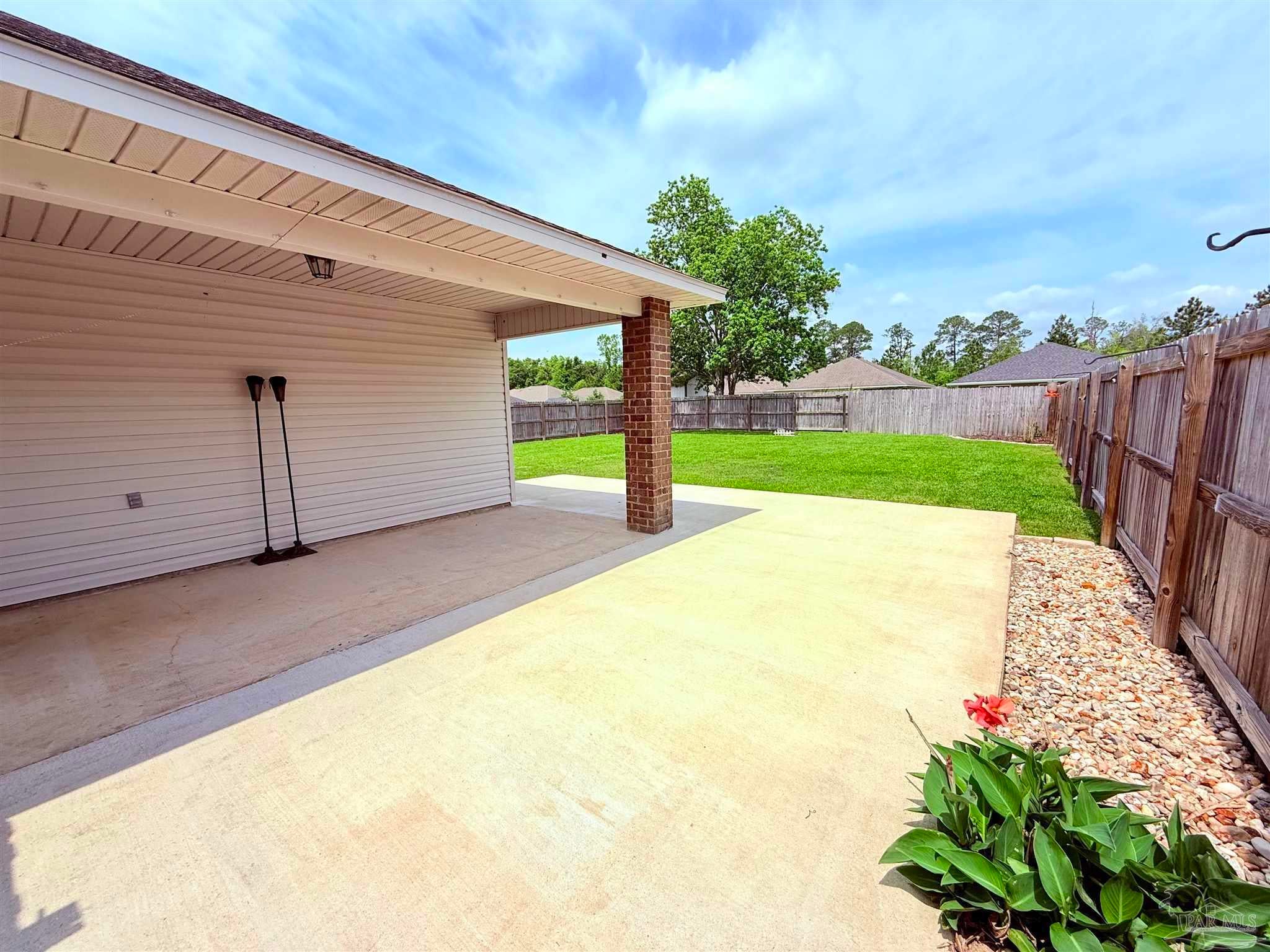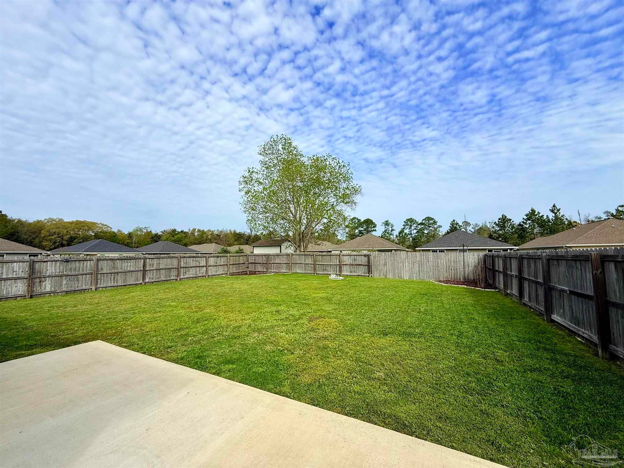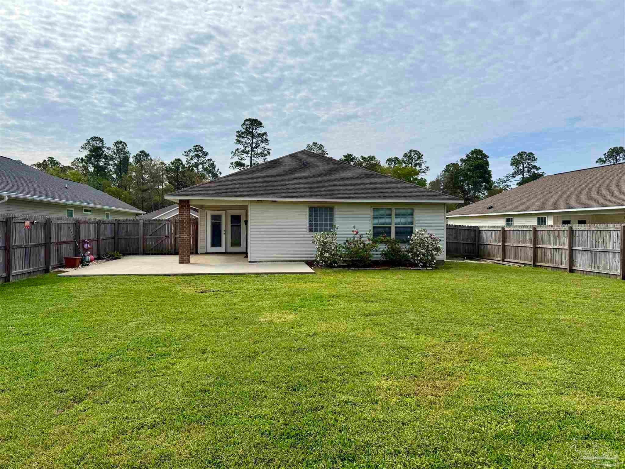 Limited-time opportunity! Seller is offering exclusive concessions with a full price offer. Don't miss this exceptional opportunity to own a stunning 2016-built cottage-style home at an unbeatable price point! This immaculate 3-bedroom, 2-bathroom retreat features soaring high ceilings with elegant tray details that immediately create a sense of luxury and space. The gourmet kitchen showcases rich dark cabinetry, gleaming granite countertops, premium stainless steel appliances, and a convenient center island - all complemented by durable tile flooring. Natural light streams abundantly through the home's many windows, creating a bright, welcoming atmosphere throughout. Retreat to the private primary suite offering a sophisticated tray ceiling, spa-inspired en-suite bathroom with separate shower, private water closet, luxurious granite countertops, and a generous walk-in closet. Outdoor living is truly exceptional with an oversized patio - perfectly designed with half covered for shade and half open for sunshine - all enclosed by a privacy fence for your personal oasis. This energy-efficient home includes double-pane windows, superior insulation, ridge vent system, copper wiring, circuit breakers, and public water/sewer connections. Ideally situated near Avalon and Pace, Florida, enjoy the perfect balance of peaceful residential living with easy access to everyday conveniences.