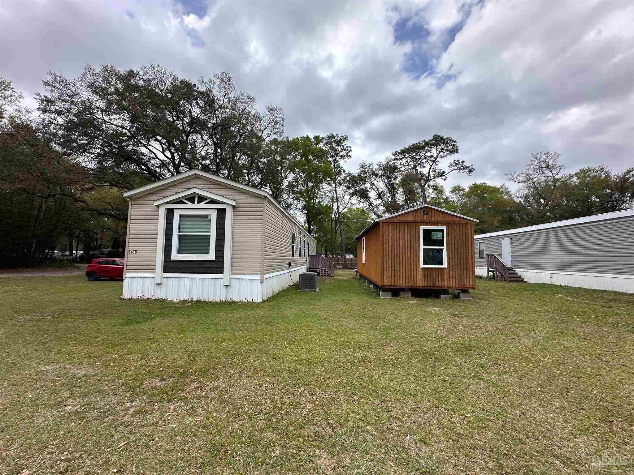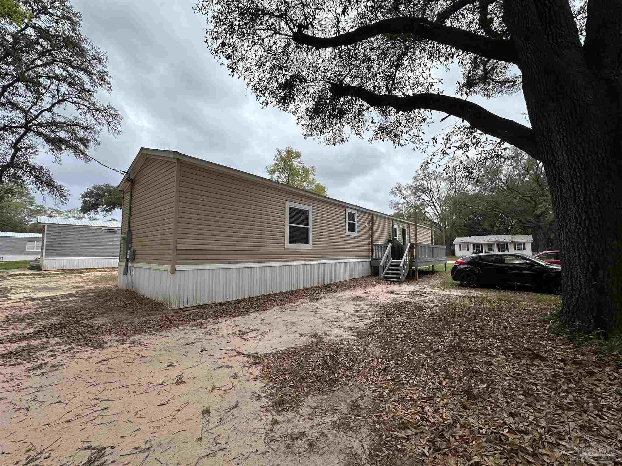 Charming & Contemporary 3-Bedroom Home on a Spacious Corner Lot Discover the perfect blend of style and functionality in this beautifully updated 3-bedroom, 2-bath mobile home near Whiting Field. The open-concept design, accentuated by warm wood-look flooring, creates an inviting ambiance, while the bright and airy kitchen offers ample white cabinetry for all your storage needs. The spacious owner’s suite is a true retreat, featuring a walk-in closet, a relaxing garden tub, and a separate shower. Step outside to enjoy peaceful mornings and breezy afternoons on the charming wooden front porch. Situated on a generous corner lot with abundant parking, this property also includes a versatile bonus building in the backyard—ideal as a storage shed, playhouse, art studio, craft room, or even an office. Don't miss this unique opportunity to own a stylish and functional home in a desirable location!