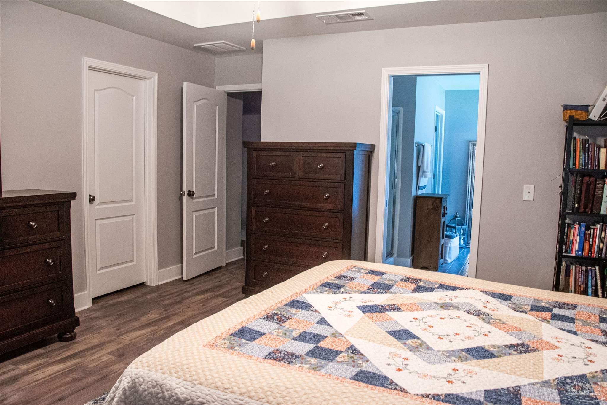 Back on the market through no fault of the seller, this lovely custom built 3 bedroom, 2 bath home in the cul-de-sac in a gated community. Tile floors throughout common and wet areas with LVP in halls and bedrooms. 9' ceilings throughout except in living room where there is a cathedral ceiling. 42"granite counter tops in kitchen and bathrooms with elevated toilets in both bathrooms. West facing front porch large enough to put your rockers on to enjoy the afternoon breeze, with an inviting entry way that brings you into this cozy home. Kitchen opens into the living room, which is in the rear of the home. Kitchen also has a large walk in pantry to accommodate all your groceries and larger appliances. Large kitchen island that provides seating in the kitchen as well. Brick archway between the kitchen and the living room adds just a touch of charm. Living room has French doors that open onto the screened porch on the back of the home looking out into the fenced in backyard. Sprinkler system in front and back yard. Primary bedroom is on the back of the home as well creating quite a quiet room to rest. Large primary bath with double sinks, separate shower and large soaker tub. Large indoor storage room with shelving all the way around this room. This home has much to offer with all bedrooms set apart from each other to insure privacy. Large shed in backyard for all of your extra "stuff"! Home is all electric, but gas is available in this community. Must see to believe!! Call today for your private showing!