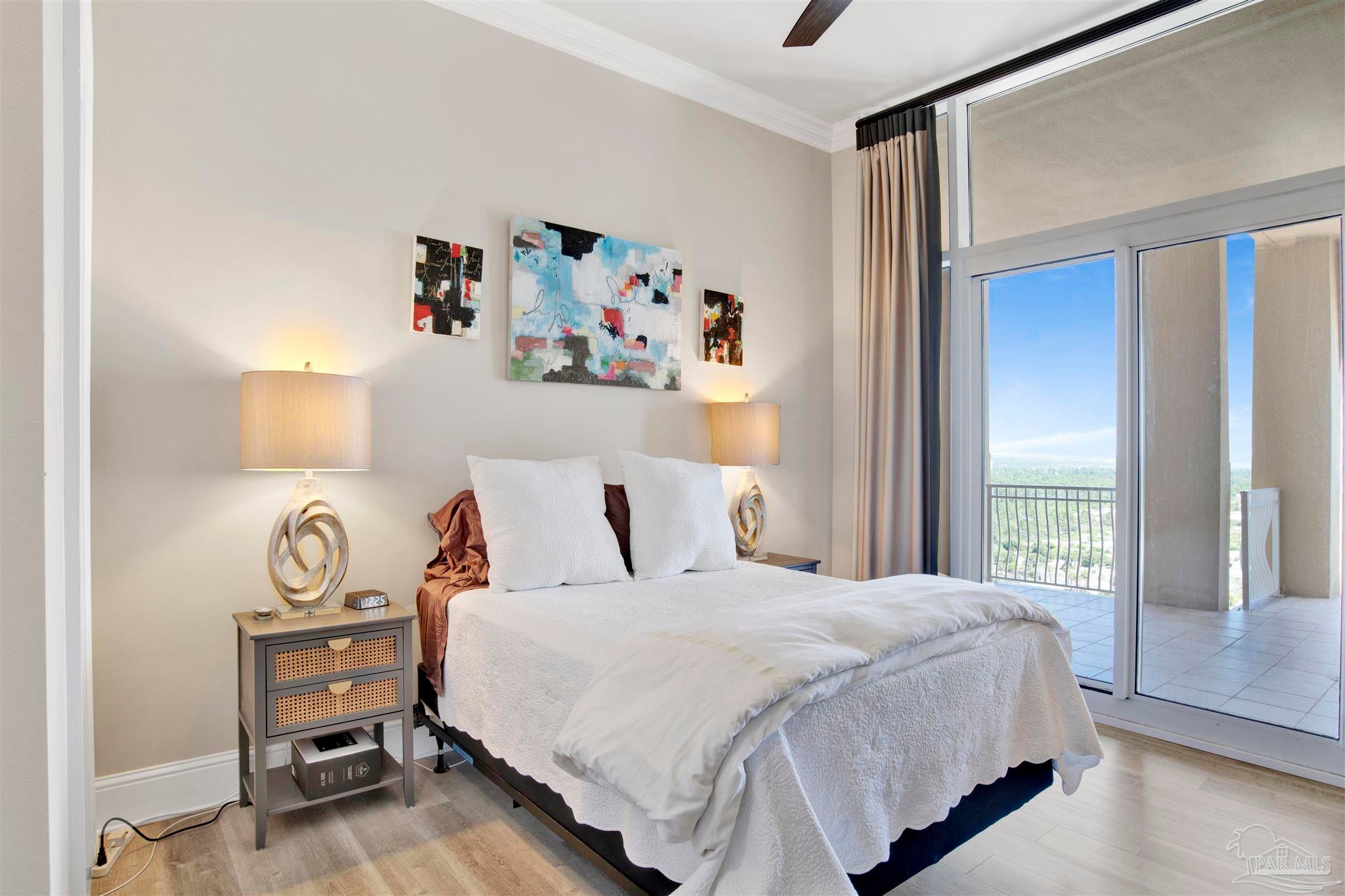 EXPERIENCE THE PINNACLE OF LUXURY IN THIS STUNNING PENTHOUSE OCCUPYING THE ENTIRE 14TH FLOOR OF LA RIVA EAST. BOASTING 4,868 SQ FT OF EXQUISITE LIVING SPACE AND AN EXPANSIVE 2,982 SQ FT BALCONY, THIS RESIDENCE OFFERS BREATHTAKING PANORAMIC VIEWS OF THE GULF AND PERDIDO KEY. This exceptional home features 5 spacious bedrooms, including both Primary and Secondary Gulf-front suites, situated at opposite ends of the residence to ensure ultimate privacy. Enjoy the convenience of a private elevator lobby, abundant storage space, and PREMIUM DEEDED GARAGE PARKING DIRECTLY IN FRONT OF THE BUILDING AND UNDER THE PORTICO. A double garage with storage is also available for purchase across the street (ask for details). Inside, discover a gourmet chef's kitchen with island and large breakfast bar, a fabulous separate wet bar, a large utility room, and spacious living and dining areas with floor-to-ceiling glass with motorized window coverings. Retreat to the Primary Bedroom Suite with its stunning sunrise views, dual walk-in closets, and a spa-like bathroom featuring a luxurious jetted tub and separate tiled shower. All three additional guest bedrooms are spacious with two enjoying lovely panoramic island views, one with private balcony, and the third with two sets of custom bunk beds. La Riva owners enjoy privacy & uncrowded beaches with only 66 rent-restricted units (1-year minimum lease) and 520' of sugar white sands. La Riva EAST is the only La Riva building with a theater room! La Riva owners and guests enjoy the best of amenities including a gulf-front heated indoor pool, outdoor pool and hot tub, and well-equipped fitness center with steam and sauna overlooking the beach. THE VIEWS FROM THIS PENTHOUSE RESIDENCE ARE TRULY A MUST SEE!