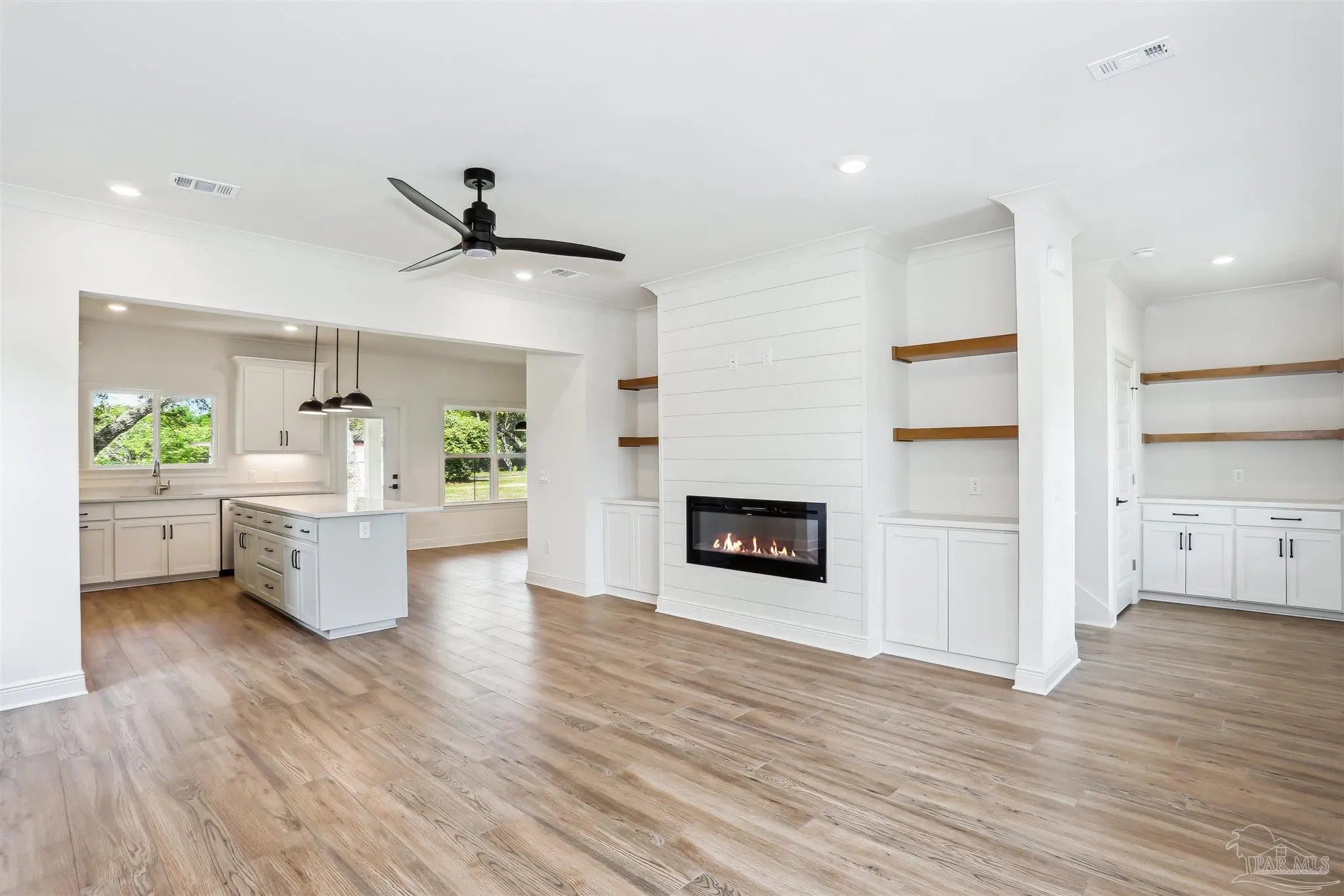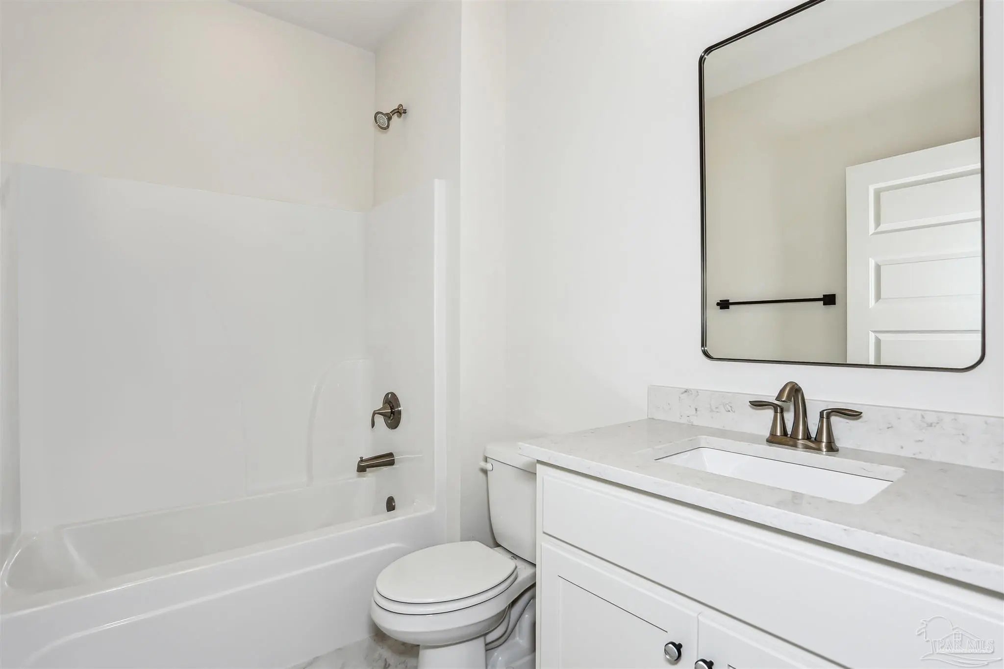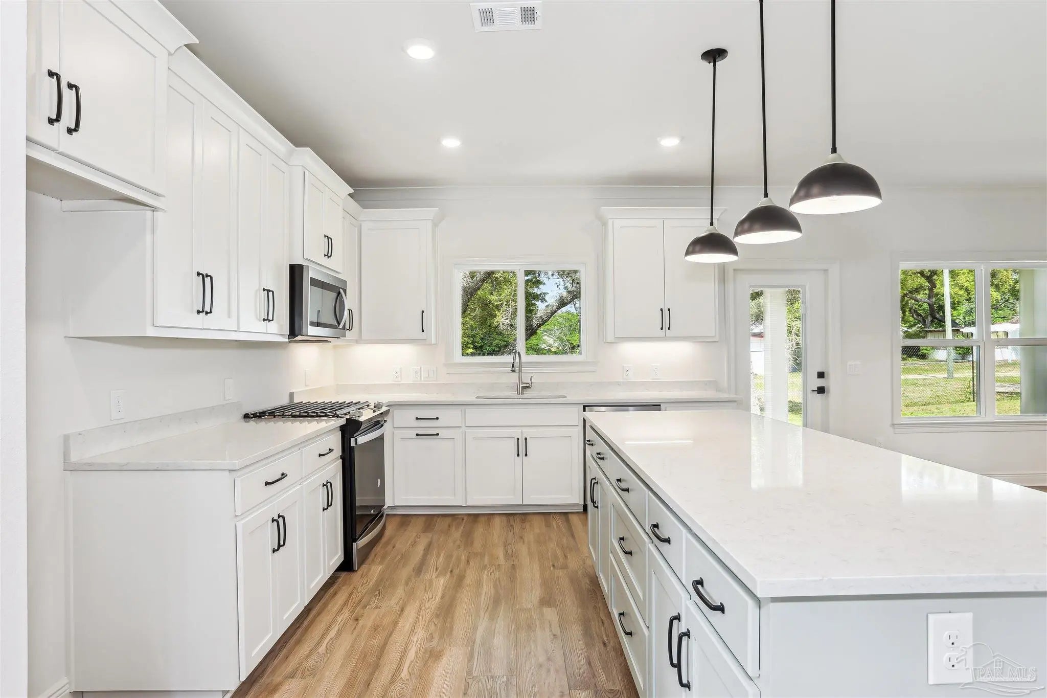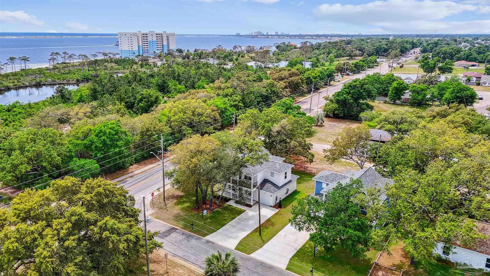 Seller Concession Available! New Construction near Perdido Key off Gulf Beach Highway! This 2- story home features 2009 square feet, 3 bedrooms, 3 baths, a single car garage and a balcony with Intracoastal Waterway Views! The home starts with a true "stem-wall" foundation, exterior has brick and hardy plank siding, architectural shingles on a hip roof, front & rear porches, sodded yard, lawn sprinklers front landscaping, and tankless gas water heater. All windows are vinyl, low-e windows with fabric shield. Upon entering, you’ll find luxury vinyl plank floors in the living areas and carpet in the bedrooms with crown molding in all the common areas. The kitchen contains a large island, overlooks the family room, and is equipped with custom cabinets, pantry, stainless steel appliances, gas cooktop, and quartz countertops. The main family area showcases floating shelves, and a gas fireplace. The Primary suite is on the 2nd floor, and has crown molding, recessed lighting, and leads to the primary bath that has dual vanities, quartz counters, walk in closet, tiled floors, and a large walk in tiled shower, and separate water closet. The primary suite offers access to your own 2nd story balcony that provides water views of the Intracoastal Waterway. Bedroom 3 in is on the second floor, with a 3rd bedroom on the first floor. This home is close to the back gate of NAS, and is minutes from grocery stores, Wal-Mart, Target, Starbucks, CVS, churches, State Parks, and Johnson's Beach. The location provides ample opportunities for boat storage and launches, and this home sits across from the Intracoastal Waterway. No HOA, No rent restriction. Come own your piece of paradise in Perdido Key!
