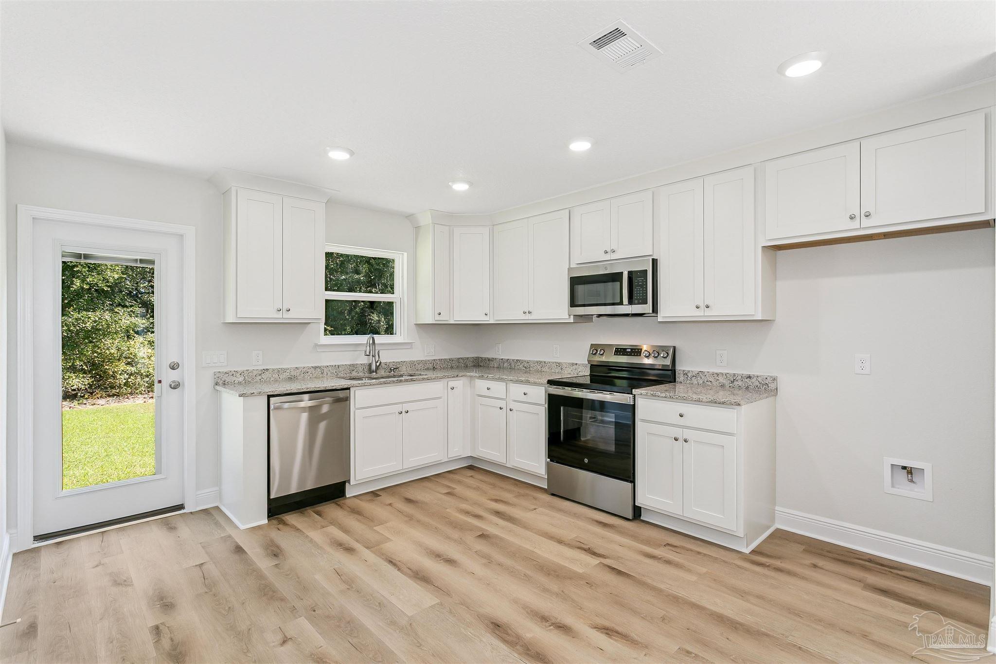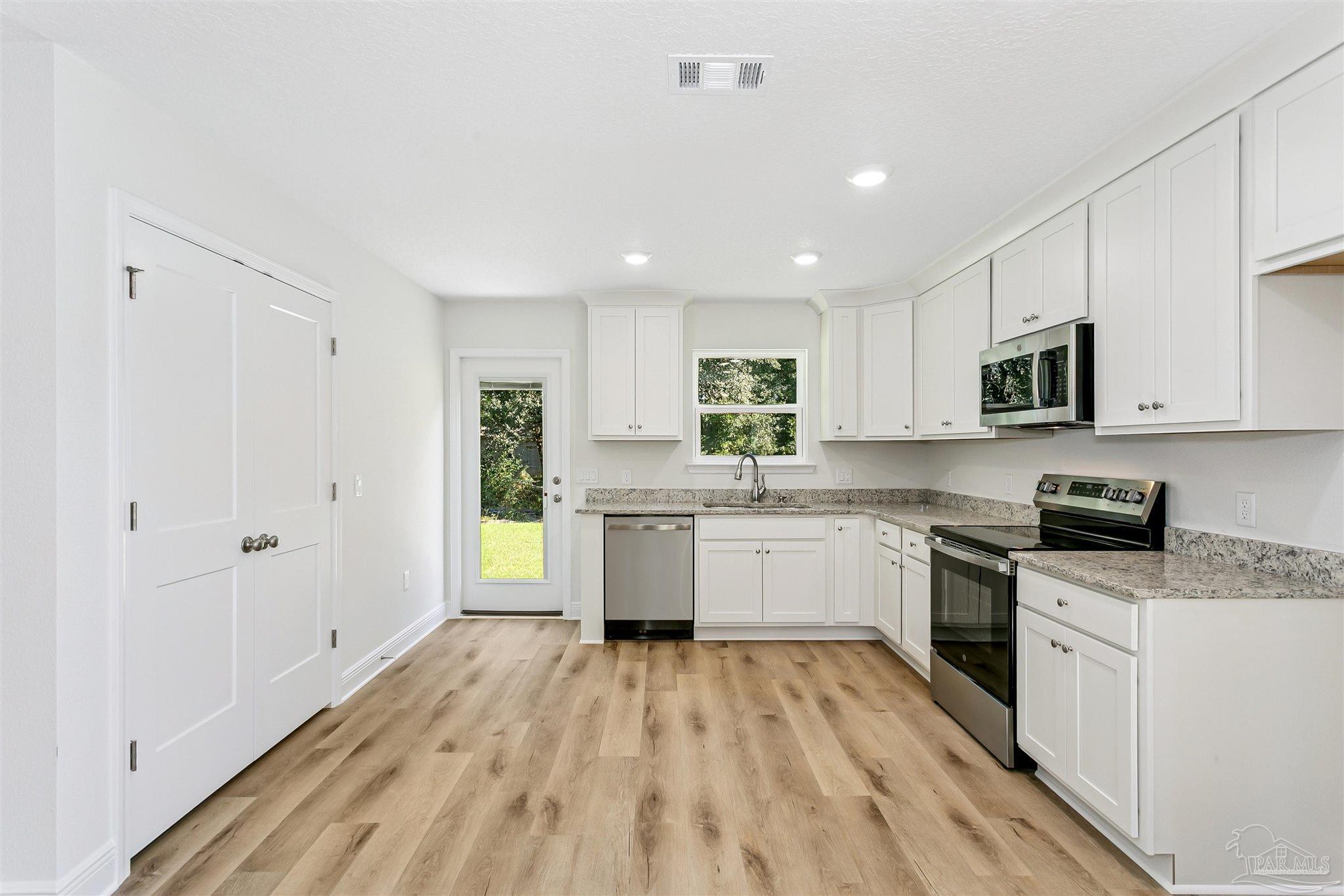 Near completion!! - The Amelia Floor Plan features an open living/kitchen/dining area. In the kitchen you will find granite counter tops, shaker style cabinet doors, walk in pantry, appliance package featuring stainless steel range, dishwasher and microwave. The master suite features a large walk-in closet and master bath includes fiberglass tub & shower, double vanity with granite countertops. The additional bath includes granite counter tops and tub/shower combo.