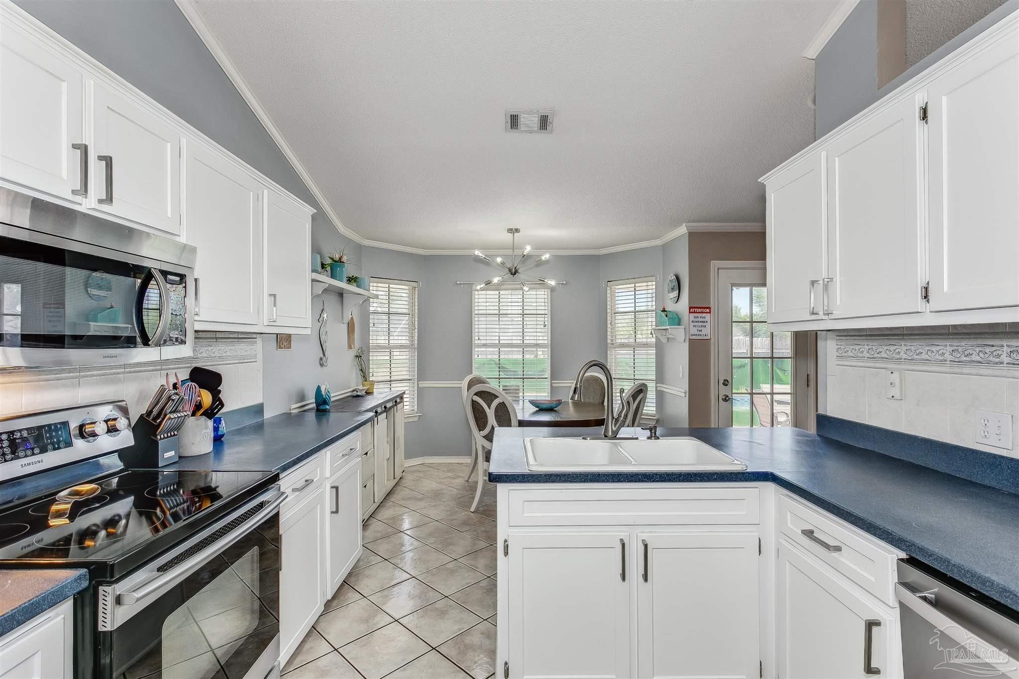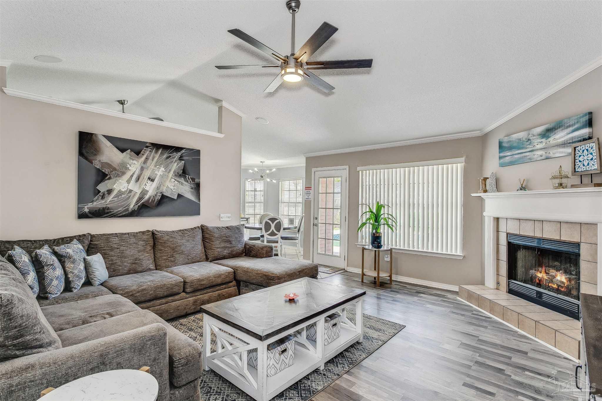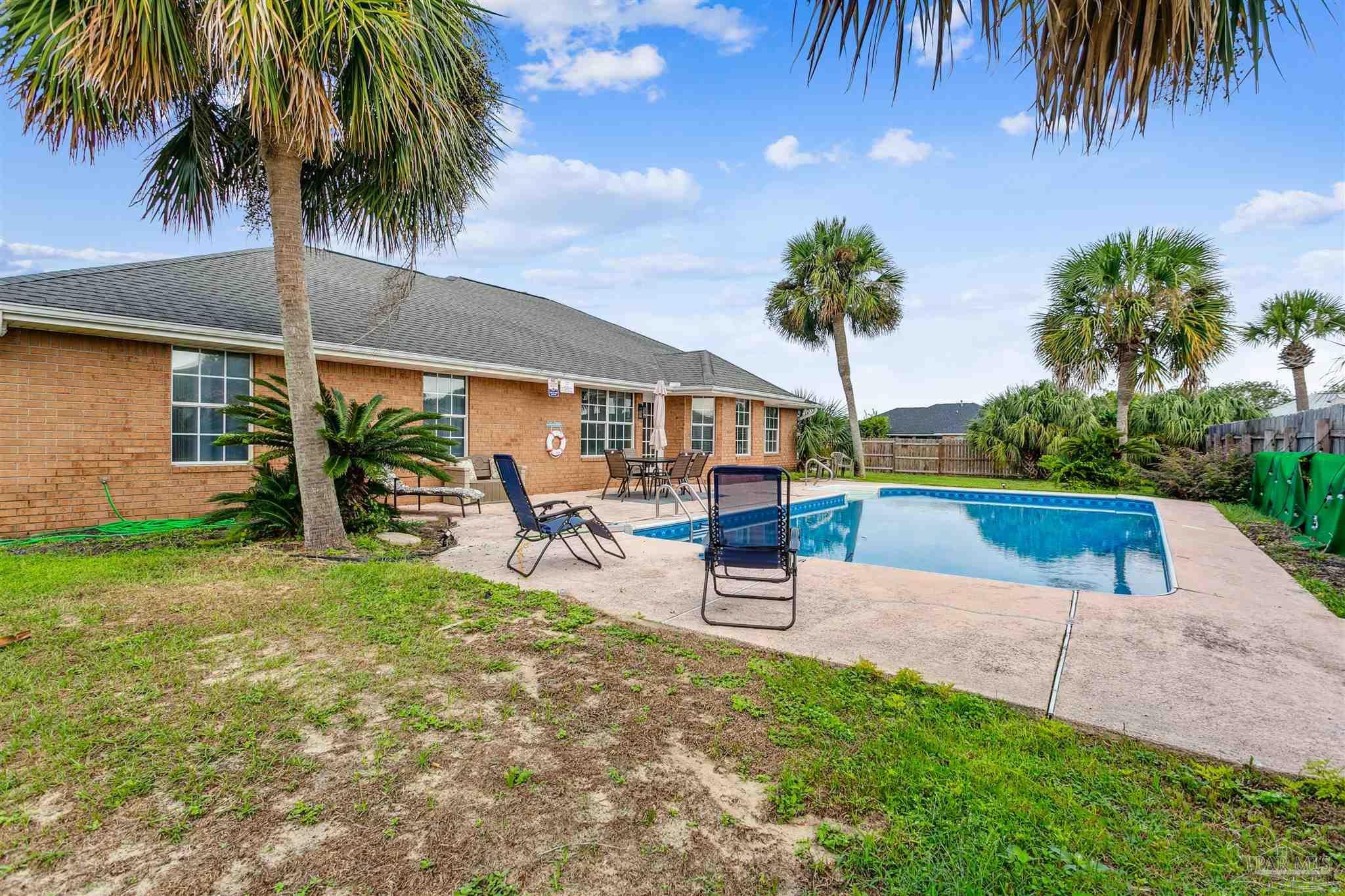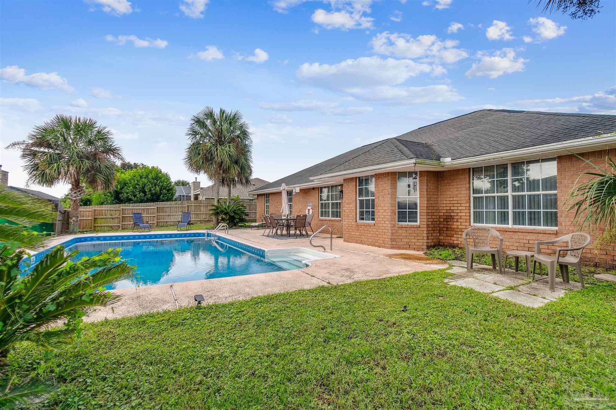 This 4-bedroom, 3-bath Pensacola pool estate offers spacious living, modern updates, and a flexible open layout designed to suit a wide range of lifestyles. The oversized bonus room provides incredible versatility—ideal as a media room, playroom, home office, or hobby space—making the home feel even larger and more functional. Inside, the living room features a cozy fireplace and flows seamlessly into the dining room, breakfast nook, and a well-appointed kitchen with ample cabinetry and counter space. The private primary suite includes two walk- in closets and a beautifully updated bathroom with dual vanities and a soaking tub. Additional bedrooms are generously sized, and three full bathrooms throughout the home ensure comfort and convenience for everyone. Step outside to enjoy a true backyard retreat. A sparkling pool, expansive patio, and lush tropical landscaping create the perfect setting for entertaining, relaxing, or enjoying quiet evenings at home. The location is another standout feature—just a quick 10-minute drive to NAS Pensacola, offering unmatched convenience for anyone who wants to be close to the base. The property is also near local schools, shopping, dining, and only a short drive to the renowned white sand beaches of the Gulf Coast. Whether you’re searching for a primary residence, a coastal getaway, or a smart investment property, this Pensacola home combines space, lifestyle, and location in one complete package.