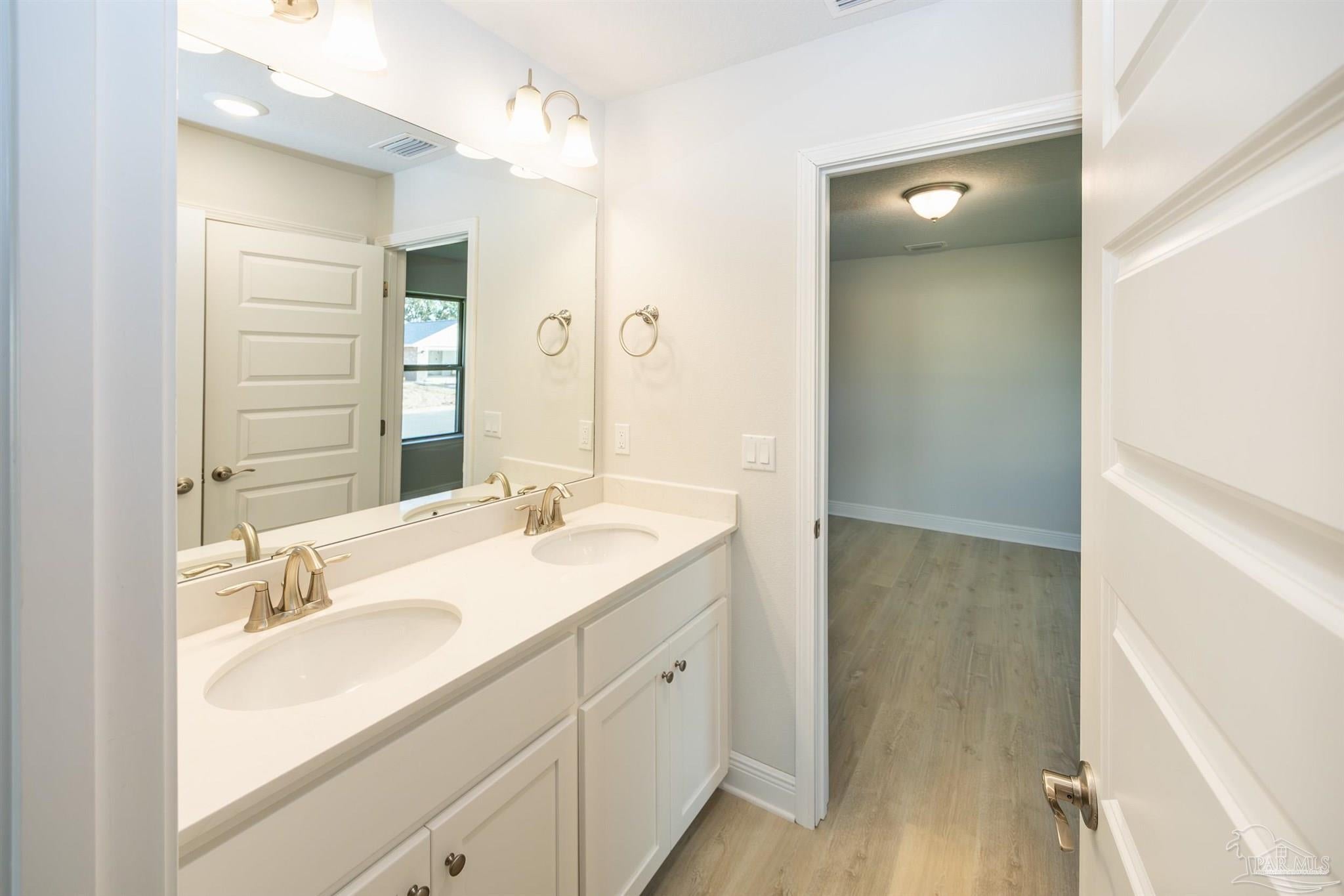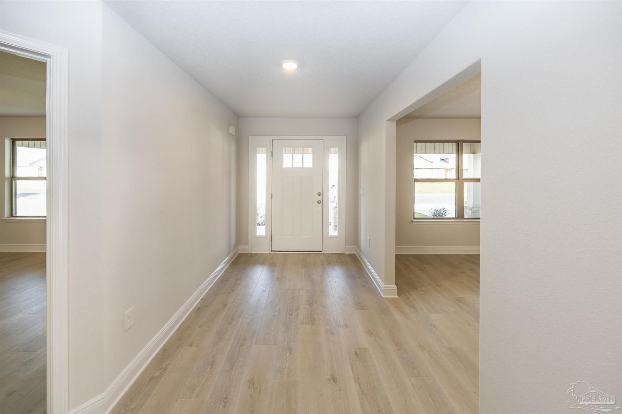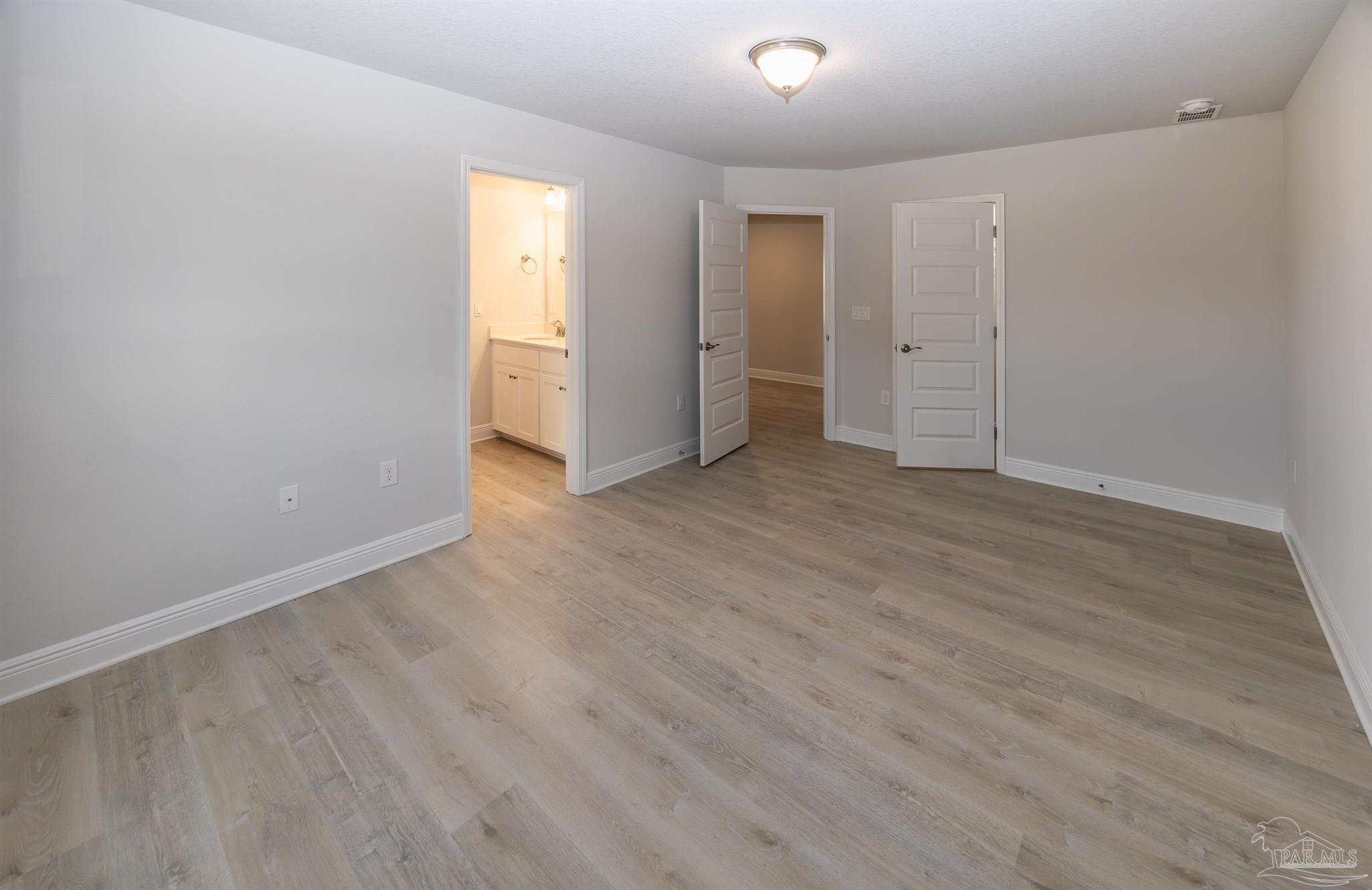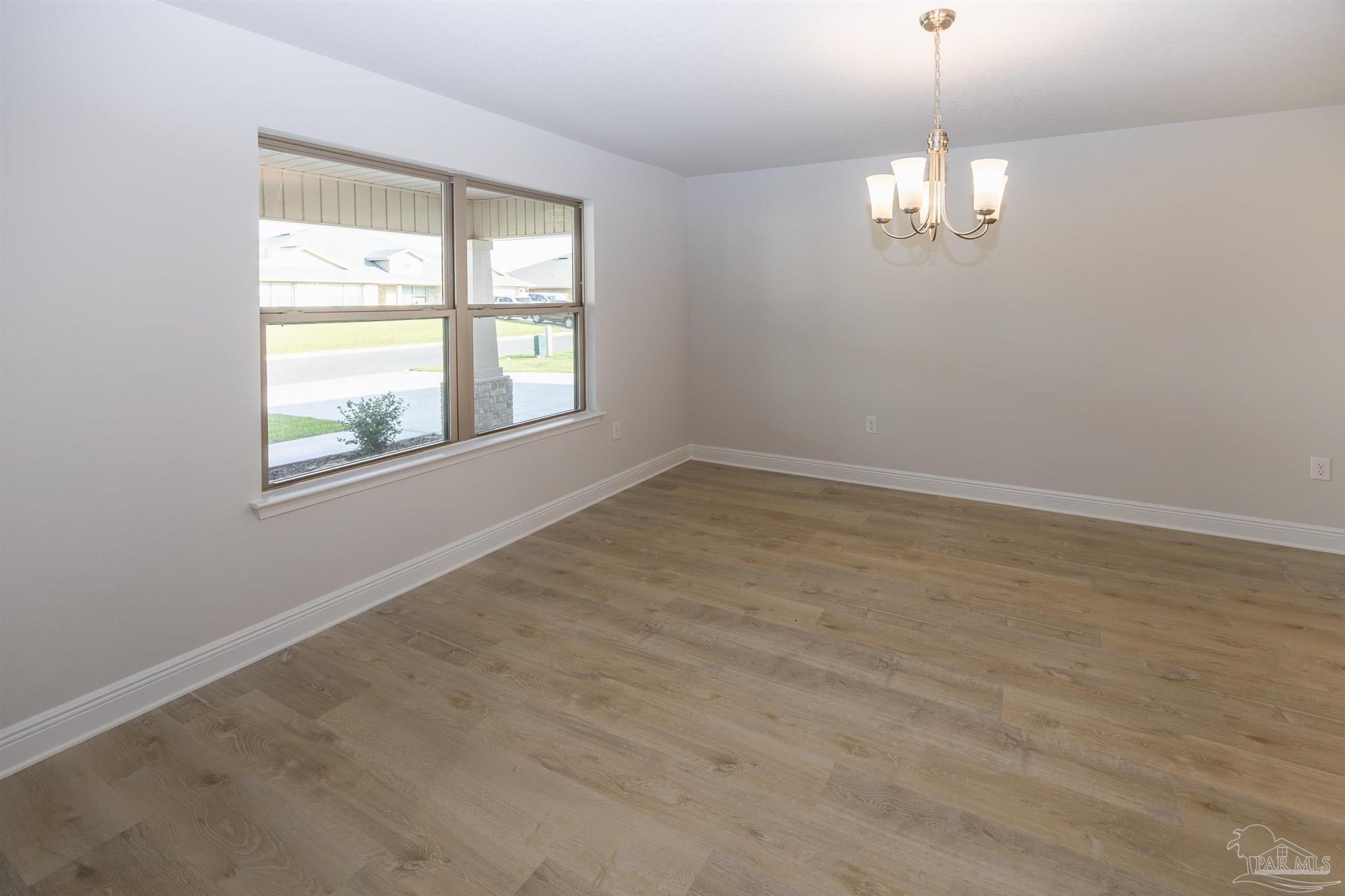 READY NOW! This breathtaking home is a spacious and charming 5-bedroom, 3-bathroom home with an inviting front porch providing a welcoming entrance and on a corner lot. Upon entering the home, you are greeted with an inviting foyer opening into the spacious living area featuring beautiful upgraded LVP flooring for easy care throughout the home. The heart of this home is the open-concept living space, where the kitchen seamlessly connects to the family room with a large island. The kitchen has upgraded beautiful quartz countertops, custom white shaker cabinets with crown molding, and stainless steel appliances. The owner's suite is a true sanctuary, featuring an ensuite bathroom featuring a corner soaking tub, a separate shower, and quartz countertops. The five bedrooms offer ample space for family or guests, with possibilities for various uses such as bedrooms, home offices, or hobby rooms. The backyard offers outdoor living space with room for relaxation and entertainment with an upgraded 14' x 16' covered porch, and floodlights. This beautiful home has a fully sodded homesite with a sprinkler system, a garage door opener, and many other stunning features. Thank you!