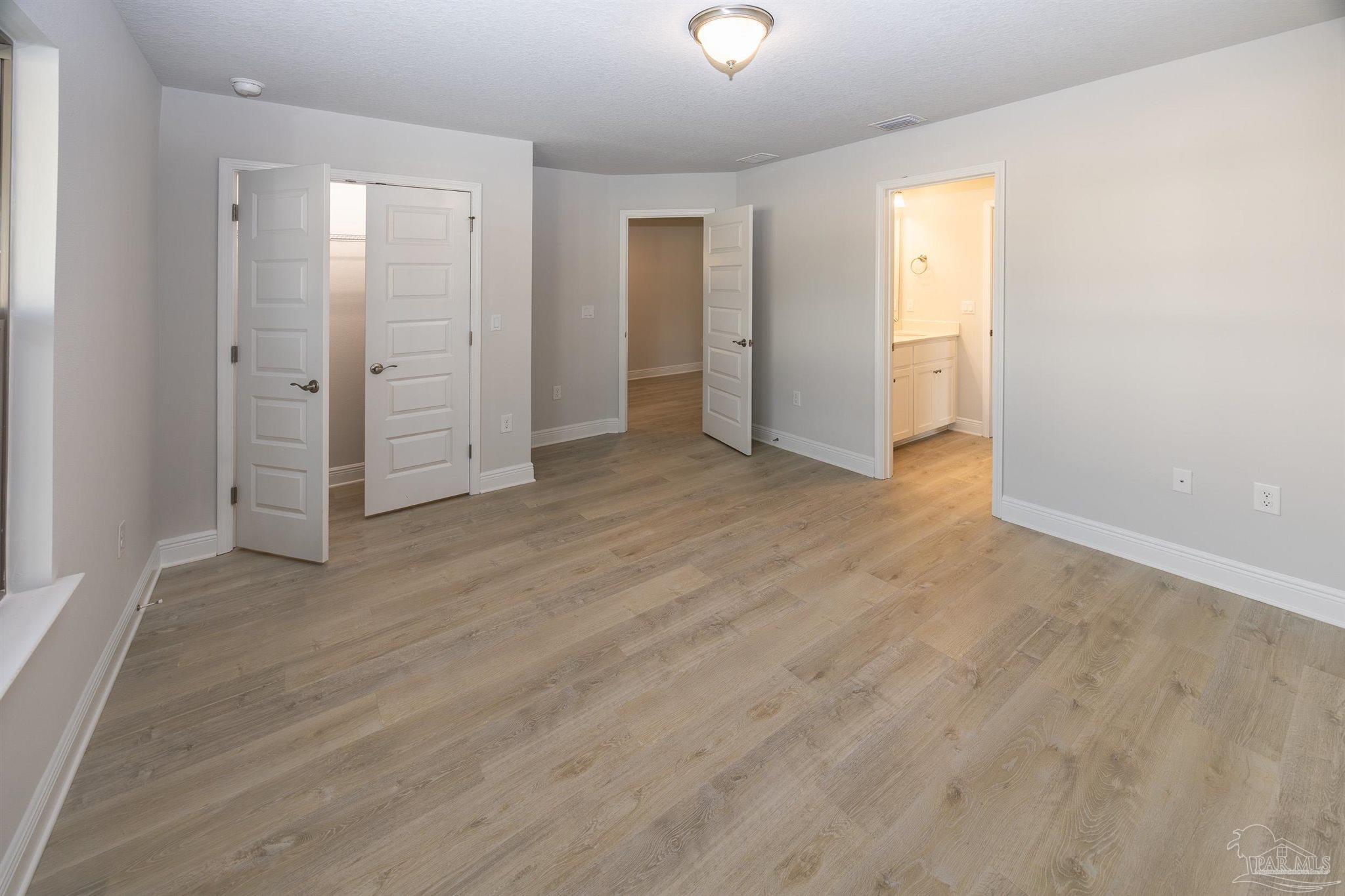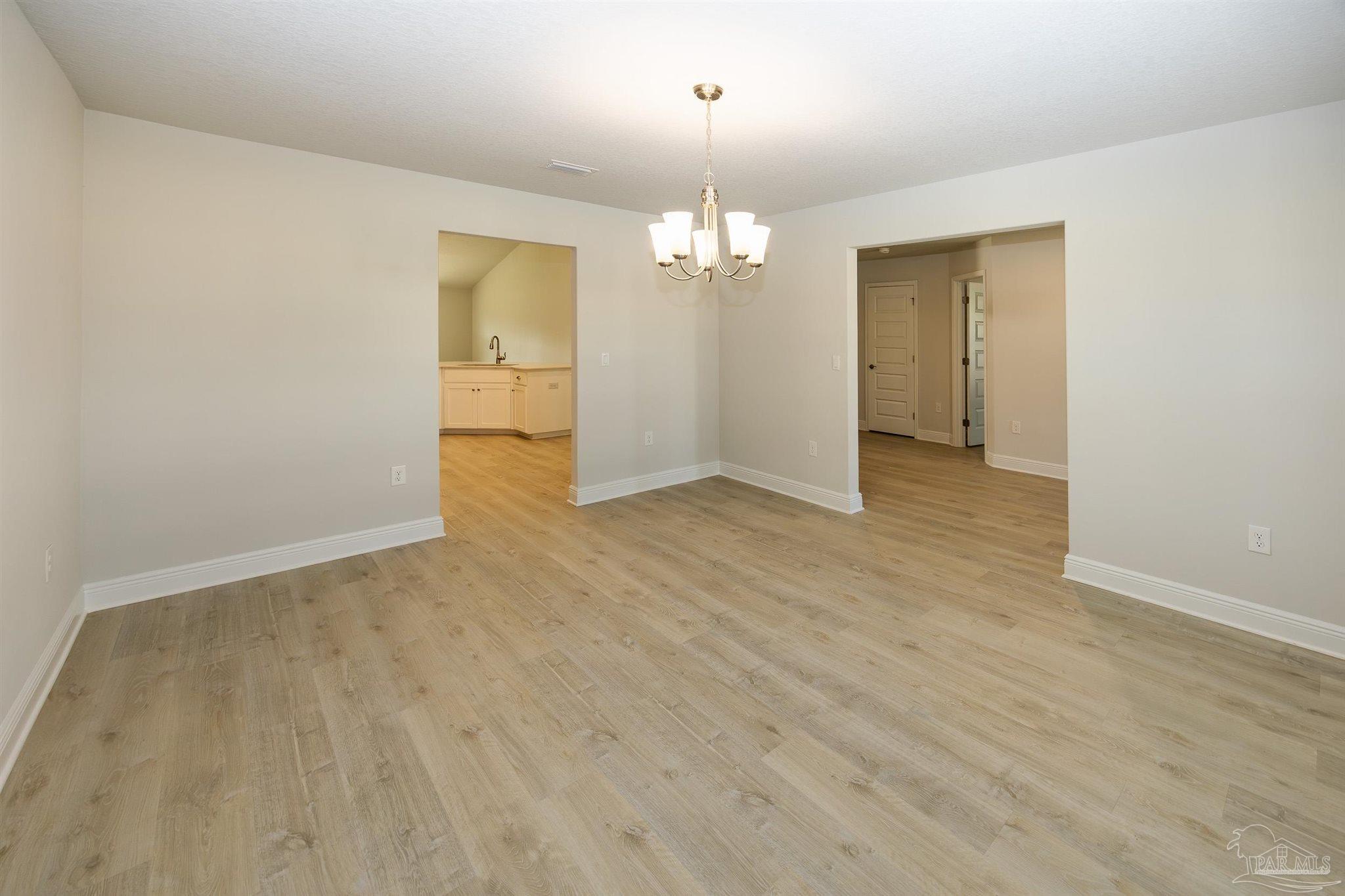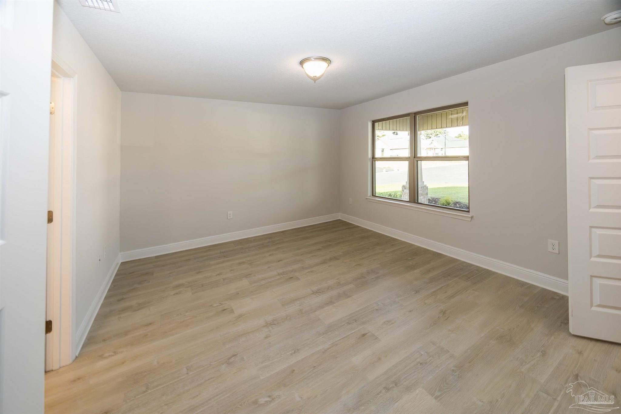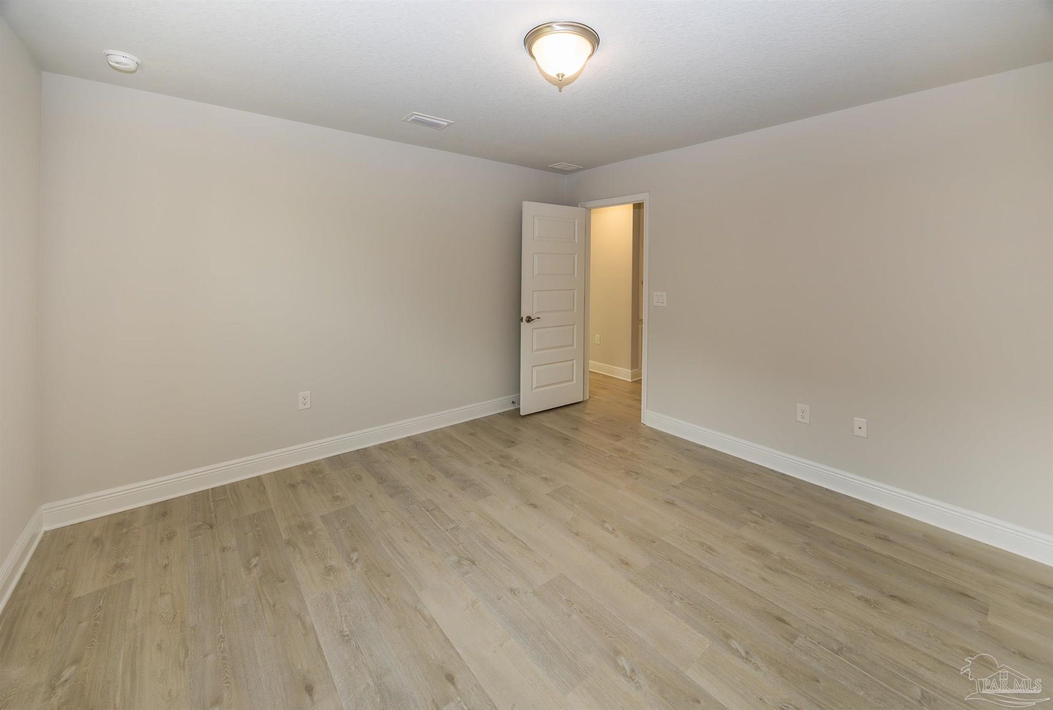 READY NOW! This breathtaking home is a spacious and charming 5-bedroom, 3-bathroom home with an inviting front porch providing a welcoming entrance and on a corner lot. Upon entering the home, you are greeted with an inviting foyer opening into the spacious living area featuring beautiful upgraded LVP flooring for easy care throughout the home. The heart of this home is the open-concept living space, where the kitchen seamlessly connects to the family room with a large island. The kitchen has upgraded beautiful quartz countertops, custom white shaker cabinets with crown molding, and stainless steel appliances. The owner's suite is a true sanctuary, featuring an ensuite bathroom featuring a corner soaking tub, a separate shower, and quartz countertops. The five bedrooms offer ample space for family or guests, with possibilities for various uses such as bedrooms, home offices, or hobby rooms. The backyard offers outdoor living space with room for relaxation and entertainment with an upgraded 14' x 16' covered porch, and floodlights. This beautiful home has a fully sodded homesite with a sprinkler system, a garage door opener, and many other stunning features. Thank you!