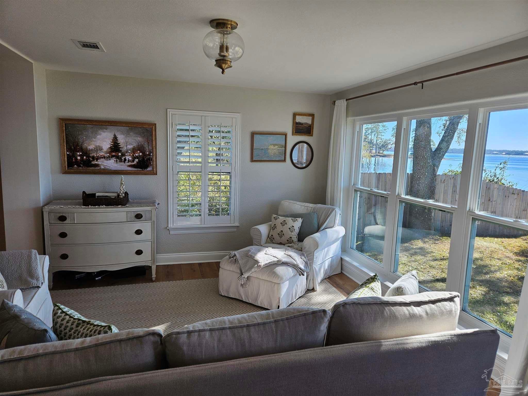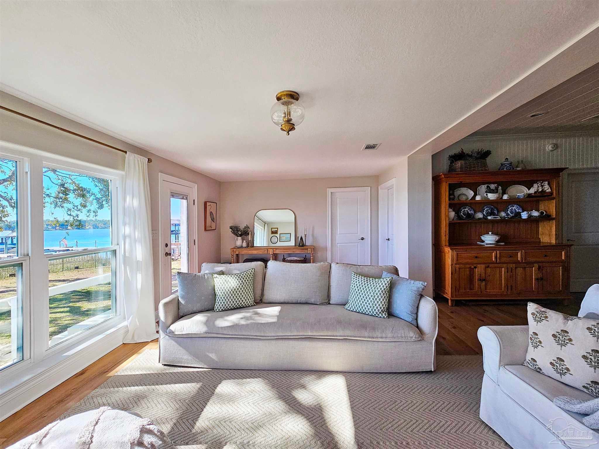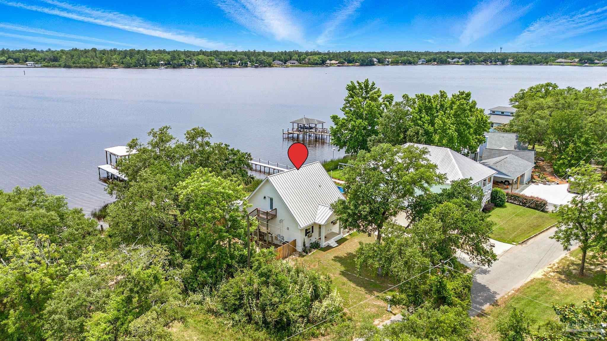 Escape to a retreat on the shores of Blackwater Bay with this beautifully updated 3-bedroom, 2.5-bath coastal cottage offering over 2,100 square feet of stylish, comfortable living space. The sellers have done all the hard work for you with renovations inside and out. The extensive list of updates include: new kitchen, seamless metal roof, impact-resistant windows, new doors and flooring, fresh paint, updated fixtures, wood-accented ceilings and walls, HVAC system, water heater, new sod and fencing, as well as upgrades to the dock, boat lift roof, jet ski lift, pergola, and landscaping. Most of it completed within the past year. Be sure to ask your agent for a list of recent updates. Step outside to enjoy a private dock with new extensions, featuring a covered boat lift and jet ski lift for effortless water access. A concrete patio with a cedar pergola creates the perfect setting for entertaining or simply relaxing by the water. The fully fenced yard with new sod provides privacy and low-maintenance outdoor space. Tucked away from highway noise yet conveniently close to I-10, this home combines peaceful seclusion with easy access to modern amenities. There are no HOA restrictions, giving you the freedom to live your way. A short boat ride takes you to downtown Milton for waterfront dining and entertainment. Best of all, the property comes with affordable and transferable flood insurance, currently just $1,021 per year. The breathtaking waterfront setting offers direct Gulf access and the chance to witness stunning sunrises and sunsets, along with frequent visits from dolphins and manatees. Whether you're fishing for redfish, trout, or flounder off your own dock, or cruising to nearby destinations, this location offers a lifestyle like no other. This home is a true sanctuary for nature lovers and boating enthusiasts alike.