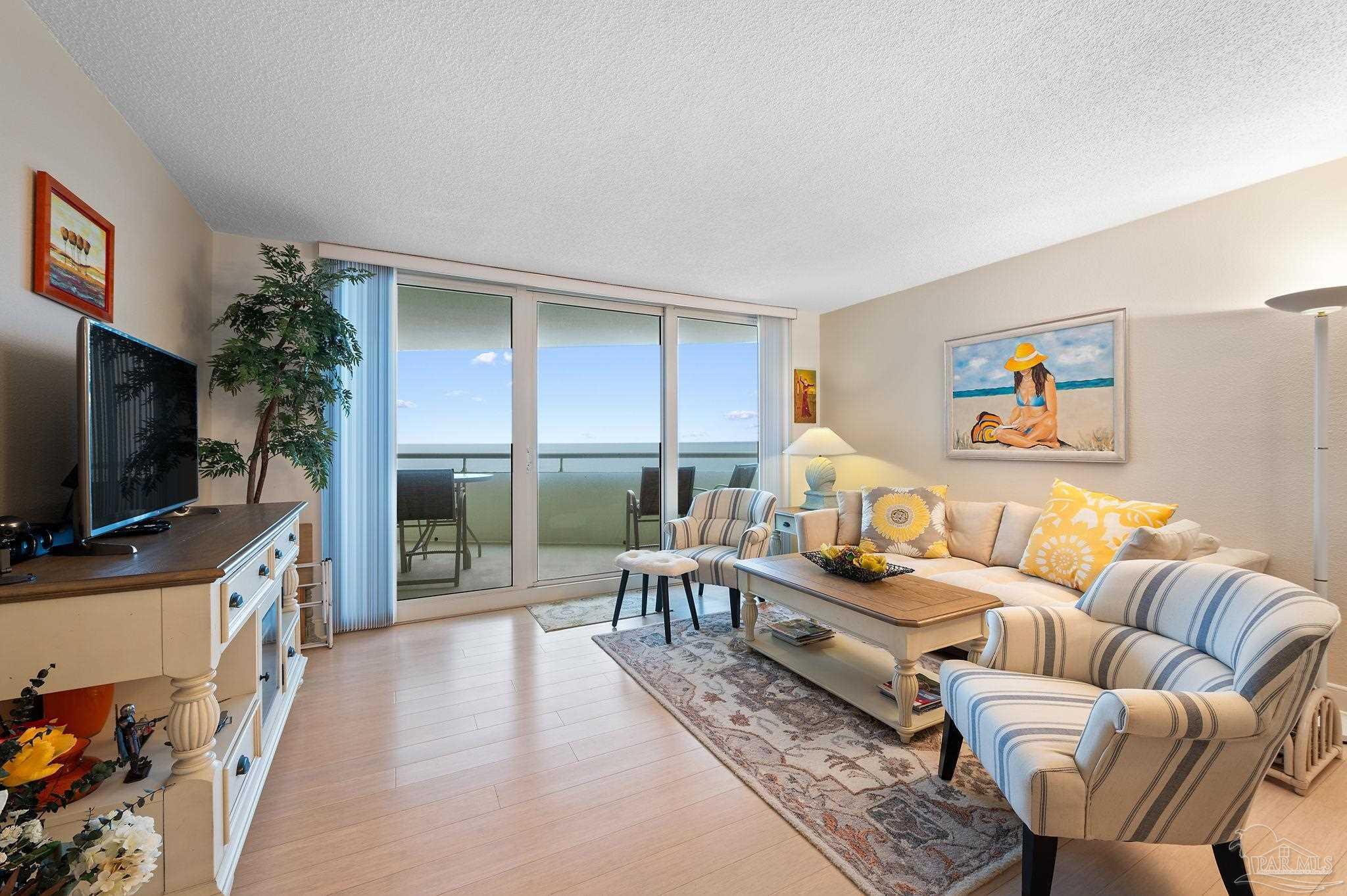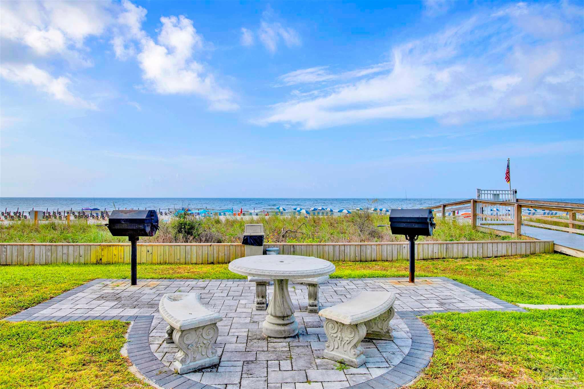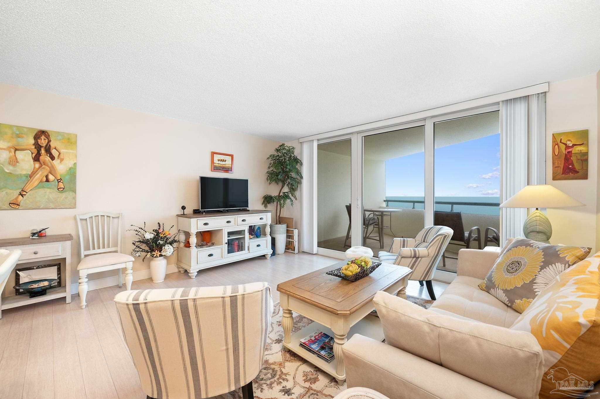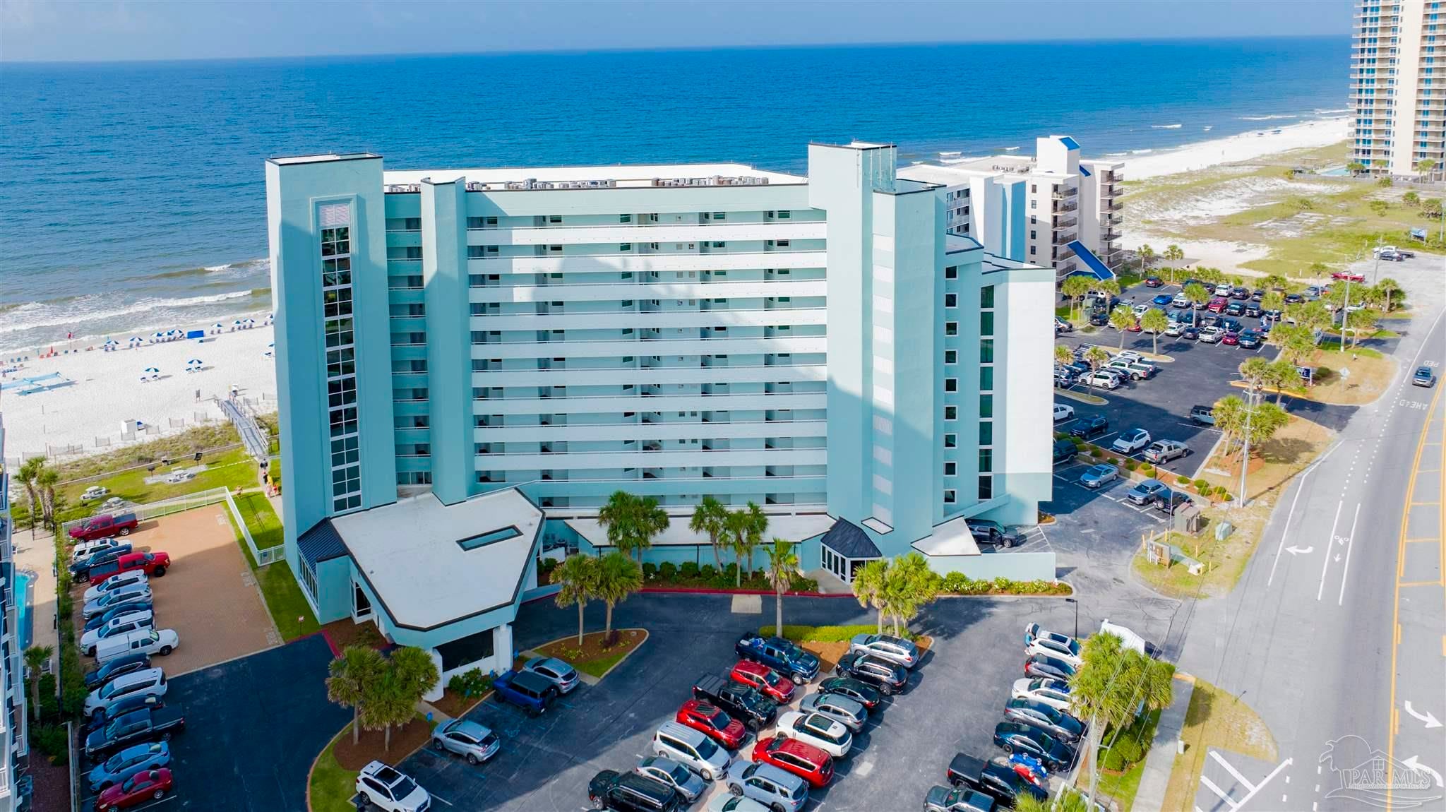 VACANT EASY TO SHOW. FULLY FURNISHED AND BEAUTIFULLY UPDATED BEACHFRONT GETAWAY, OR TURN-KEY RENTAL WITH $41K+ IN PROJECTED RENTAL INCOME! PERDIDO SUN IS ONE OF PERDIDO KEY'S MOST POPULAR GULF-FRONT COMPLEXES WITH HEATED INDOOR POOL AND CONVENIENT SHOPPING/DINING RIGHT ACROSS THE STREET! NEWLY COMPLETED WHOLE BUILDING PAINT PROJECT AND WINDOW REPLACEMENTS! This spacious 5th floor, 1 bedroom 1.5-bathroom residence has been nicely updated and lovingly maintained as a second home by the current owners. Improvements include tile and wood-look luxury vinyl flooring throughout the condo and NEW HVAC AS OF MAY 2024! Enjoy AMAZING Gulf and sunset views from the spacious balcony or relax in the extra-large living area. An updated kitchen features modern cabinetry, granite countertops, beautiful tile backsplash and stainless-steel appliances. The large primary suite features en-suite bath with tiled shower and modern vanity with granite countertop. Perdido Sun offers on-site association management and staff plus wonderful amenities for owners & guests including security coded lobby access, gulf front heated indoor pool, spacious outdoor pool, large sundeck & spa, community meeting /game-room, and fitness center with showers and an on-site laundry facility. RELAX, UNWIND AND ENJOY one of Perdido Key's most sought-after resort-style properties! **Some artwork excluded** Perdido Sun is NOT a Pet Friendly Property.