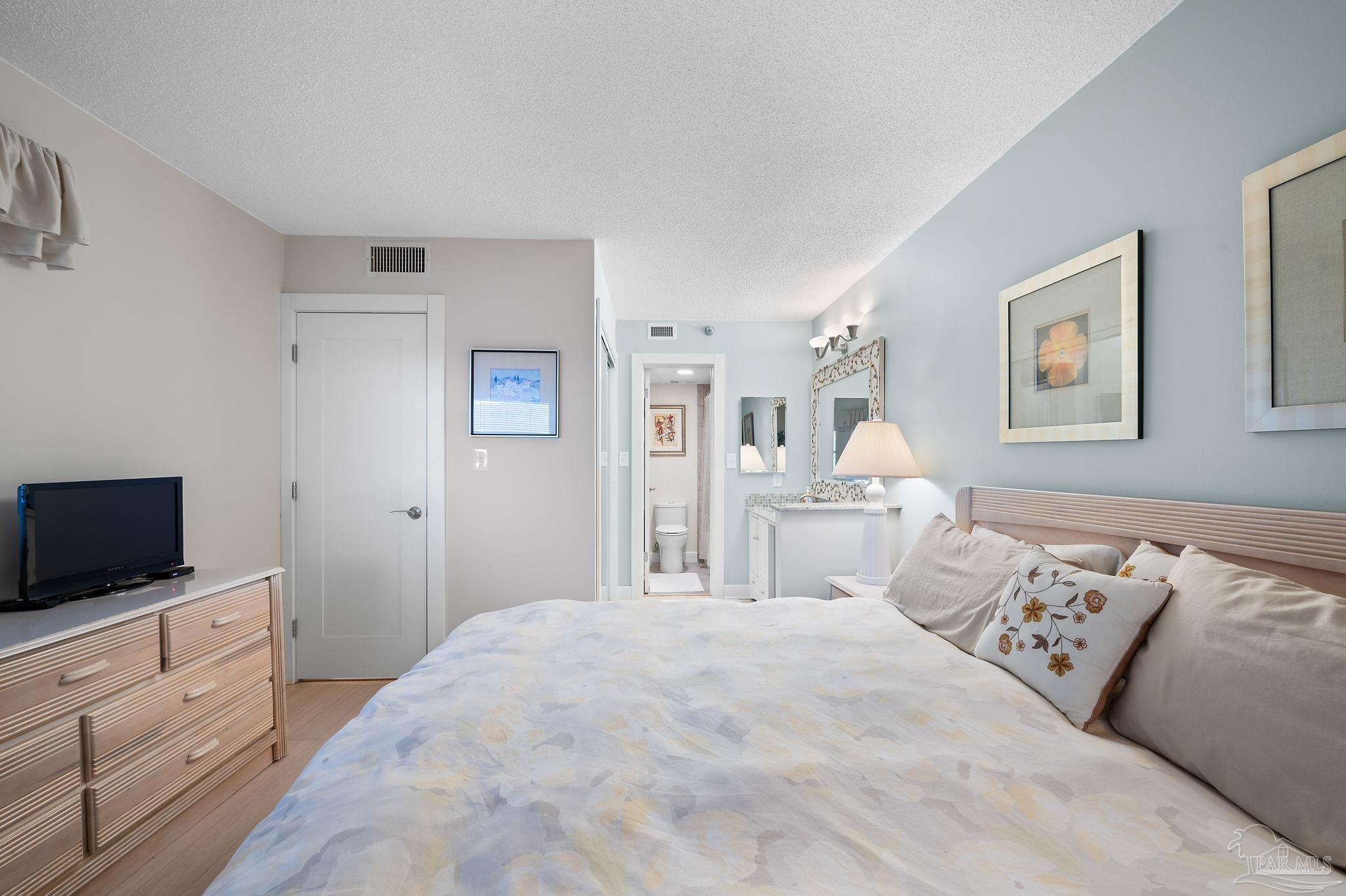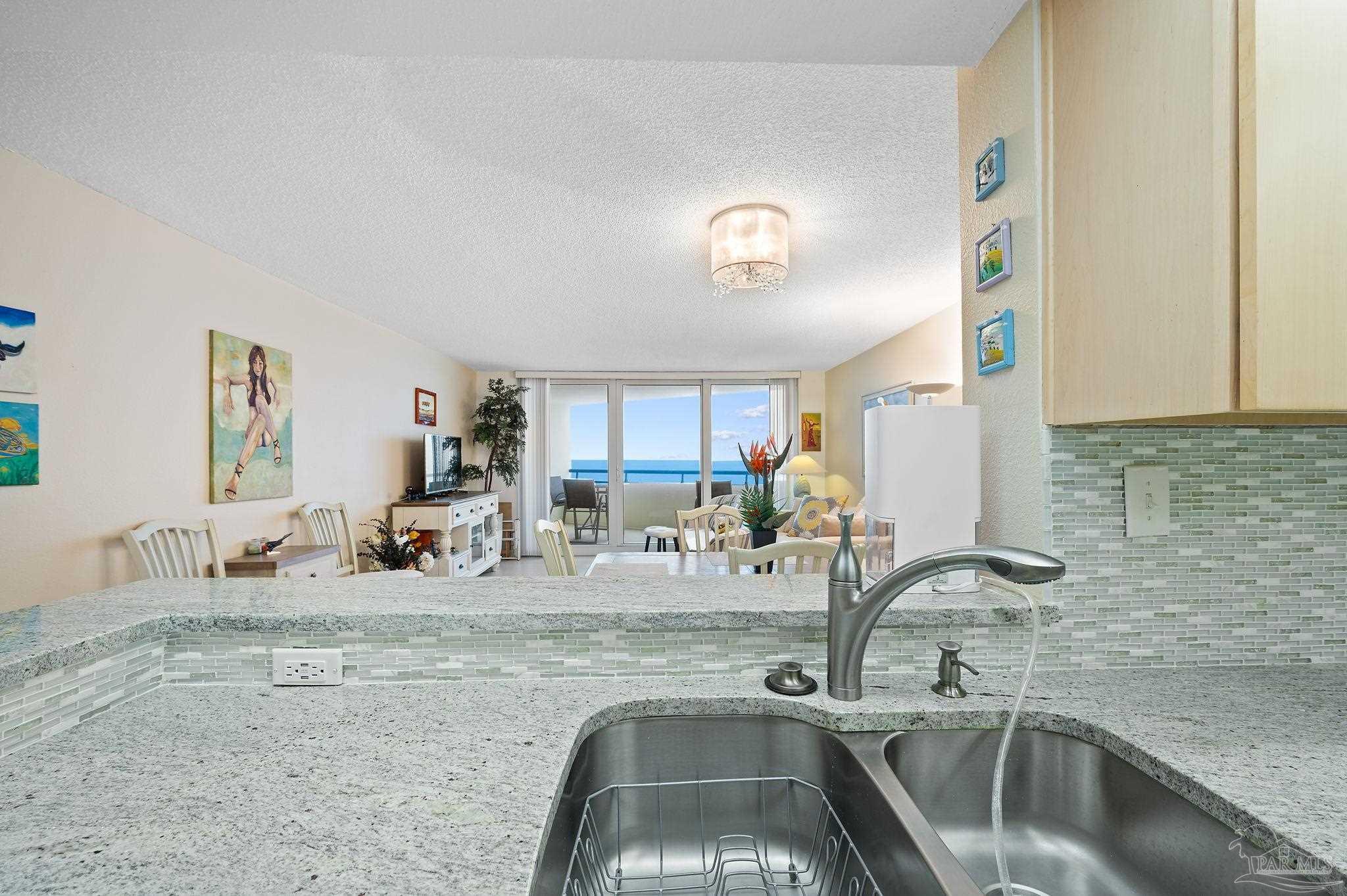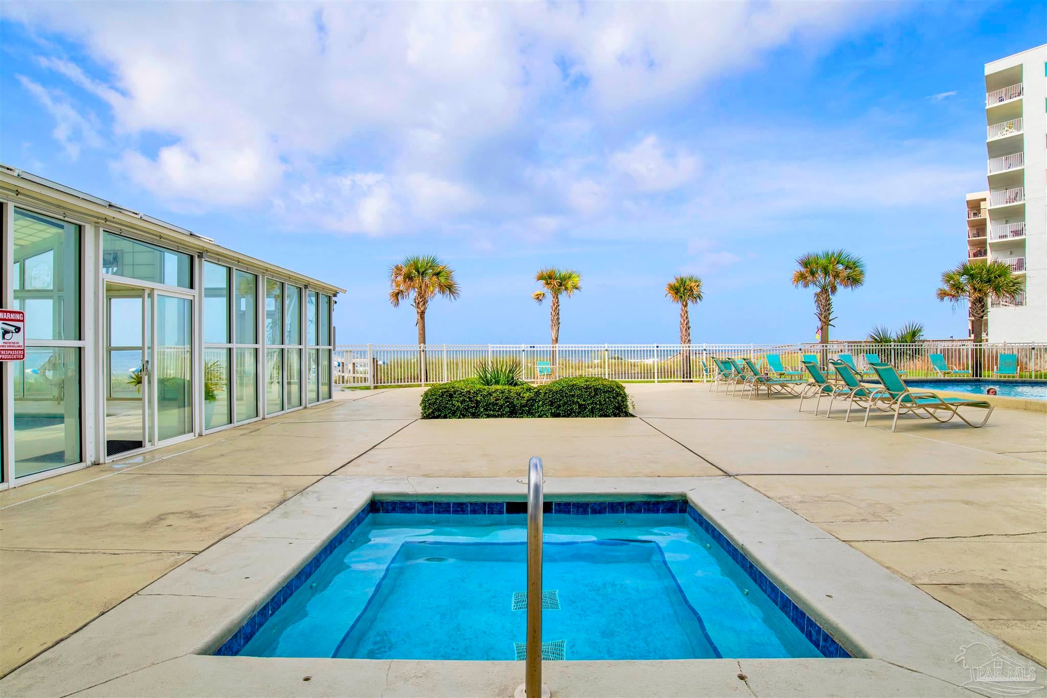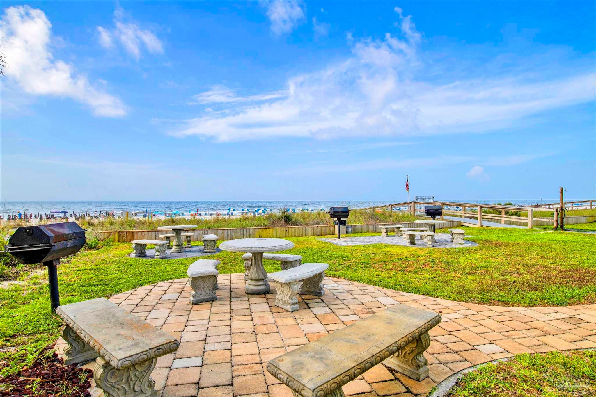 VACANT EASY TO SHOW. FULLY FURNISHED AND BEAUTIFULLY UPDATED BEACHFRONT GETAWAY, OR TURN-KEY RENTAL WITH $41K+ IN PROJECTED RENTAL INCOME! PERDIDO SUN IS ONE OF PERDIDO KEY'S MOST POPULAR GULF-FRONT COMPLEXES WITH HEATED INDOOR POOL AND CONVENIENT SHOPPING/DINING RIGHT ACROSS THE STREET! NEWLY COMPLETED WHOLE BUILDING PAINT PROJECT AND WINDOW REPLACEMENTS! This spacious 5th floor, 1 bedroom 1.5-bathroom residence has been nicely updated and lovingly maintained as a second home by the current owners. Improvements include tile and wood-look luxury vinyl flooring throughout the condo and NEW HVAC AS OF MAY 2024! Enjoy AMAZING Gulf and sunset views from the spacious balcony or relax in the extra-large living area. An updated kitchen features modern cabinetry, granite countertops, beautiful tile backsplash and stainless-steel appliances. The large primary suite features en-suite bath with tiled shower and modern vanity with granite countertop. Perdido Sun offers on-site association management and staff plus wonderful amenities for owners & guests including security coded lobby access, gulf front heated indoor pool, spacious outdoor pool, large sundeck & spa, community meeting /game-room, and fitness center with showers and an on-site laundry facility. RELAX, UNWIND AND ENJOY one of Perdido Key's most sought-after resort-style properties! **Some artwork excluded** Perdido Sun is NOT a Pet Friendly Property.