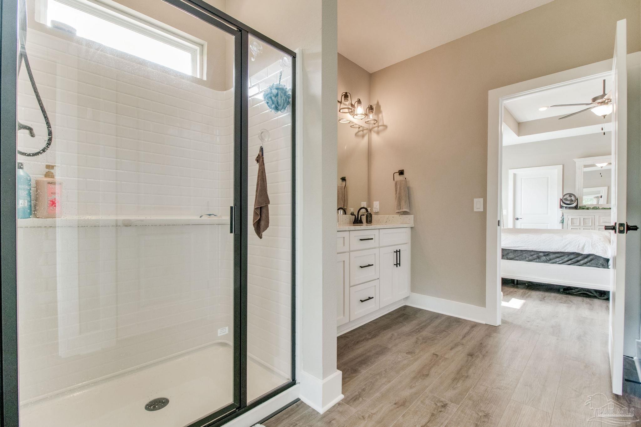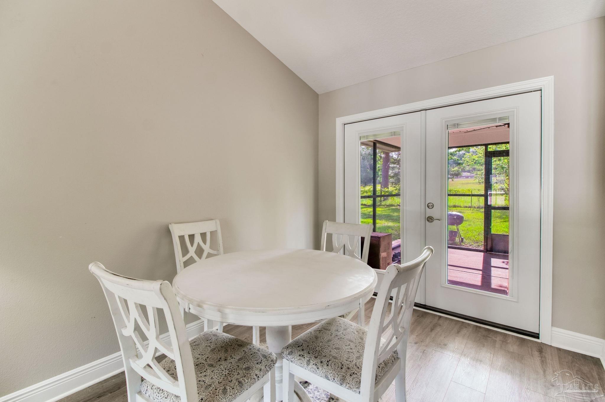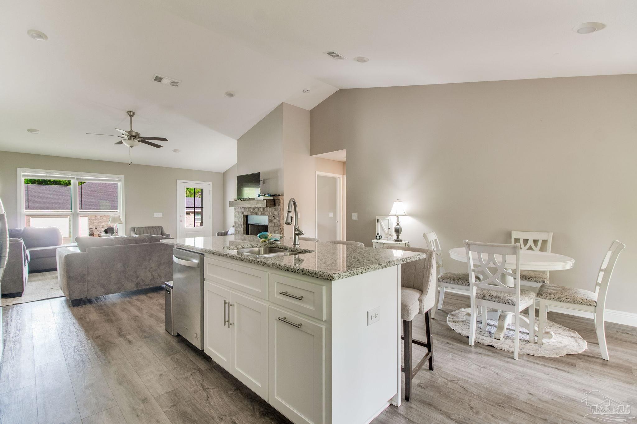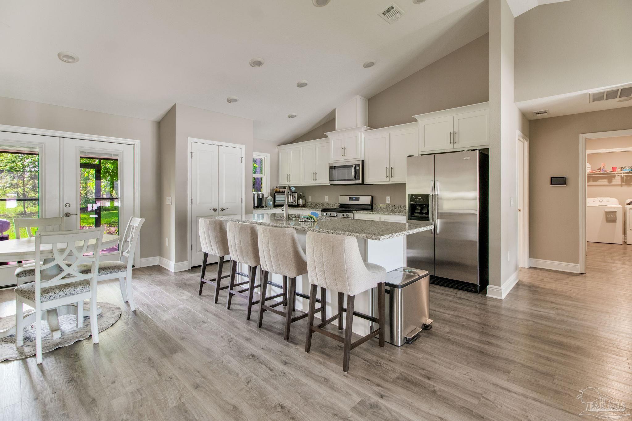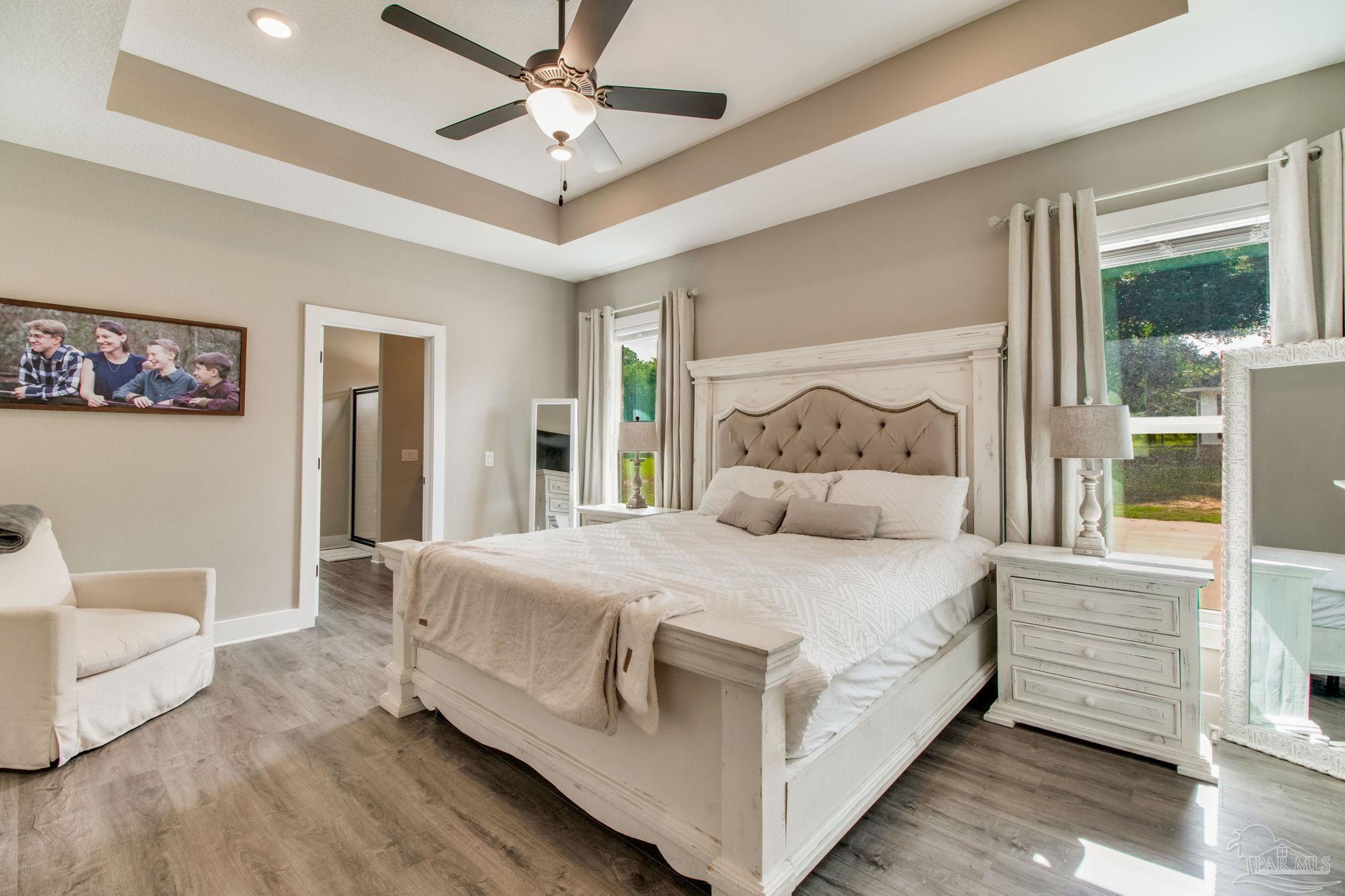 Muti-generational Homestead Estate! This unique property is less than 2 years old, located on 3 acres, and close to everything convenient along the Nine Mile corridor. Features to note include underground utilities, available fiber-optics, no carpet, no HOA, three walk-in closets in primary bedroom and bath, and full guest home which includes an extra 2 car garage! The main house contains 5 bedrooms plus an office, and 3 full bathrooms. The kitchen has two ovens, and the island has double cabinet storage, and is a massive 12.5 feet in length! The walk-in pantry has a custom countertop, appliance shelves, and canning shelves. Three floor outlets add convenience no matter how you arrange the furniture in the great room while facing the TV and wood-burning fireplace. The vaulted ceiling is found both in the main area and the beautiful screen room. Unique features include 3 EV chargers in the three car garage, plumbing and water hook-up for an outdoor kitchen, 220 outlet for a hot tub on slab, 220 outlet for a future pool, and an RV electrical hook-up on the massive concrete parking area. The land features a tree house, 10 fruit trees, 4 blueberry bushes, a 4 bay open shed with three built-in separate chicken coops, and a circle drive with electricity in the center. As if this were not enough, there is a whole other 3 bedroom, 2 bath home that is handicap accessible with a zero entry shower and wide hallways, and screen porch out back, etc. Owner is agent so contact directly via text or contact yoiur preferred agent.