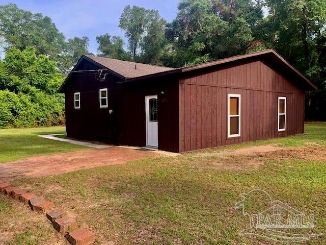 1 acre in Milton City Limits! Renovated exterior AND the detached workshop May, 2025. 3 bedroom 2 bath home with copper wiring boasts a NEW roof with moisture barrier, NEW water heater, NEW HVAC, all exteriors prepped and painted, NEW Stainless dishwasher, NEW refrigerator all May, 2025!! INTERIOR completely remodeled 2022 from floor to ceiling with partial subfloor decking stringer/replacements. The original footprint is off grade, a 12'x36' area features a tiled family room and an enclosed laundry/storage room on slab with a rear entrance. Inside 2022 remodeling included painting knock down ceilings, walls, trim; all new kitchen cabinets and counter tops, stove, closet lighting, tile in family and bathrooms, cabinets/vanities counter tops and showers in baths, LVP flooring other areas, stove, microwave. Granite in large bath. Exterior in 2022 included NEW tilt in double pane windows and frames, NEW door frames and doors. Motion detection lights. 2018-2020 partially re-piped. The home faces the left side of the lot with a 16'x8' covered porch. There are majestic oak trees, rock circular driveway and 212' on exclusive Young Lane. There is a sewer line in the road. You will find the renovated, wired garage/workshop/ storage 29.3x19.8 towards the rear of the lot. Seller applied Termidor termite preventative 5/26/2025. The prime location sitting on 1 acre in the Milton City Limits offers privacy and convenience. Close to Blackwater State Park, Milton High, shopping and dining options. There is a pecan tree and a lemon tree among the gorgeous live oaks. Seller has no survey. Current non homestead taxes $1,146.89. (Lot may can be subdivided. R-1 zoning requires 12' from a current roof line to a property line. All verifications to be done by the buyer with the City of Milton.) Seller will gladly assist with some closing costs.
