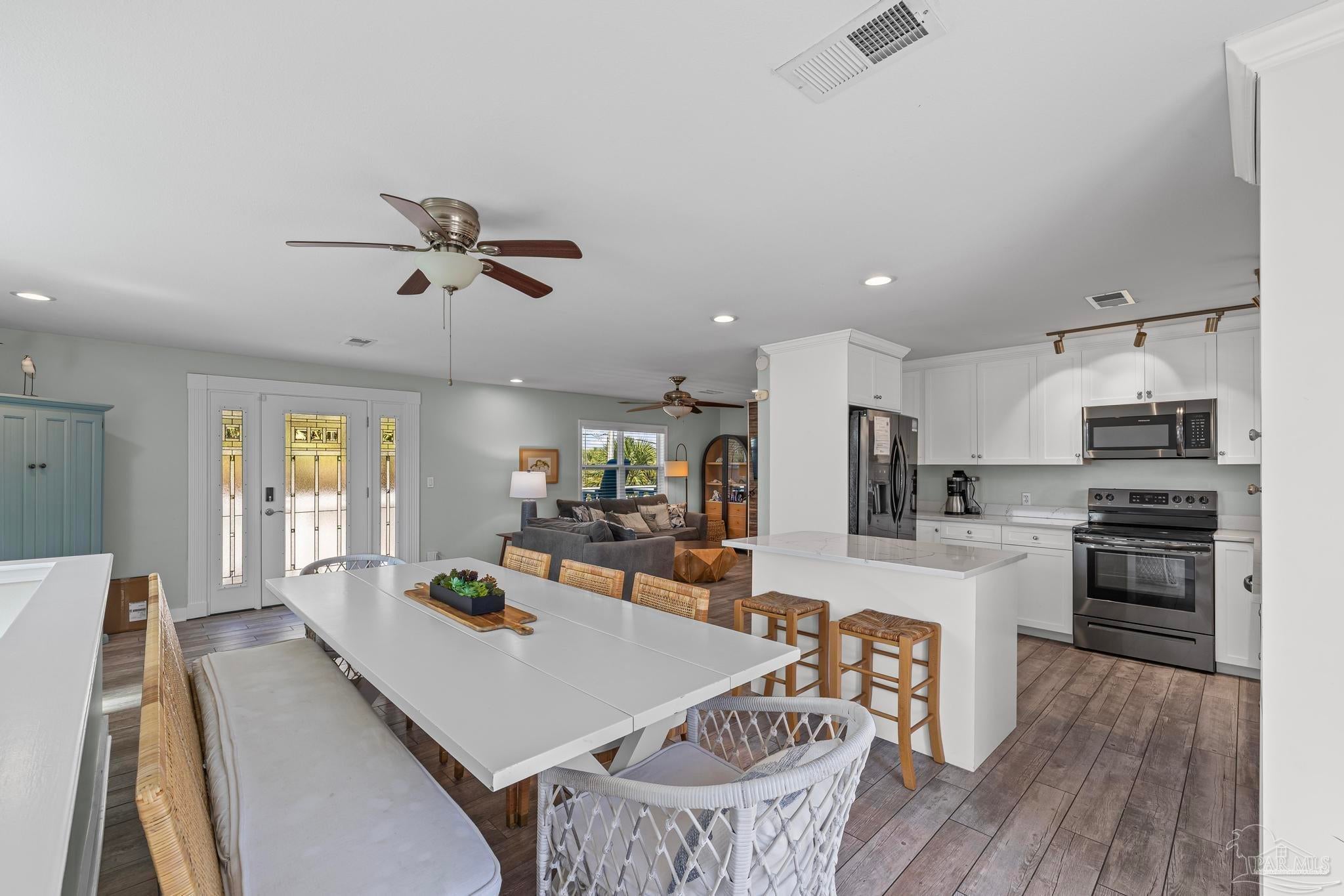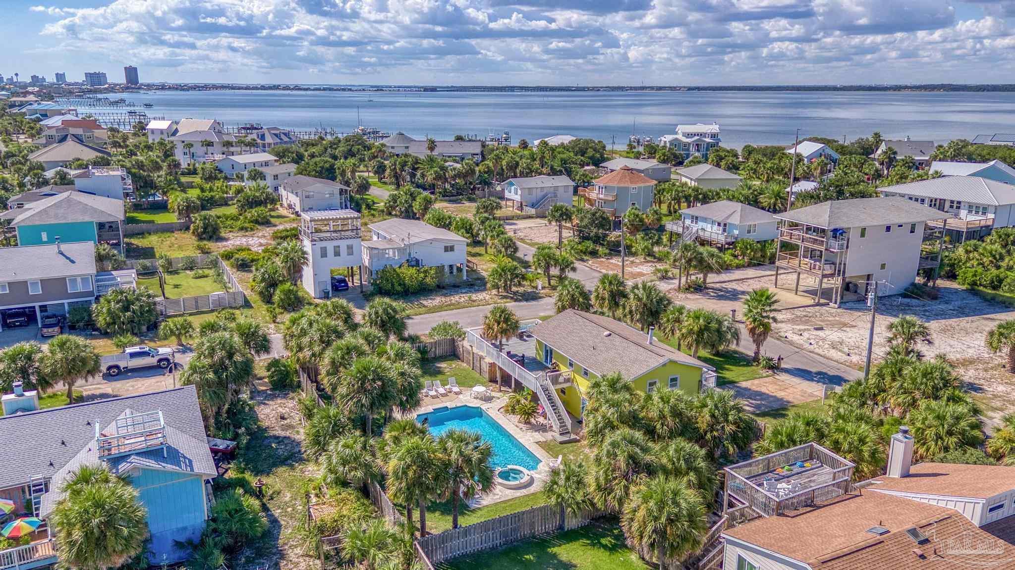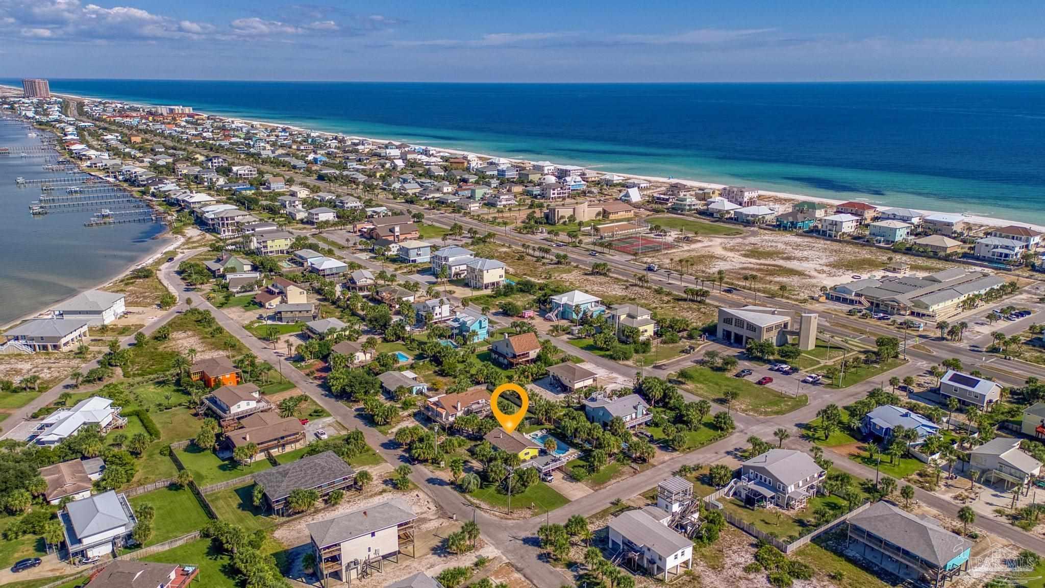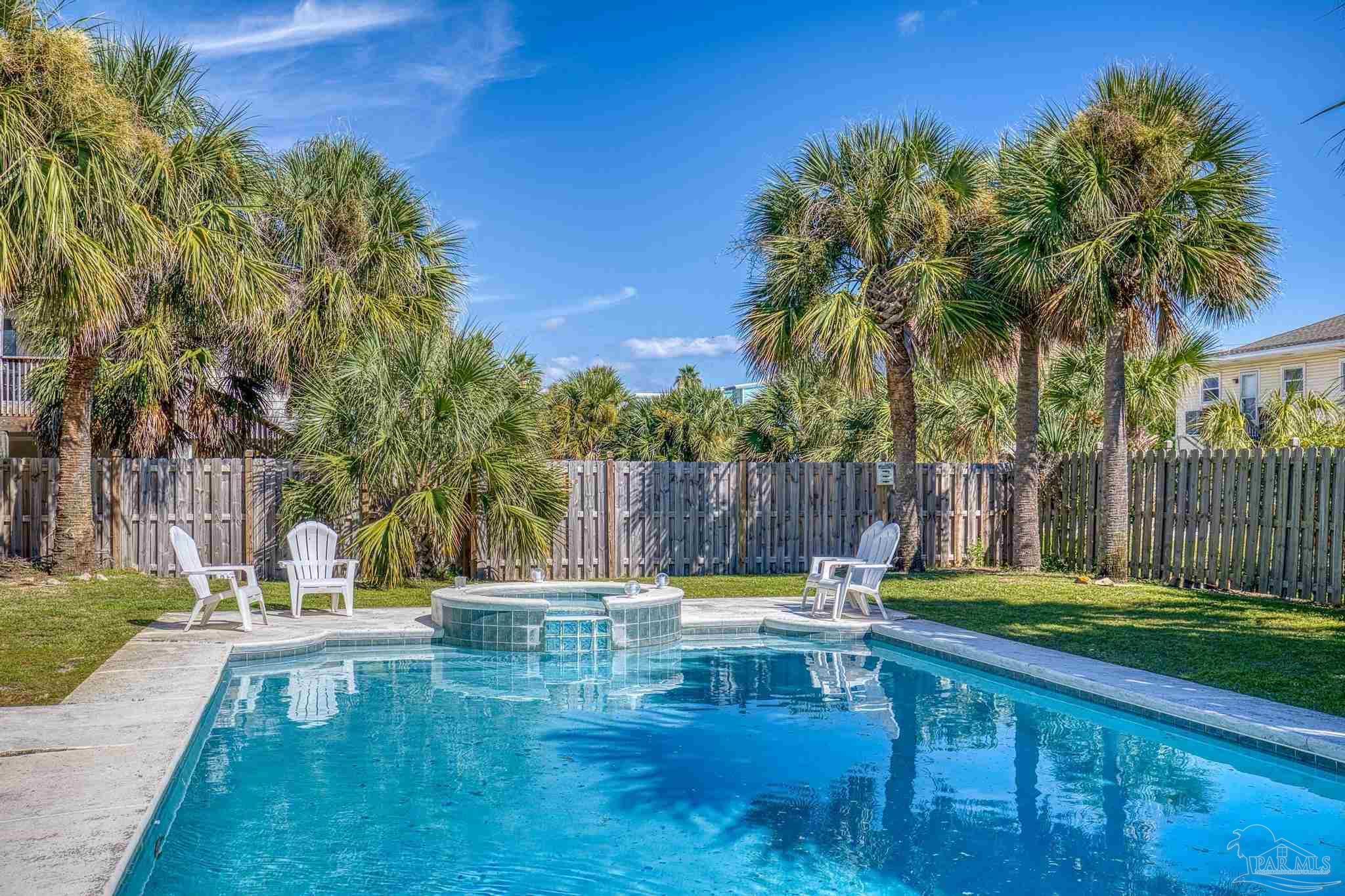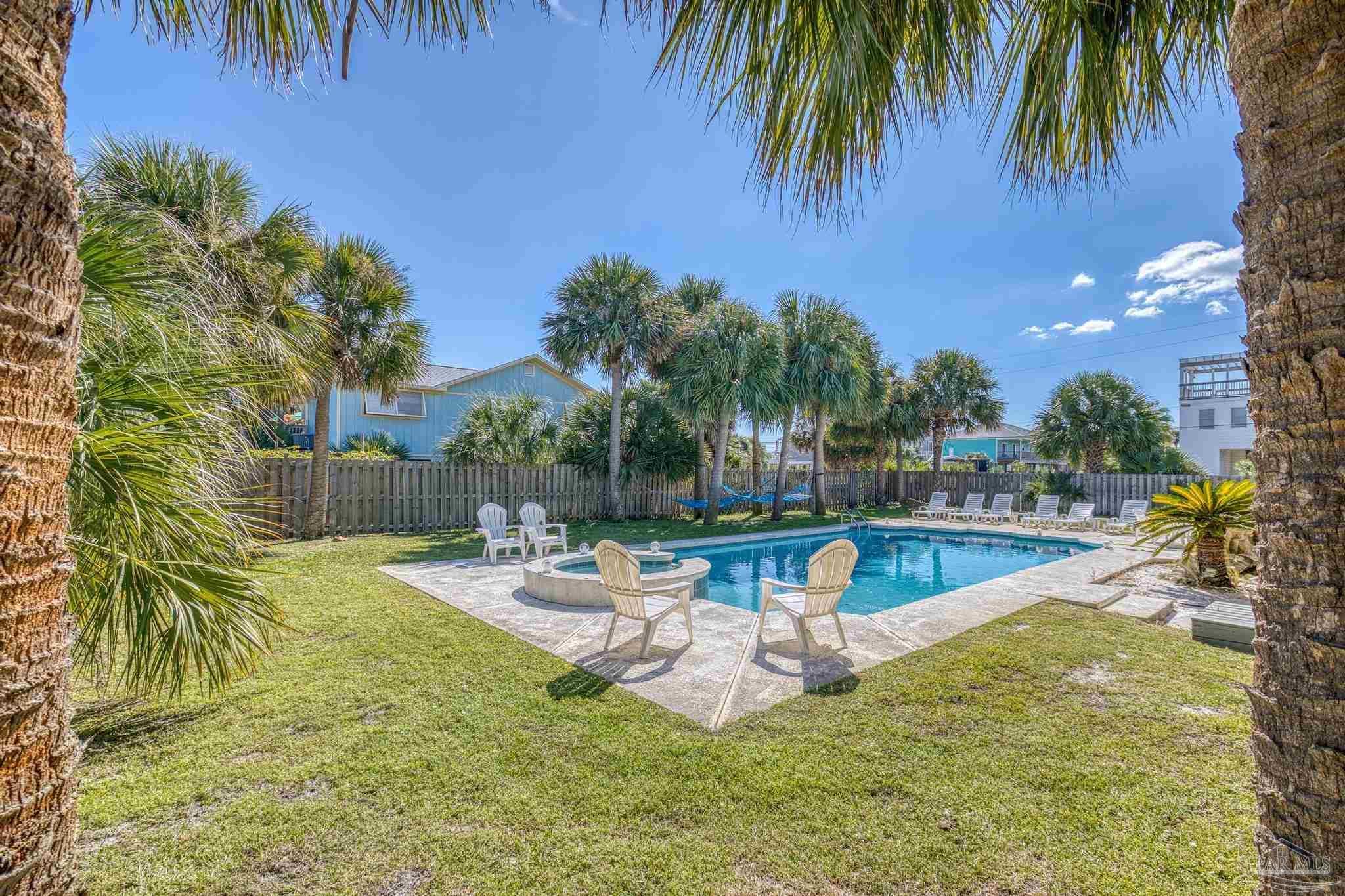 Welcome to Your Slice of Paradise! Get ready to soak up the sun and dive into the beach life in this dreamy two-story coastal retreat! With a sparkling 20 x 40 saltwater heated pool (hello, built-in hot tub!) and a breezy upper deck perfect for sunset cocktails, this home is the ultimate staycation spot—or a fabulous income-producing short-term rental! ?? Upstairs, you’ll find a bright and open living/dining/kitchen combo made for good vibes and great gatherings. Two comfy bedrooms and a beautifully remodeled bathroom offer the perfect blend of beachy charm and comfort. Downstairs (grandfathered in for insurance!) features a spacious master suite with a cozy sitting area and a fun, flexible family room—perfect for movie nights or turning into your own game zone. Just off the pool, there’s a wet bar with plenty of cabinet space and a full-size fridge, ideal for serving up poolside snacks and sunset drinks. And here’s the cherry on top: this beach beauty is being sold fully furnished! Just bring your swimsuit and start living the dream. Major recent upgrades include: • Brand new upstairs and downstairs HVAC • New pool equipment: computer, pump, spa pump, and heater • New electrical panel • New roof (2021) new windows, hurricane shutters, and roof straps through Rebuild NW Florida (2015) Just a short stroll to the sugar-white sands and emerald waters of the Gulf—or head north to the peaceful Intracoastal Waterway. Whether you’re looking for a dreamy full-time home, a vacation getaway, or a turn-key short-term rental, this one has it all. Paradise found—don’t let it slip away!