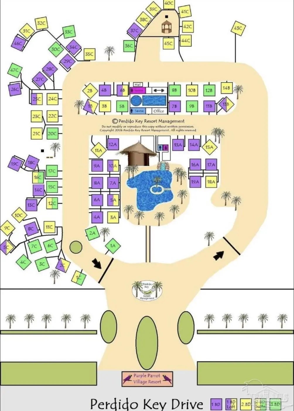 Seller offering Buyers Concessions to be used toward closing costs, prepaids, rate buydowns. Year after year, guests come from miles away to stay in this very spot in Perdido Key. Welcome to your own slice of island paradise at the popular Purple Parrot Resort in Perdido Key! This charming fully furnished 2-bedroom, 2.5-bathroom stand-alone condo is nestled against a lush nature preserve, offering extra privacy and a tranquil backdrop for your coastal escape. The first floor has been completely remodeled and features new flooring, a beautifully updated kitchen, and fresh coastal furniture. The spacious living area is perfect for relaxing, with a 42-inch wall-mounted TV, DVD player, and a sleeper sofa for extra guests. The dining area offers comfortable seating for your group, and the fully stocked kitchen makes entertaining a breeze. A convenient washer and dryer are located just off the kitchen. Upstairs, the king-sized master suite boasts a private east-facing balcony, wall-mounted TV, and en-suite bath. The guest bedroom features a queen bed, its own wall-mounted TV, and a private bathroom along with a large balcony—perfect for soaking in the warm Gulf Coast weather. Enjoy year-round outdoor living on the screened-in deck on the main level, surrounded by swaying palms. Purple Parrot Resort amenities include a resort-style outdoor pool with waterfalls, heated indoor pool, hot tub, sauna, beach volleyball, and an onsite tiki bar and restaurant with live music. Whether you're seeking a full-time residence, vacation home, or investment property, this beautifully updated condo is the perfect island retreat! Less than a mile to the sugar white sands of Perdido Key, close to downtown Pensacola, NAS Pensacola, Orange Beach and Gulf Shores.