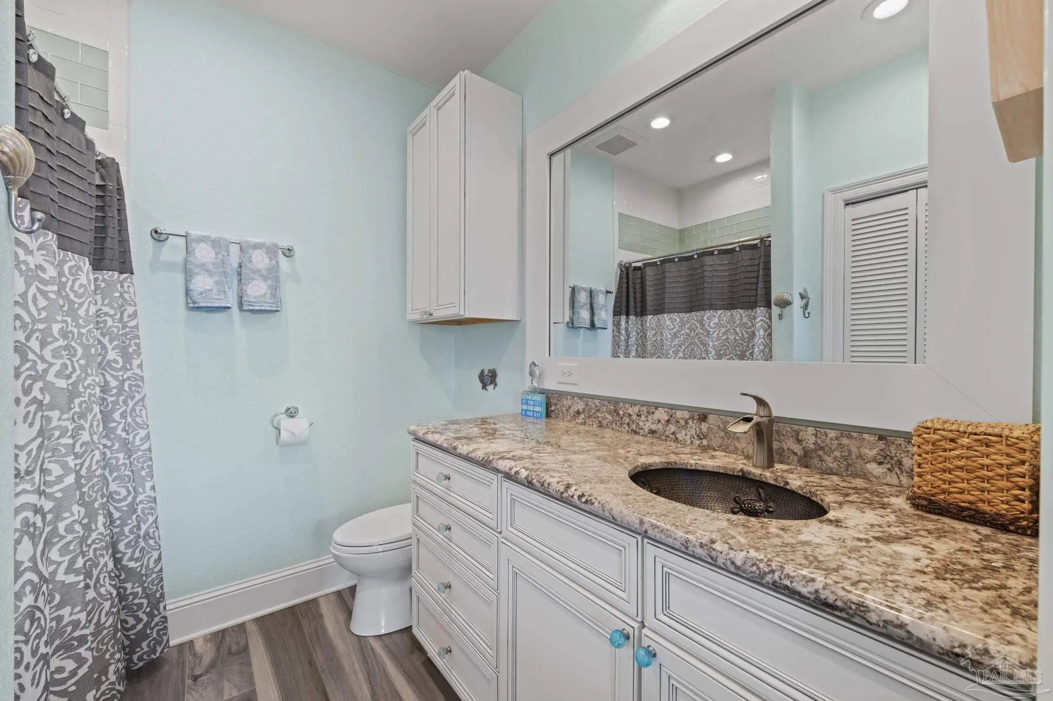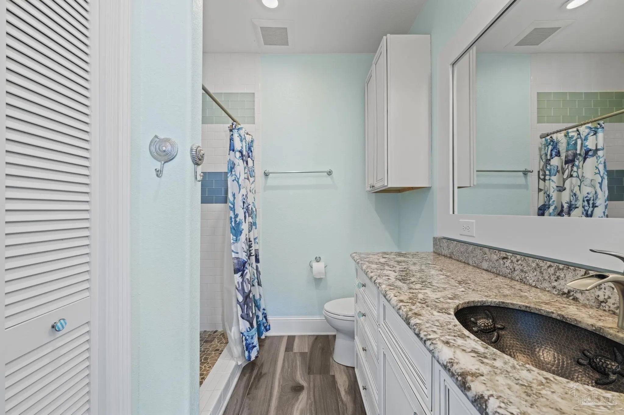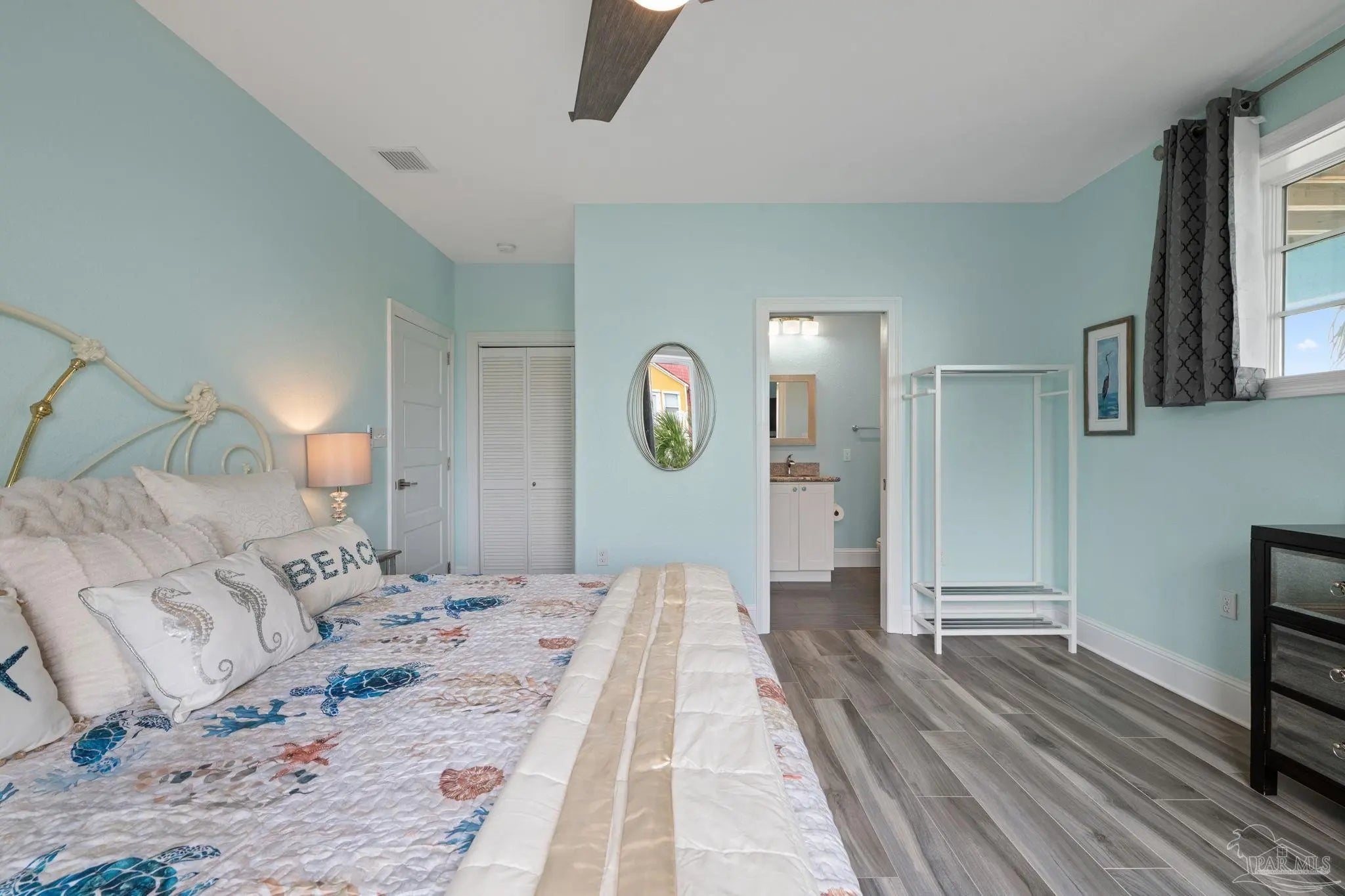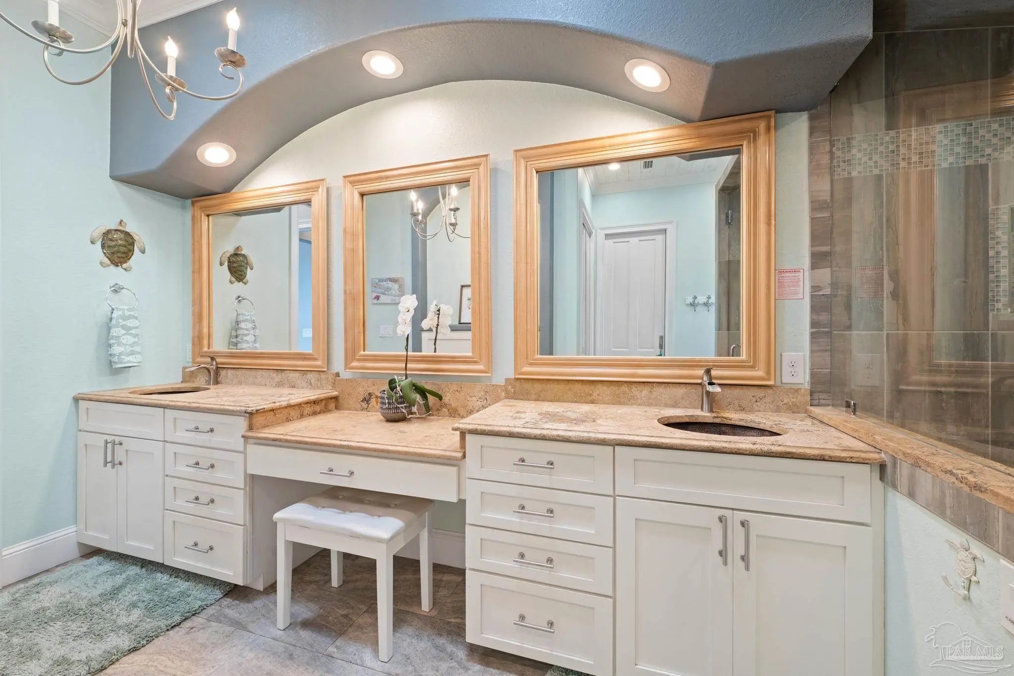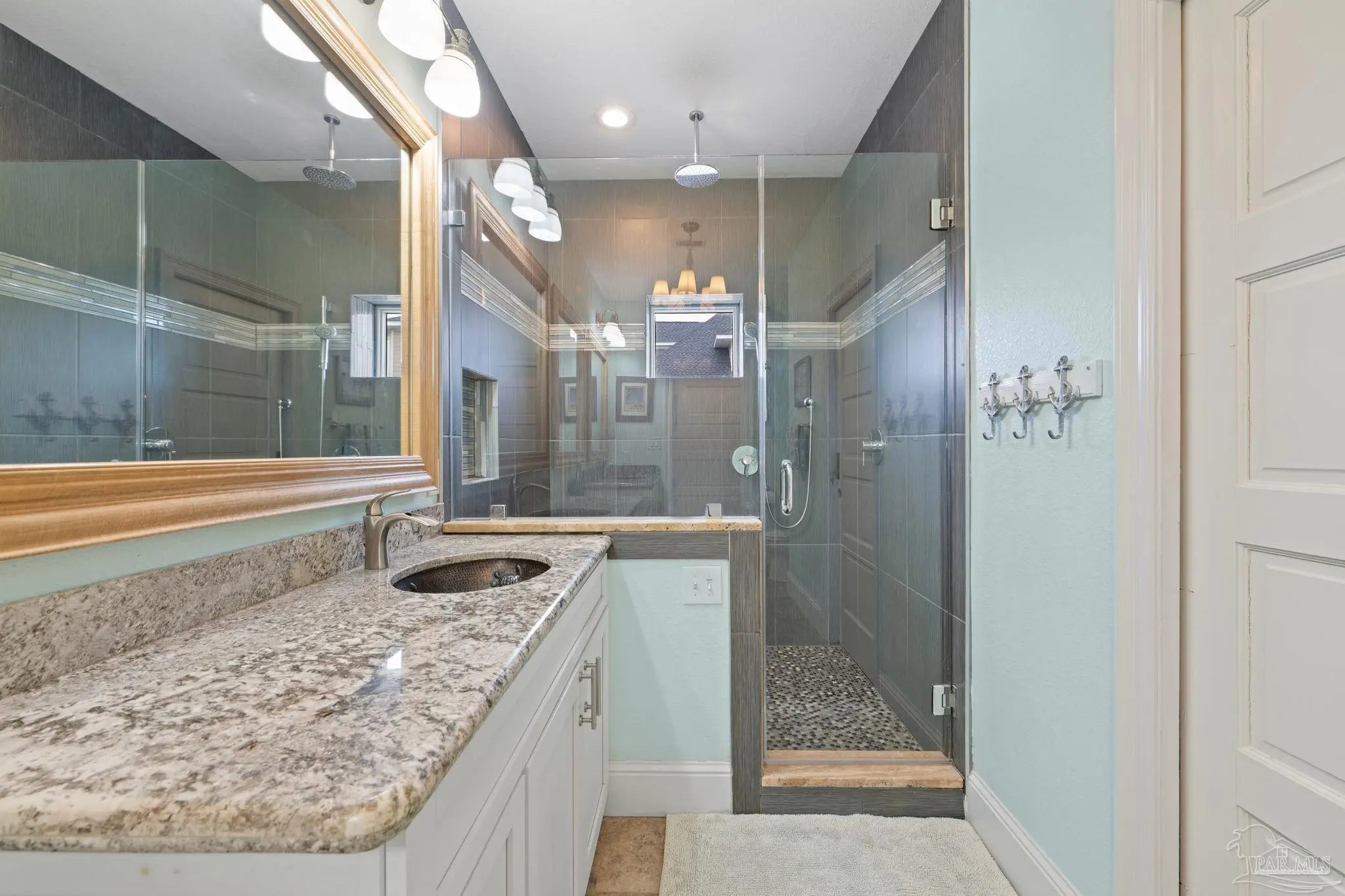 This luxury beach retreat offers breathtaking Gulf views from nearly every room. Located on the top floor, the main living area features soaring tongue-and-groove ceilings, wood-look tile flooring, and expansive windows that flood the space with natural light and frame stunning water vistas. Modern coastal finishes create a clean, sophisticated aesthetic. The chef’s kitchen includes custom cabinetry, mosaic tile backsplash, granite countertops, dual dishwashers, and bar seating with a view. The spacious living room—anchored by a fireplace with granite tile surround—flows onto a covered deck, perfect for alfresco dining or unwinding after a day at the beach. Outdoor spaces include generous balconies that invite relaxation to the sound of the waves, a rooftop deck with panoramic island views, and a hot tub just off the game room deck. The expansive primary suite offers balcony access, a large walk-in closet, and a luxurious en suite bath with double vanities, granite countertops, a Thermasol steam shower, and its own washer/dryer. Four additional en suite bedrooms on the second level provide private, light-filled retreats. A custom bunk area, kitchenette, and two more laundry stations add comfort and flexibility. Constructed with concrete pilings, ICF concrete walls, and ICF concrete floors on the second level, this home offers exceptional strength and energy efficiency. All windows are impact-rated Anderson. The home also features geothermal HVAC, an elevator to all levels, two attics for storage, and garages that accommodate up to five vehicles. A lock-out door can be added at the bottom of the stairs—framed and ready—offering potential for rental income or multigenerational living. At sand level, enjoy a fire pit, grilling area, and a gunite pool with tanning ledge and waterfall. Whether a primary residence, second home, or rental, this property is thoughtfully designed for an exceptional coastal lifestyle.