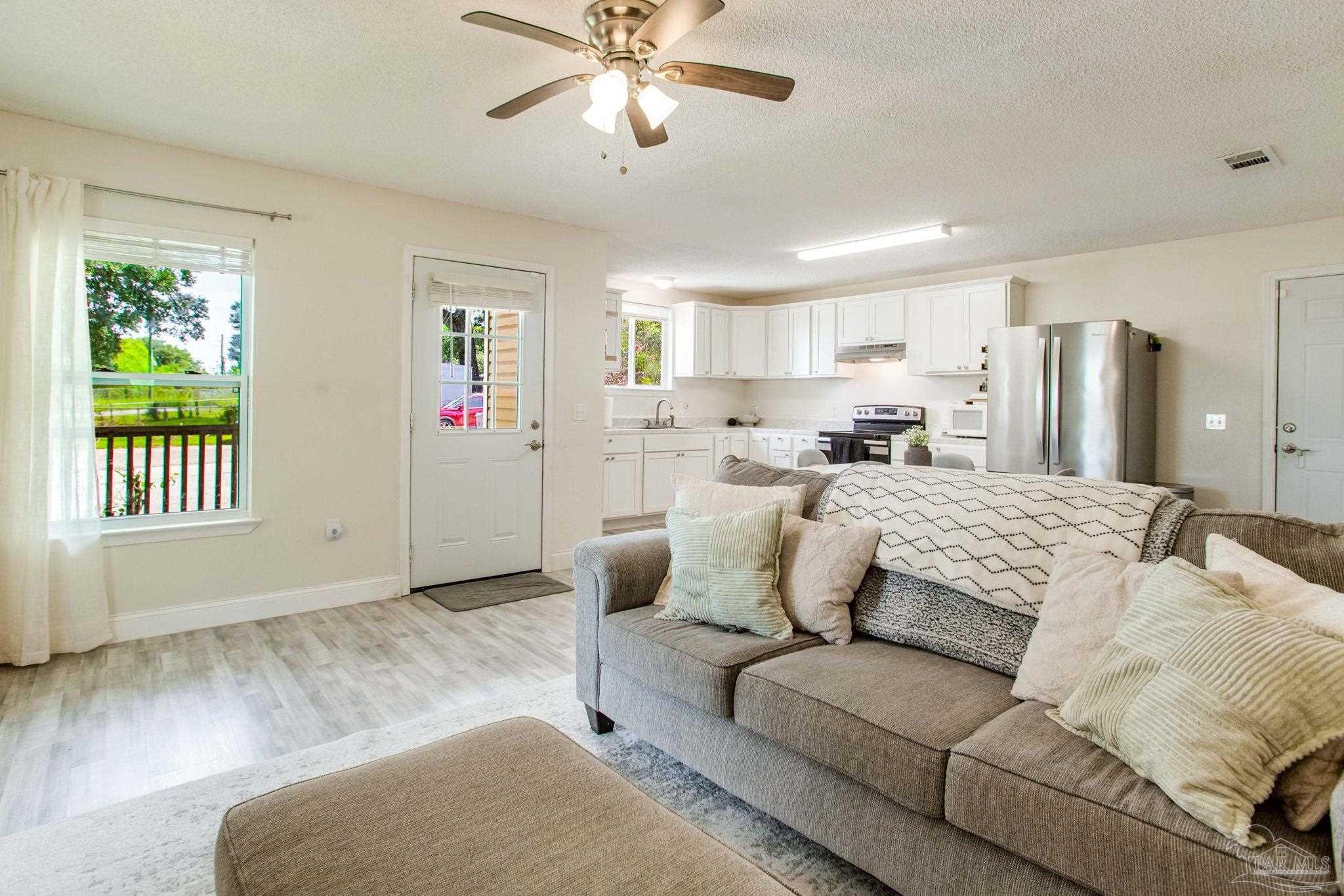 Don’t miss this rare chance to own a move-in-ready 3-bedroom, 2-bath cottage set on a generous corner lot—just moments from Downtown Pensacola, Cervantes Street, Raymond Riddles Park, and so much more. Step inside to a bright, open floor plan with no carpet anywhere and stylish, low-maintenance vinyl plank flooring throughout. The spacious kitchen and dining area offer abundant cabinet and counter space—ideal for everyday living or hosting friends—and flow seamlessly into the main living room. You’ll appreciate the convenience of a dedicated laundry closet just off the kitchen, along with recent updates including newer paint, newer interior doors, and modern touches throughout. Outside, the privacy-fenced backyard is ready for whatever you envision—summer BBQs, play space, a garden, or quiet evenings under the sky. This charming home delivers comfort, convenience, and value all in one package—and it won’t last long. Schedule your private showing today!