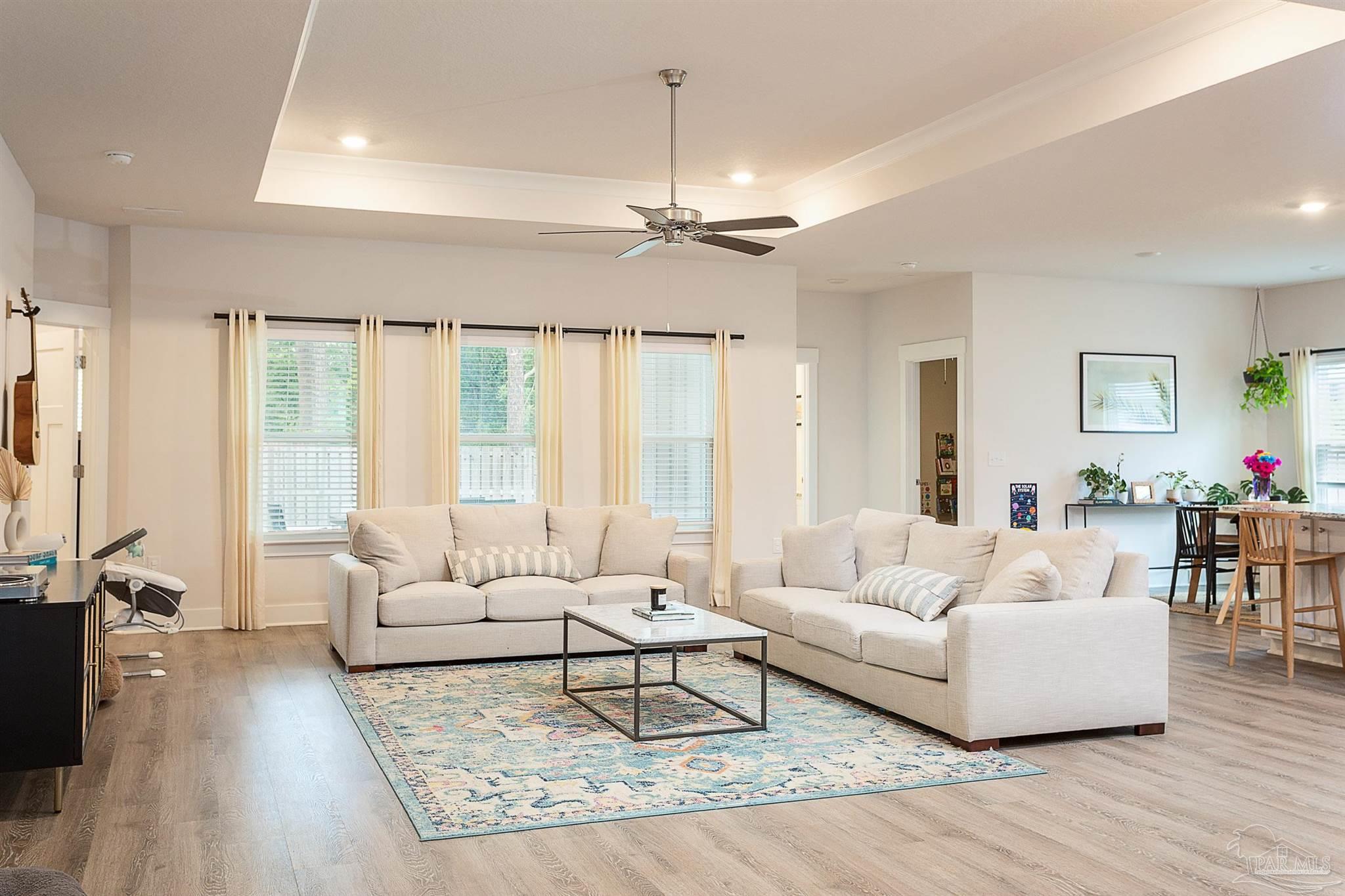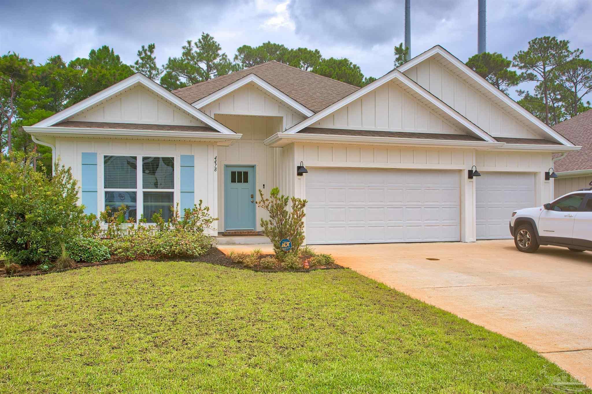 4478 Water Leaf Cove is a 4 bedroom, 3 bath home with a living space of 2,252 offering the appeal of newer construction with modern design, quality finishes, and smart-home convenience. Open-concept design: Seamlessly connects the kitchen, breakfast nook, and living/dining areas—perfect for entertaining- Gourmet kitchen: Granite countertops, stainless appliances, center island with breakfast bar, and generous pantry. Nestled in a small cul-de-sac street yet close to amenities, top-rated schools, and beautiful Gulf beaches, it’s a move-in-ready dream—especially with an attractive 3.25% VA loan option for a qualified buyer. Positioned in East Gulf Breeze (Midway), easy access to beaches, Pensacola, Navarre, NAS, and Hurlburt Air Force Base -Highly-rated schools nearby: Oriole Beach Elementary with the approximate distances of 3.4mi, Woodlawn Beach Middle 1.7mi Gulf Breeze High 8 mi. The exterior provides covered patio, approx. 12'5"×15' overlooking a fenced yard with custom patio pavers, offering a relaxing outdoor space. Important additions include gutters, hurricane window fabric, irrigation and an upgraded exterior sitting area- a must see!