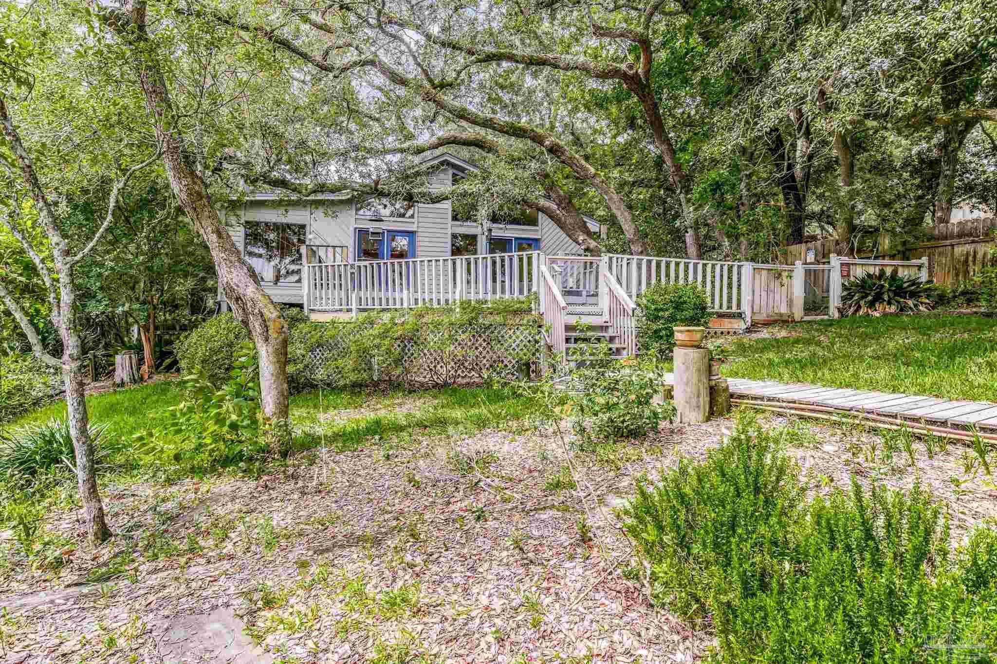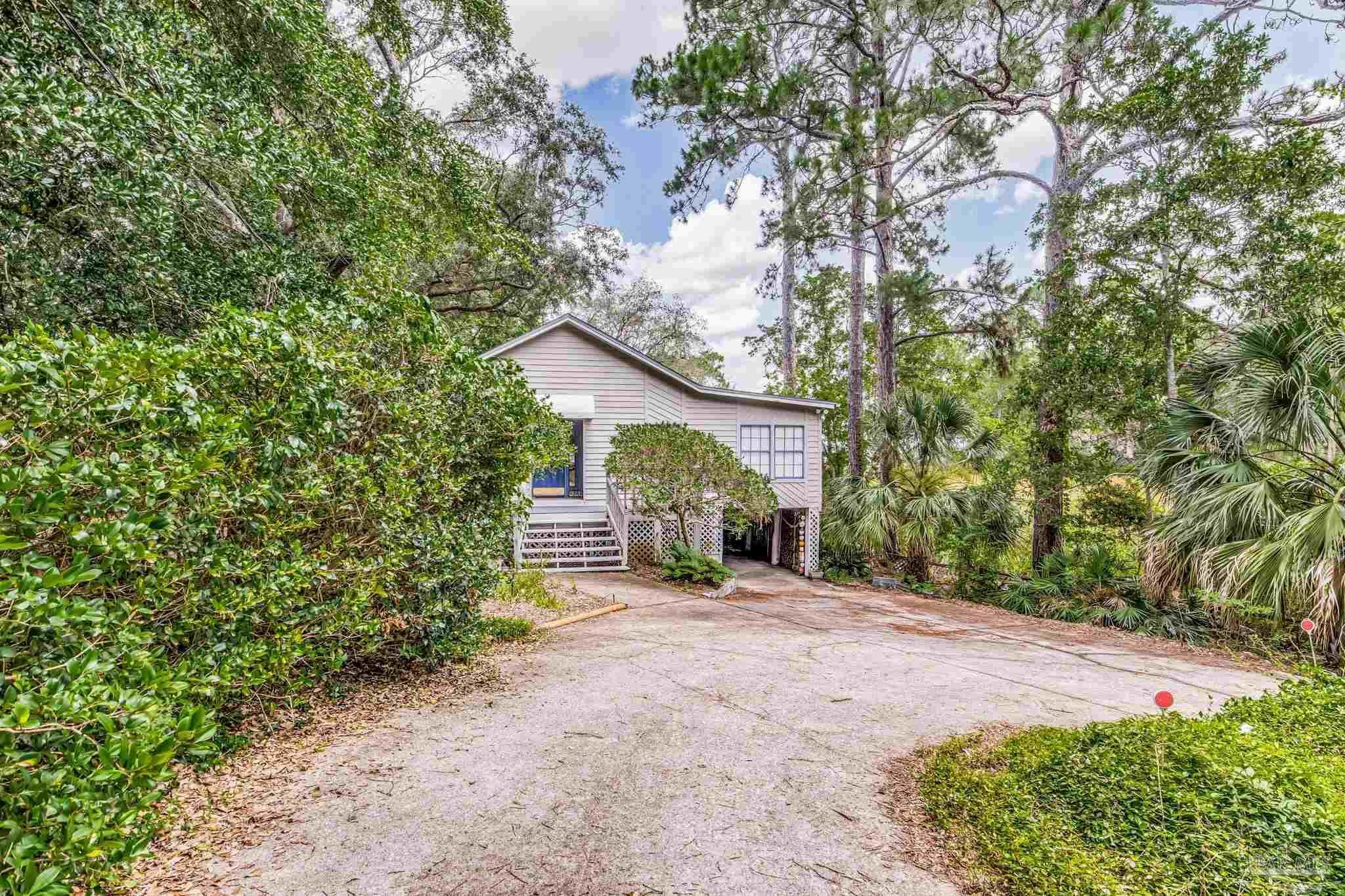 Nature Lover’s Dream! With over 200 feet overlooking pristine East Bay, this charming, character-filled cottage offers breathtaking views, majestic live oaks, sawgrass, a small creek, and all the incredible wildlife you could ask for! Nestled on the edge of Beaver Pond Marsh along the peaceful, shaded Hickory Shores Blvd, this 3-bedroom, 2-bath home features a desirable split floor plan, cathedral ceilings, and an abundance of large windows that flood the space with natural light and showcase stunning waterfront scenes. The updated kitchen boasts granite countertops, a custom tiled backsplash, and stainless steel appliances. Enjoy meals with a view from the formal dining area or the separate breakfast nook, both overlooking the bay and marsh. The primary suite offers a tiled walk-in shower, a separate make-up vanity, and a spacious walk-in closet. Two additional guest bedrooms are generously sized, with a full guest bath that includes a deep walk-in closet plus a linen closet for extra storage. Step out from the living and dining areas onto a large composite deck—perfect for taking in the views and bay breezes. The private pier is ready for your fishing poles, cast nets, and camera, with dolphin, redfish, mullet, trout, and crabs in abundance. Bird enthusiasts will love watching osprey, pelicans, bald eagles, herons, and the spectacular sunsets. Additional highlights include a one-car carport and a large storage area underneath, ideal for yard tools, bicycles, paddleboards, and kayaks. Major updates include a brand-new roof (June 2025), HVAC (2020), and water heater (2023). Make your appointment to see this jewel today!