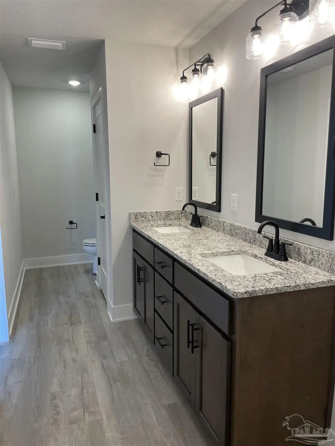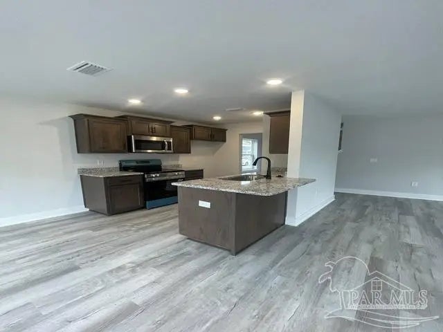 The 1648 square foot home has a large living room downstairs as well as a 1/2 bath in the hallway as you enter from the garage. The kitchen has shaker style solid wood cabinets, granite countertops and stainless steel appliances. All 3 bedrooms are upstairs with the master bedroom on one side that contains 2 walk in closets. The master bath has a double vanity. Bedrooms 2 and 3 split the opposite side of the 2nd floor and ample size also containing closets with plenty of space. This subdivision is located off of S. Fairfield Dr. Only 10 mins from NAS Pensacola front gate, 10 mins from Corry Station and 20 mins from downtown Pensacola. Pictures May Not Be A True Representation Of Home.