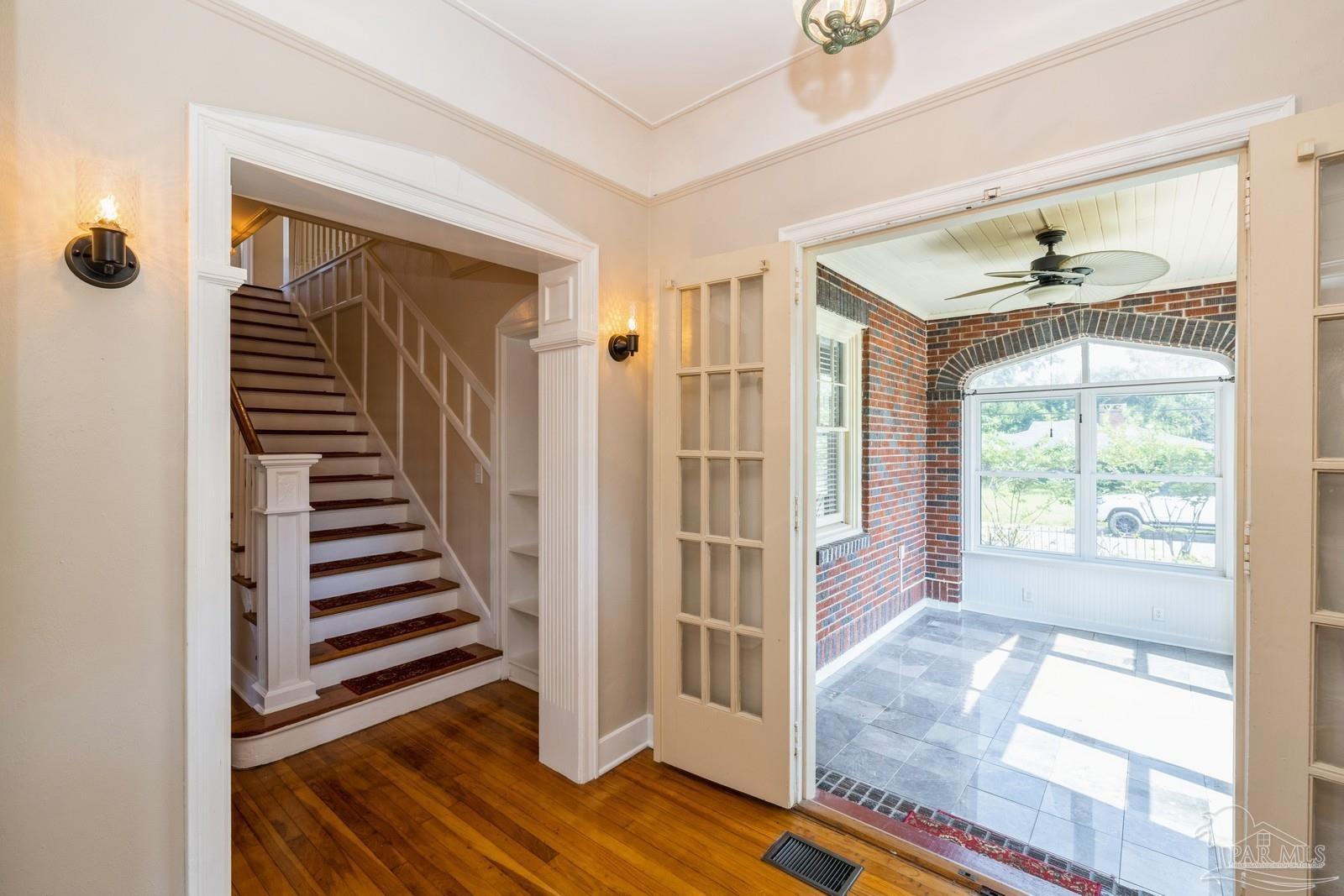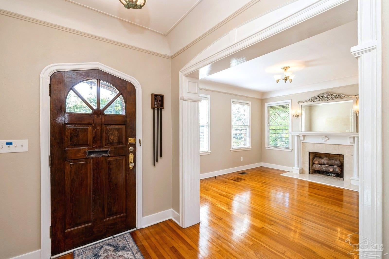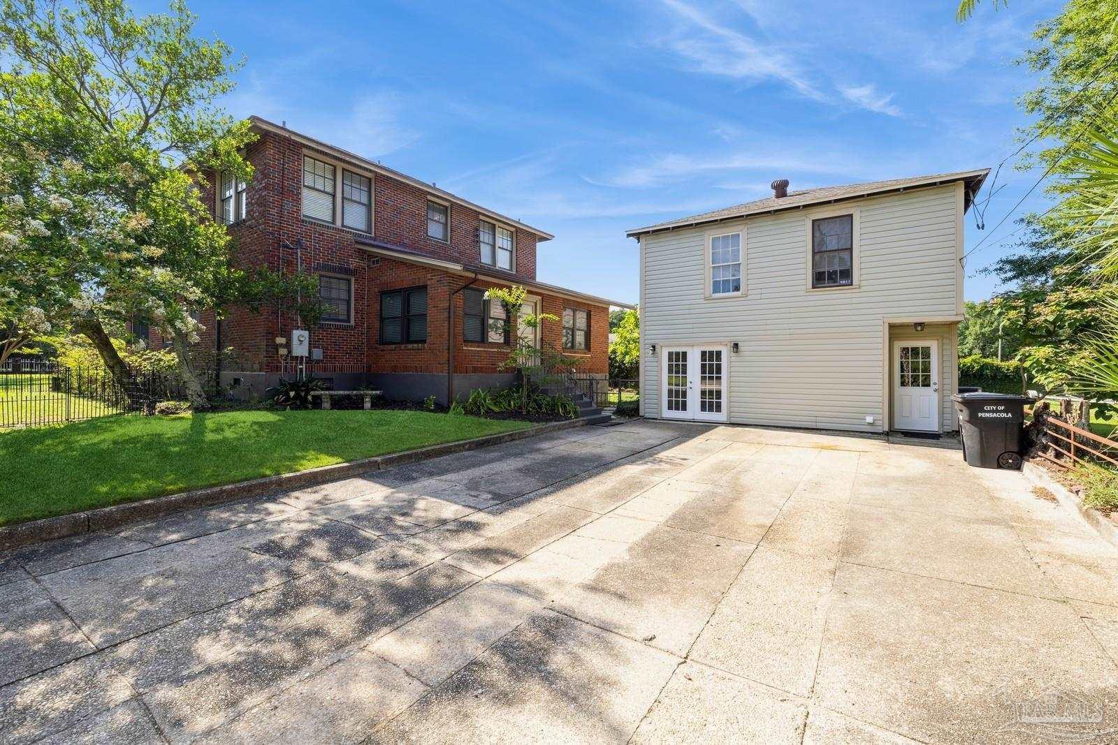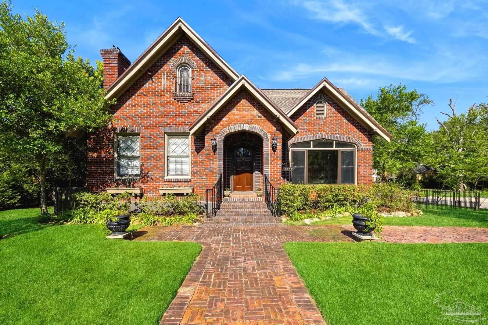 This charming 4BD/3BA Tudor-style home, w/garage apartment, blends classic character with modern updates—just outside the historical district restrictions. Enjoy original hardwood floors, an updated kitchen, large dining room, custom millwork, two fireplaces, two Florida rooms, two primary suites, high ceilings, and a finished basement. The first floor primary bedroom with en suite bath offers privacy and convenience. The second floor offers a primary bedroom with an updated en suite bath, two additional bedrooms and bath. A detached 3BD/1BA garage apartment w/separate address (201 W Moreno) & electric, provides rental income or guest quarters. Recent upgrades include new roof (main 2025, apt 2021), electric, HVAC, and water heaters. Finished workshop/garage and generous storage throughout complete the package!