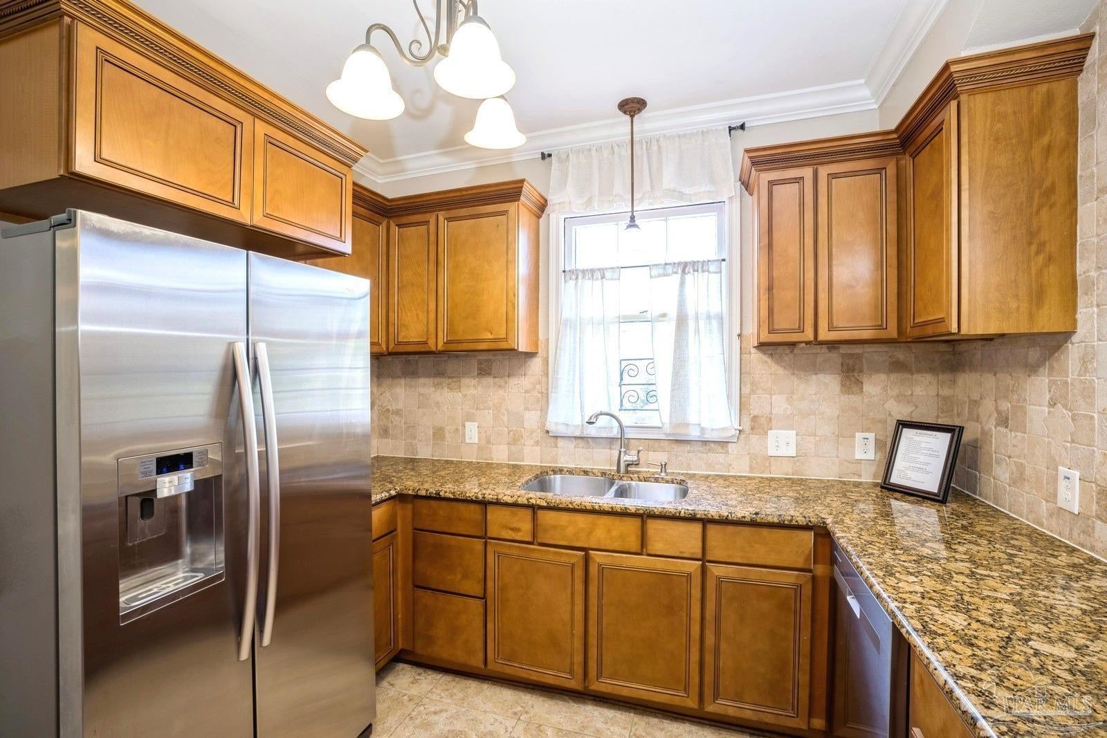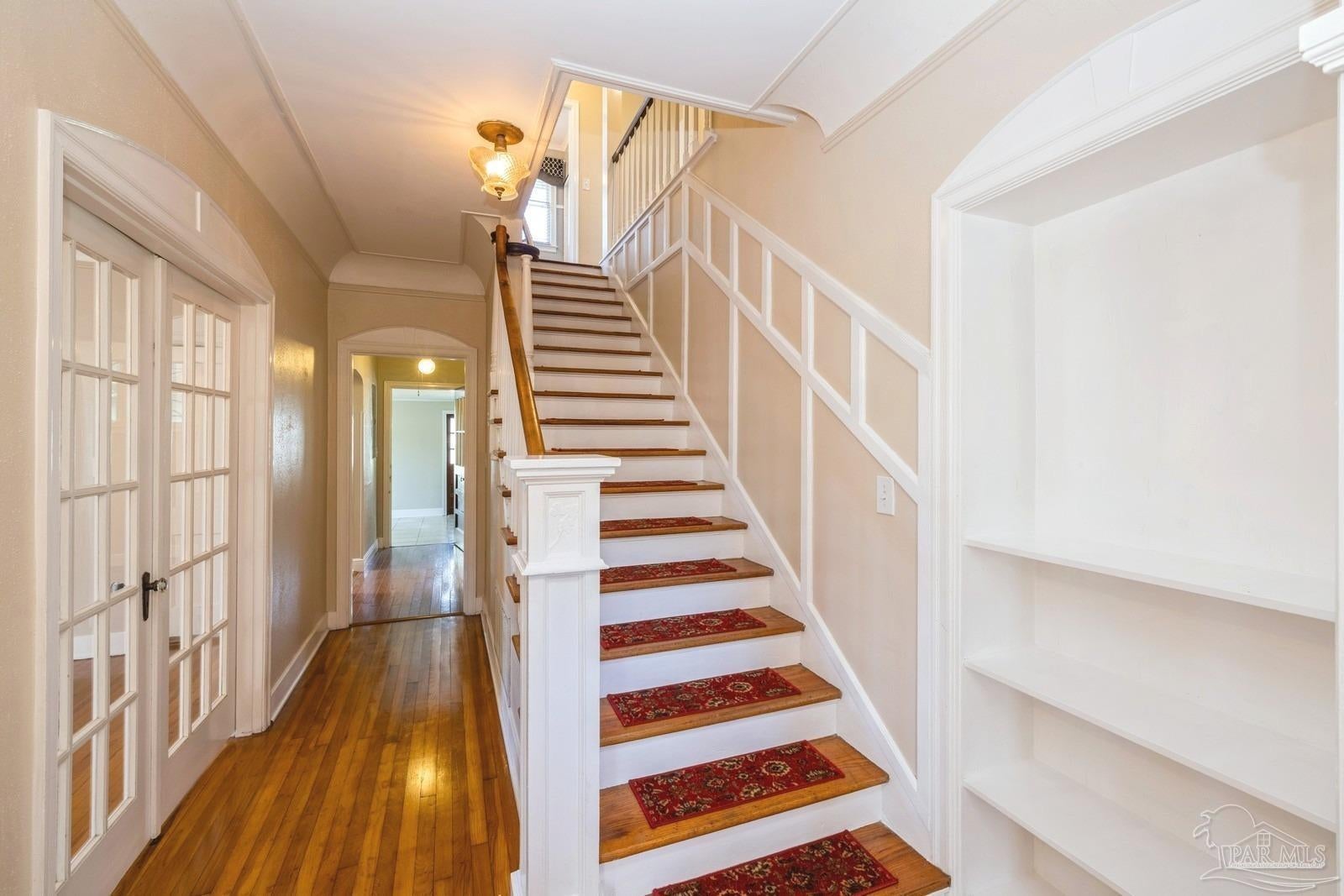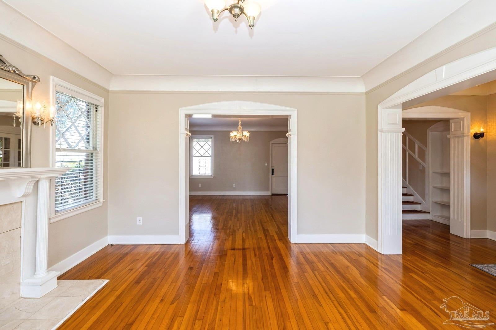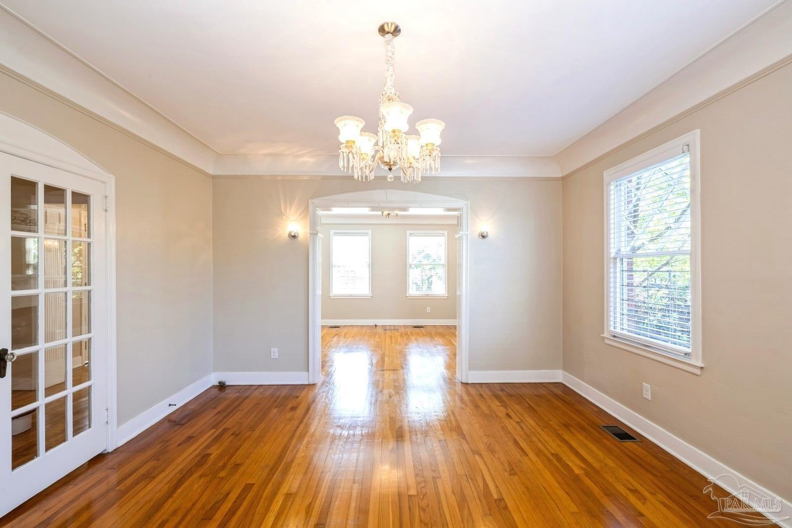 This charming 4BD/3BA Tudor-style home, w/garage apartment, blends classic character with modern updates—just outside the historical district restrictions. Enjoy original hardwood floors, an updated kitchen, large dining room, custom millwork, two fireplaces, two Florida rooms, two primary suites, high ceilings, and a finished basement. The first floor primary bedroom with en suite bath offers privacy and convenience. The second floor offers a primary bedroom with an updated en suite bath, two additional bedrooms and bath. A detached 3BD/1BA garage apartment w/separate address (201 W Moreno) & electric, provides rental income or guest quarters. Recent upgrades include new roof (main 2025, apt 2021), electric, HVAC, and water heaters. Finished workshop/garage and generous storage throughout complete the package!