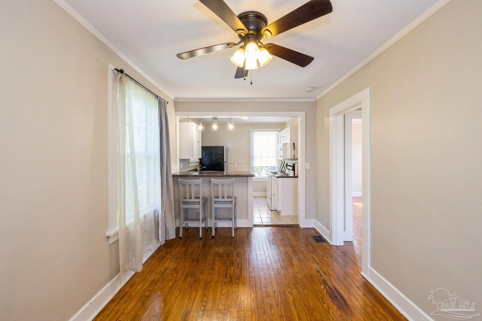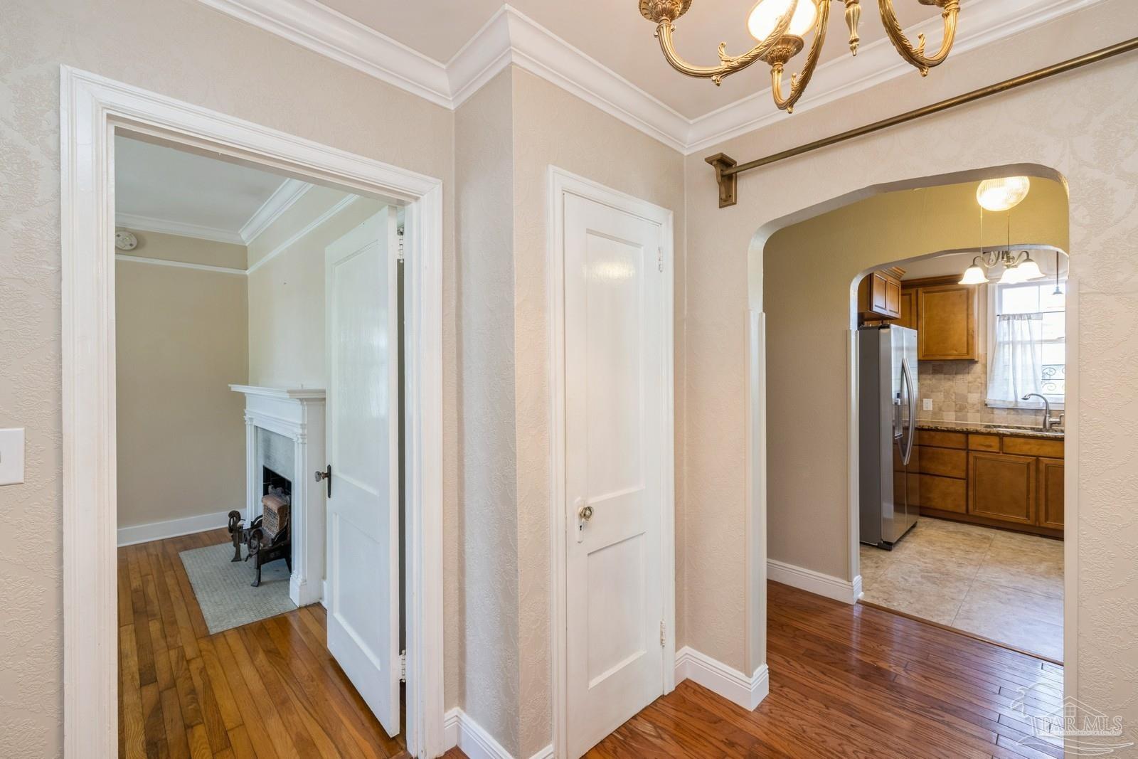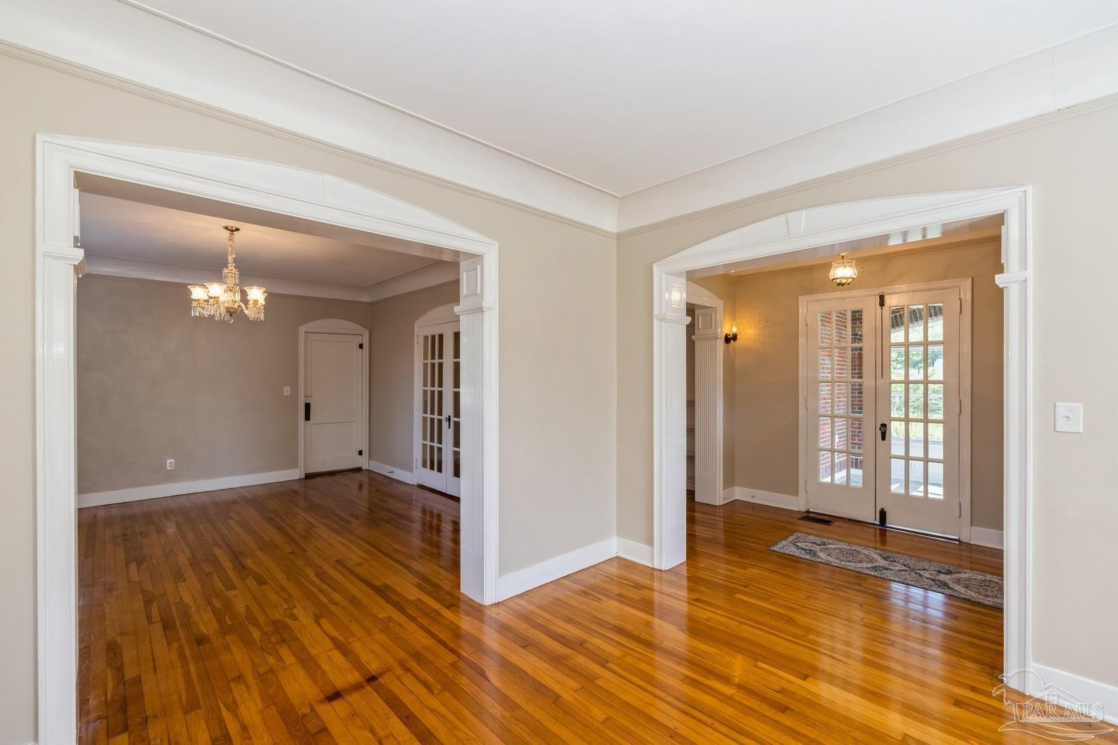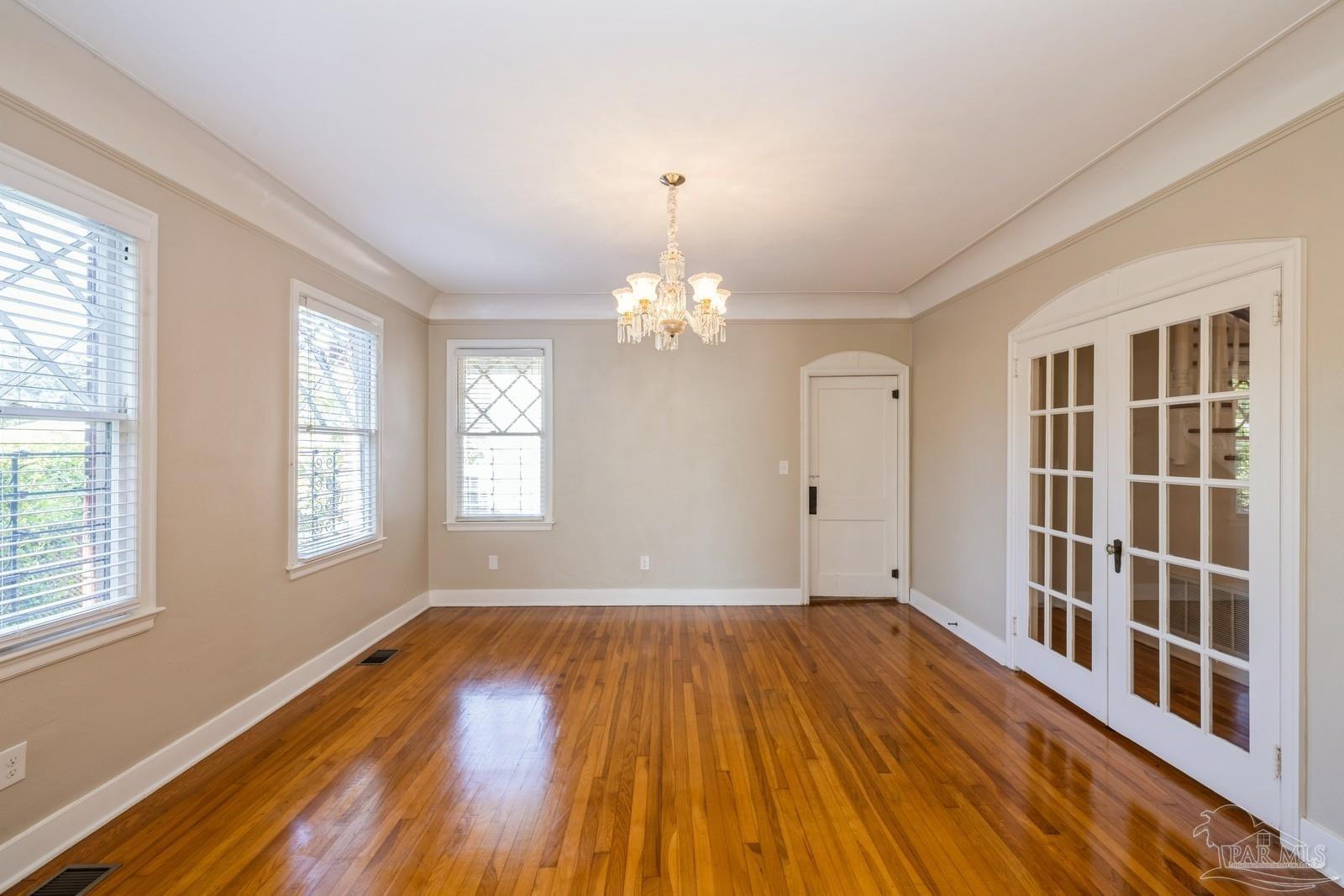 This charming 4BD/3BA Tudor-style home, w/garage apartment, blends classic character with modern updates—just outside the historical district restrictions. Enjoy original hardwood floors, an updated kitchen, large dining room, custom millwork, two fireplaces, two Florida rooms, two primary suites, high ceilings, and a finished basement. The first floor primary bedroom with en suite bath offers privacy and convenience. The second floor offers a primary bedroom with an updated en suite bath, two additional bedrooms and bath. A detached 3BD/1BA garage apartment w/separate address (201 W Moreno) & electric, provides rental income or guest quarters. Recent upgrades include new roof (main 2025, apt 2021), electric, HVAC, and water heaters. Finished workshop/garage and generous storage throughout complete the package!