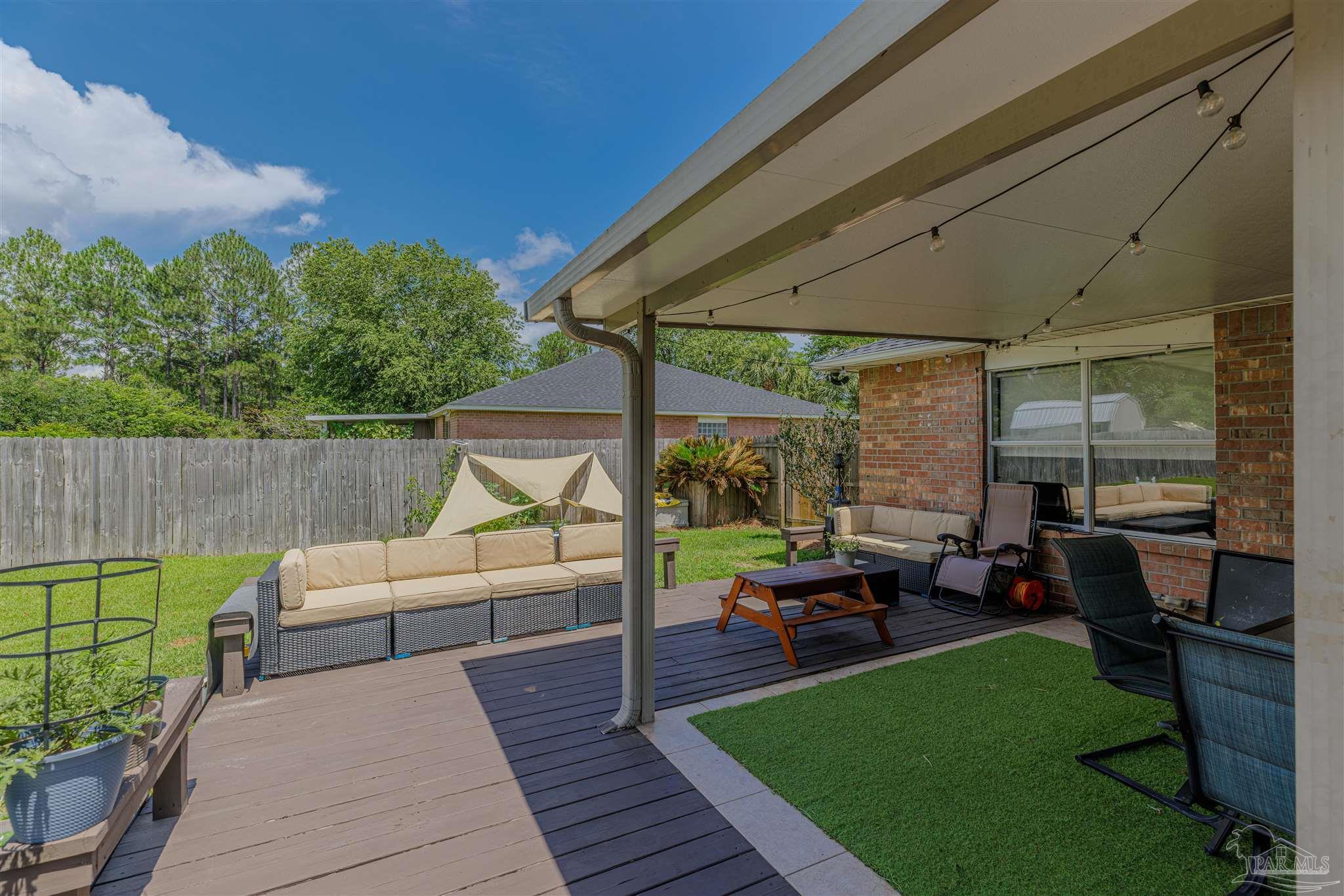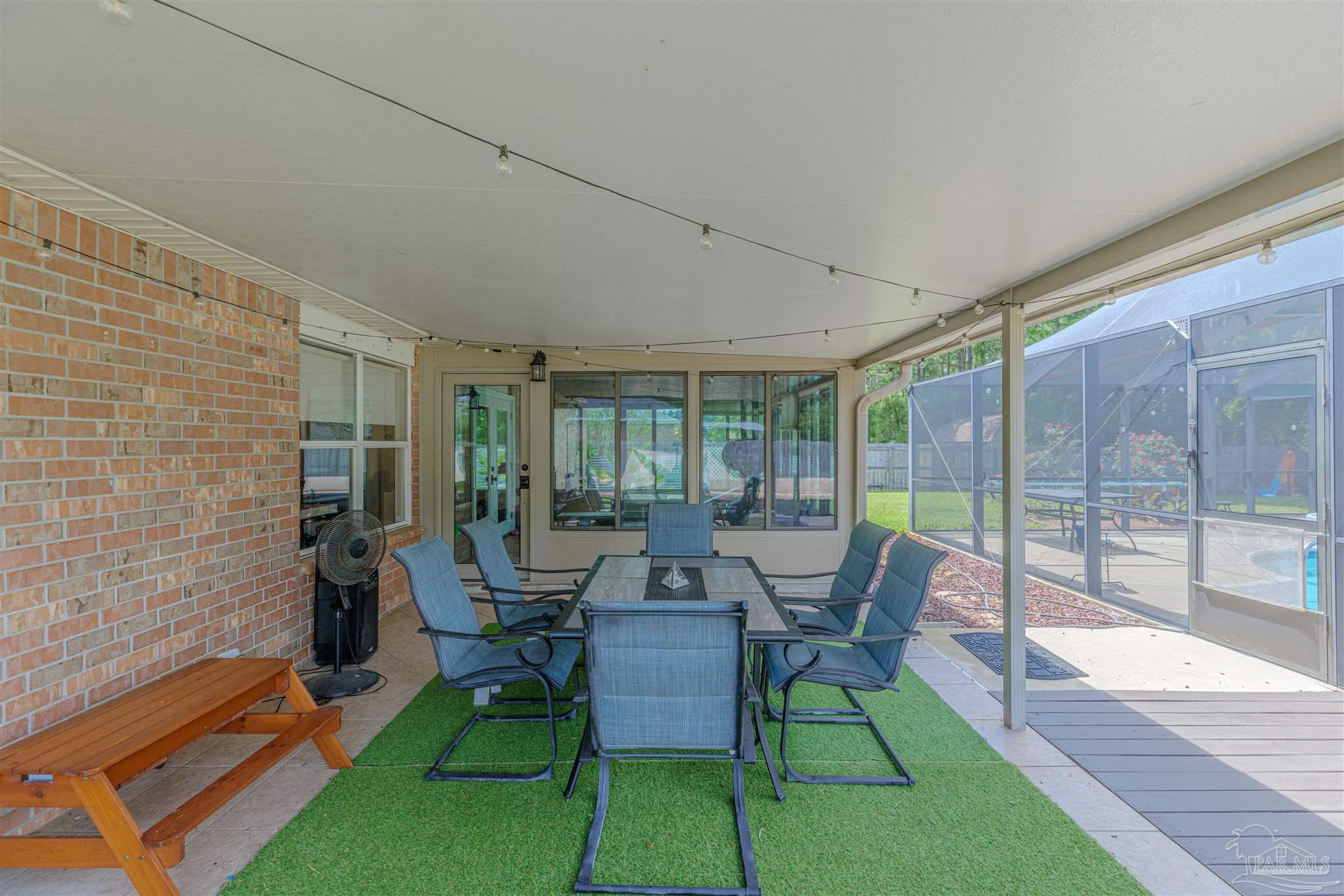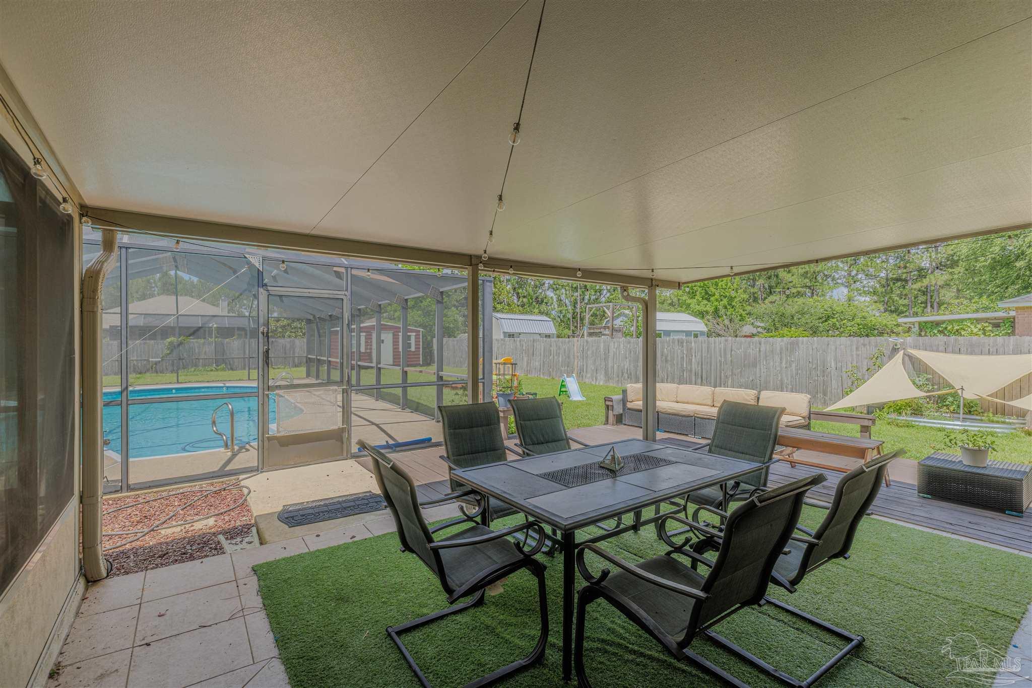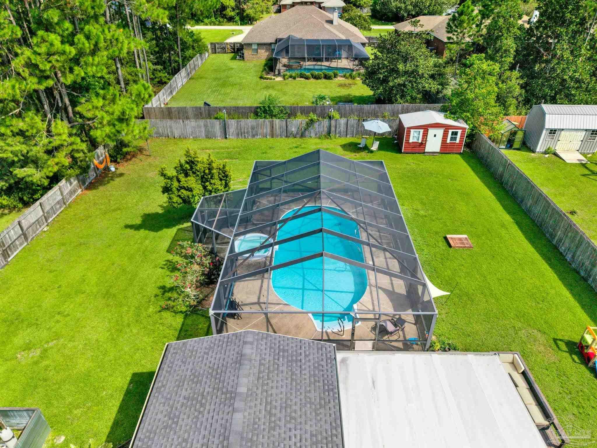 Kick your feet up and watch the family play in your private, screened-in, in-ground pool in this move-in ready home! After school care, tennis courts, boat dock, outdoor track, indoor/outdoor pool & more at the included HBTS RecreationalThis 4-bedroom, 3-bath beauty is situated on a generous half-acre fenced lot, which offers privacy but quick access to the military bases, top-rated schools, and sandy white beaches of the Gulf of Mexico. This home boasts charming features, such as luxury vinyl plank, a foodie's dream kitchen with beautiful white quartz countertops, and a beautiful primary suite with his and her vanities, dual walk-in closets, and a separate soaking tub! This home offers a nearly new roof (2022), hot water heater (2022), new pool pump and filter, new recess lighting in the living room, new pool cage, smart home upgrade, new sprinkler system, and more! As part of the Holley by the Sea community, you'll have access to resort-style amenities including three swimming pools, a fitness center, tennis courts, waterfront access, and more! Don’t miss your chance to see this gem—schedule your private showing today!