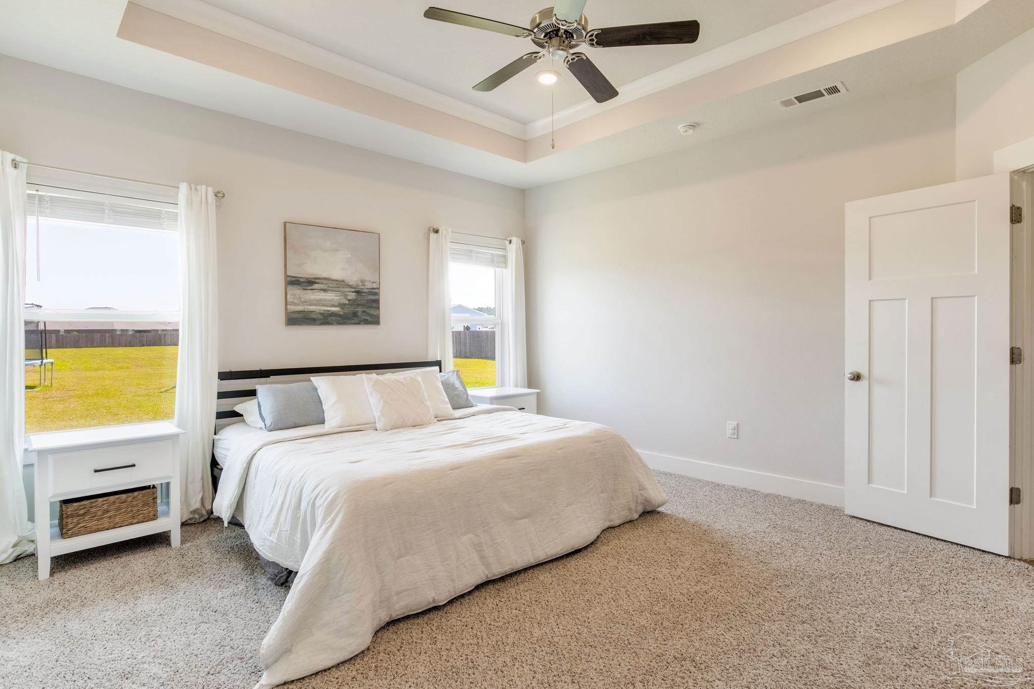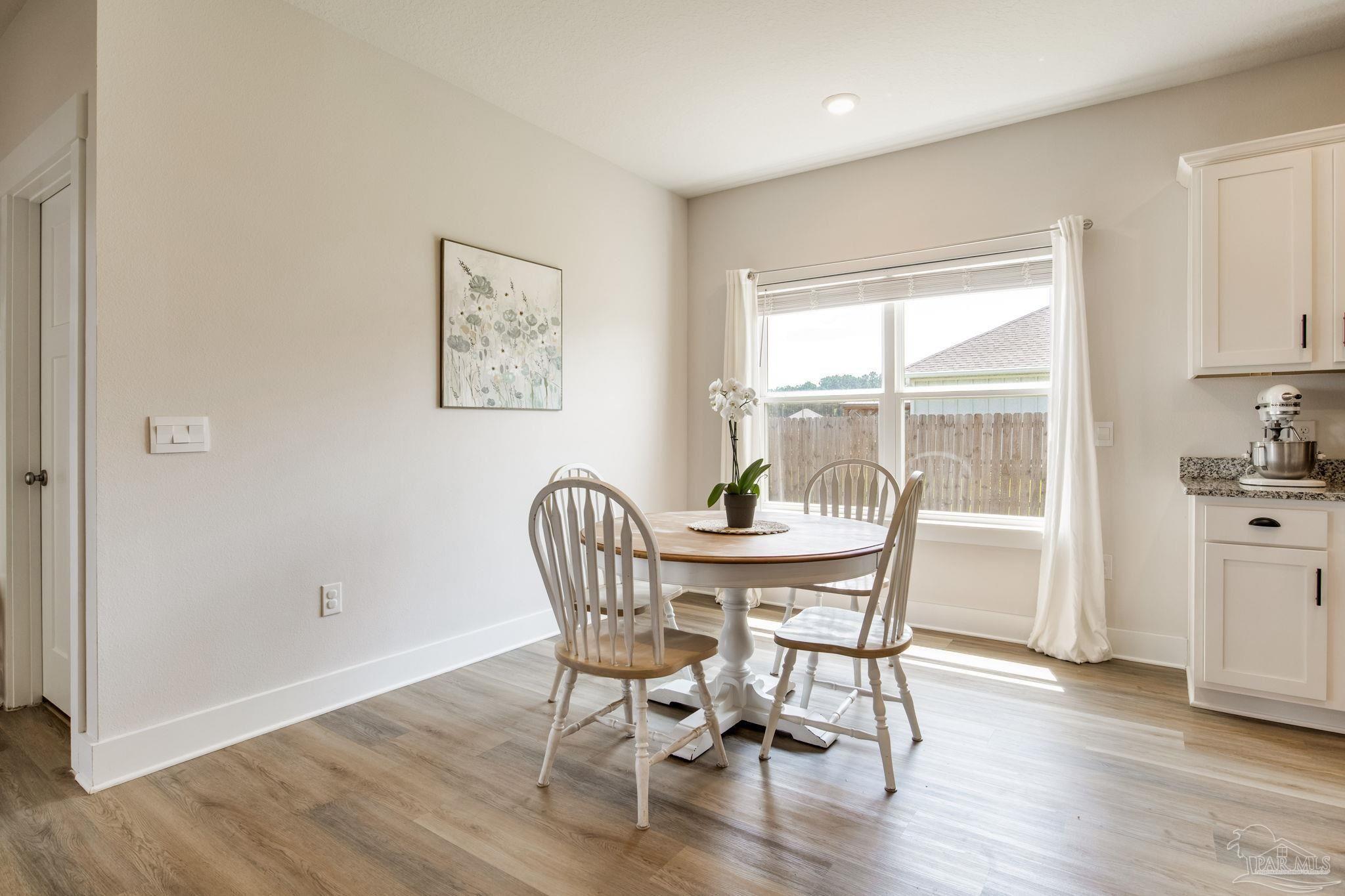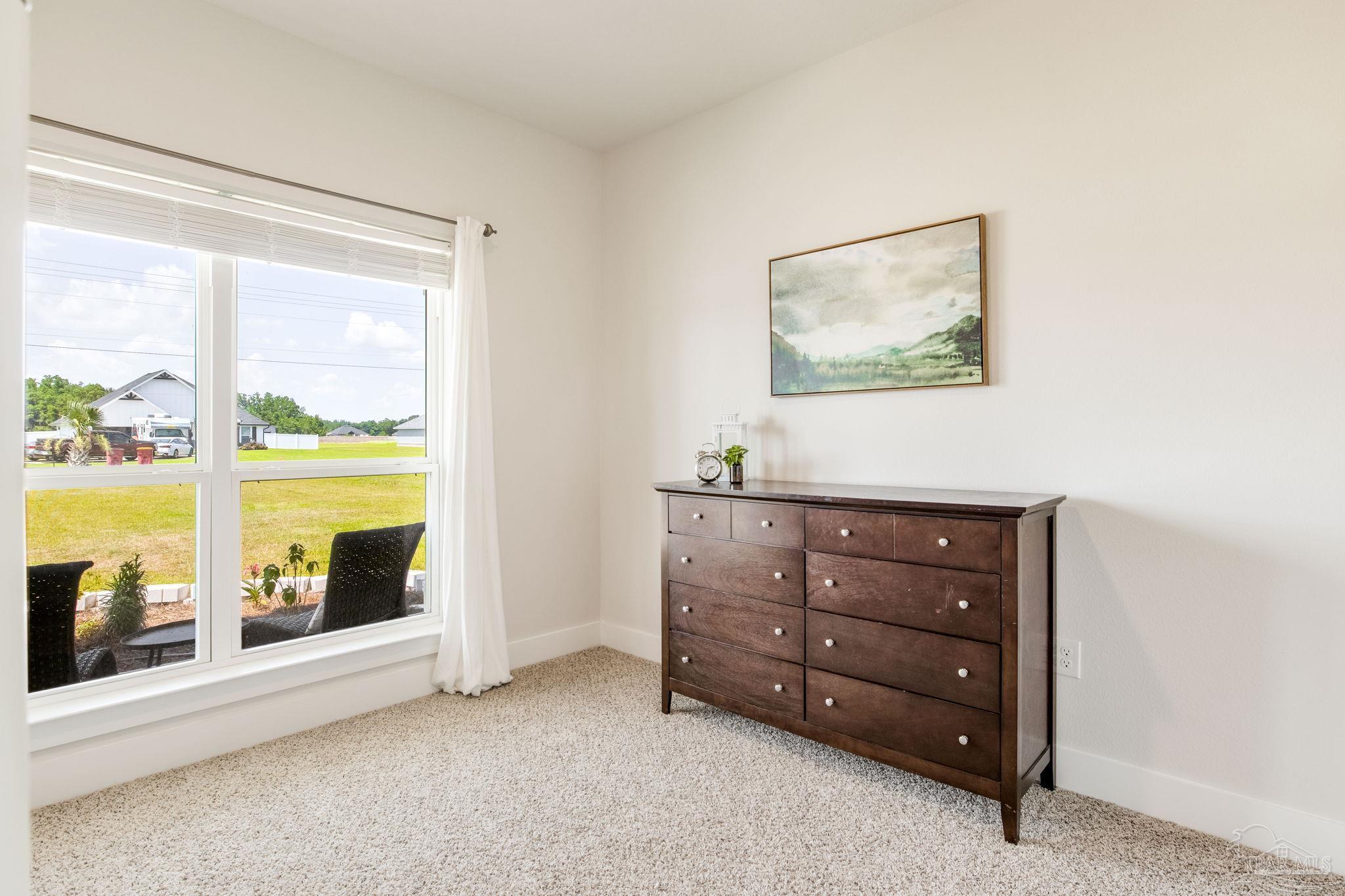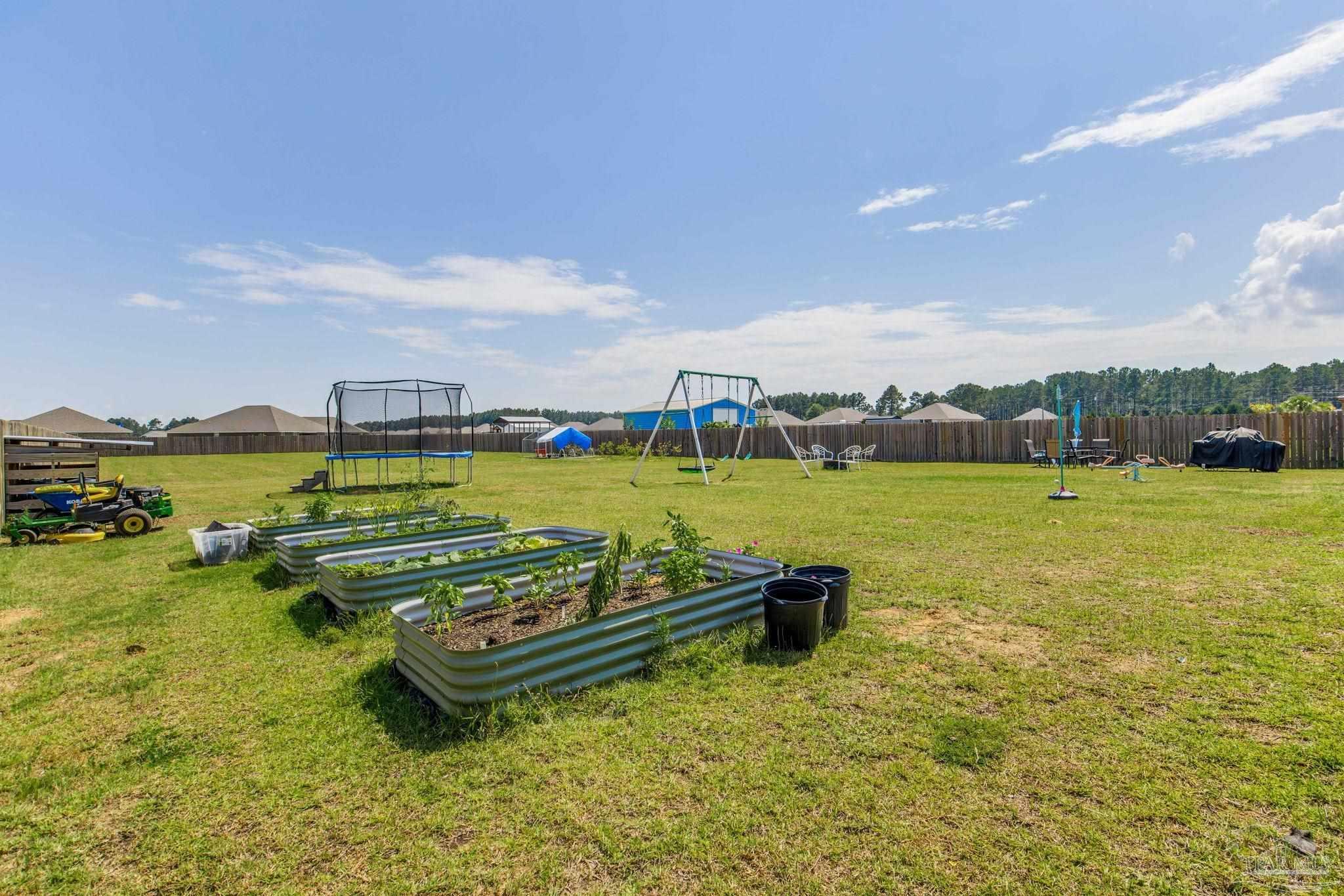 Spilt Layout 4-Bed, 3-Bath Home Set on a Deep Lot. Move-in ready home with over 2,300 square feet of thoughtfully designed living space awaits you in the heart of Pace, Florida. Featuring 4 bedrooms and 3 full bathrooms, this single story home provides flexible options for both a formal dining room and a cozy breakfast nook. Your oversized three-car garage is ideal for storing vehicles, tools, water toys, or even setting up your own workshop. Outside, the covered patio overlooks a fully fenced acre lot that is ready for a custom pool, fire pit or play area. Currently there are blueberry bushes, elderberry bushes and beauty berry bushes in raised beds. On the interior you’ll notice generously sized closets, millwork accents and newly added built-in bench seating. Special features include a walk-in pantry, upgraded laundry room cabinetry, security system and convenient service road. This home sits in a neighborhood that is anything but cookie cutter. Pace has many new and exciting developments in the works with highly rated schools. We welcome you to tour this home that combines space, comfort, and community.