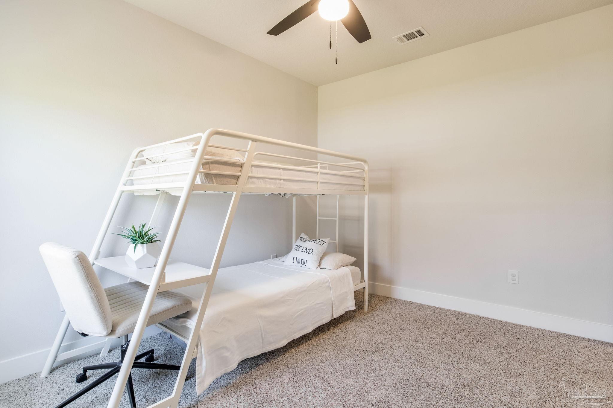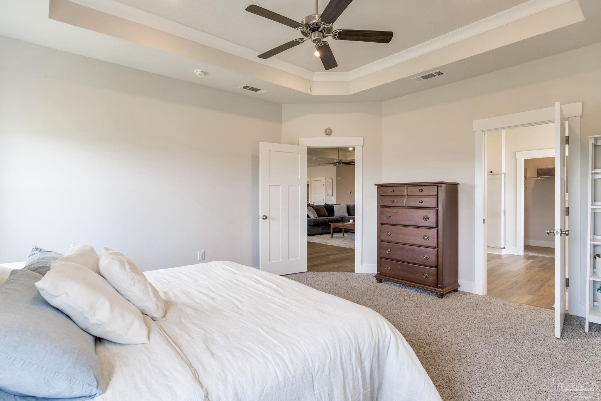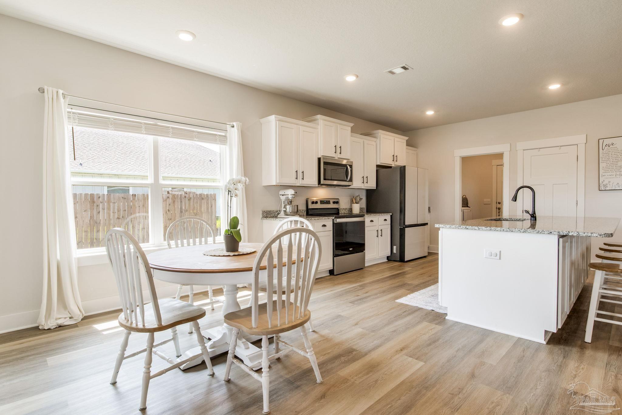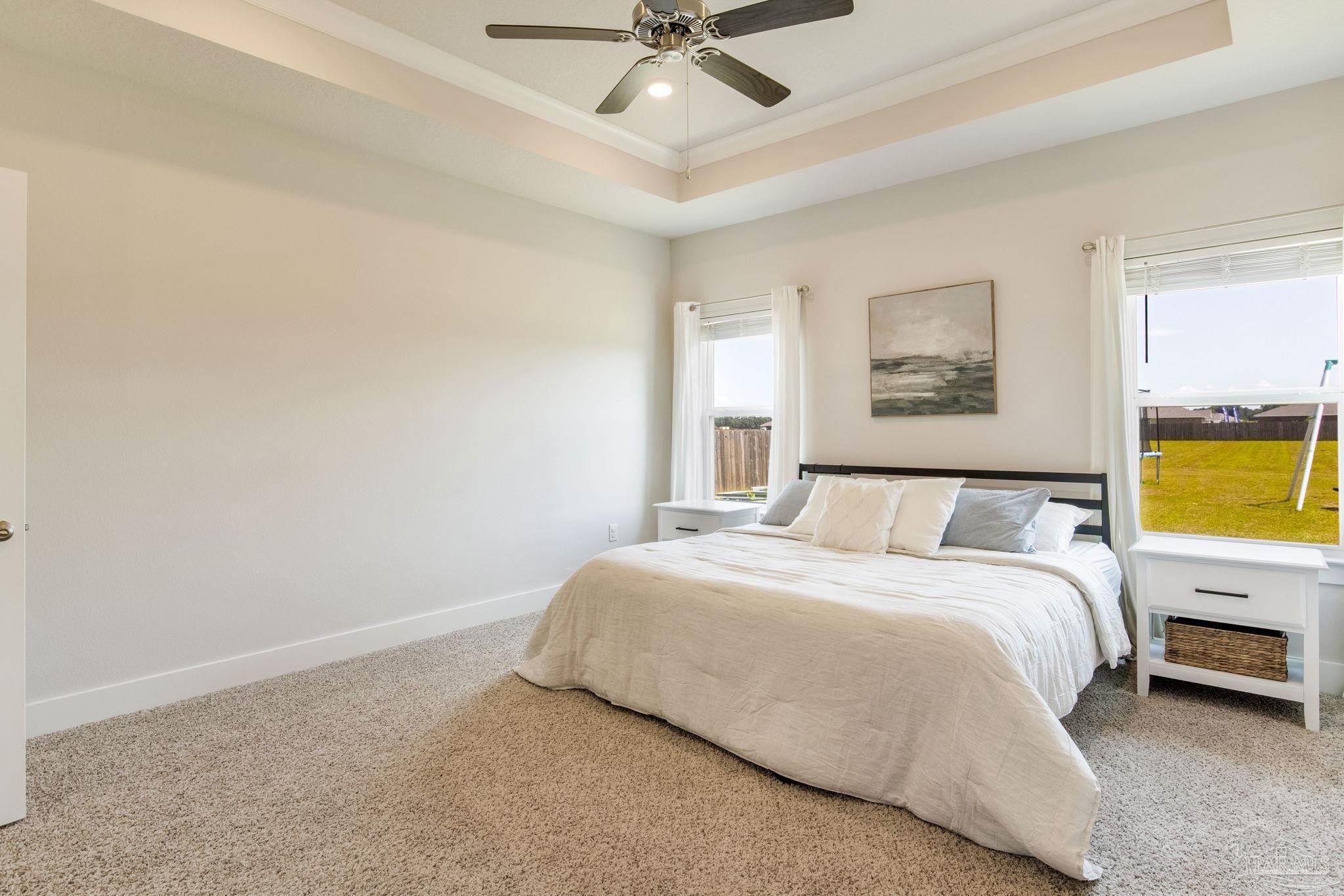 Spilt Layout 4-Bed, 3-Bath Home Set on a Deep Lot. Move-in ready home with over 2,300 square feet of thoughtfully designed living space awaits you in the heart of Pace, Florida. Featuring 4 bedrooms and 3 full bathrooms, this single story home provides flexible options for both a formal dining room and a cozy breakfast nook. Your oversized three-car garage is ideal for storing vehicles, tools, water toys, or even setting up your own workshop. Outside, the covered patio overlooks a fully fenced acre lot that is ready for a custom pool, fire pit or play area. Currently there are blueberry bushes, elderberry bushes and beauty berry bushes in raised beds. On the interior you’ll notice generously sized closets, millwork accents and newly added built-in bench seating. Special features include a walk-in pantry, upgraded laundry room cabinetry, security system and convenient service road. This home sits in a neighborhood that is anything but cookie cutter. Pace has many new and exciting developments in the works with highly rated schools. We welcome you to tour this home that combines space, comfort, and community.