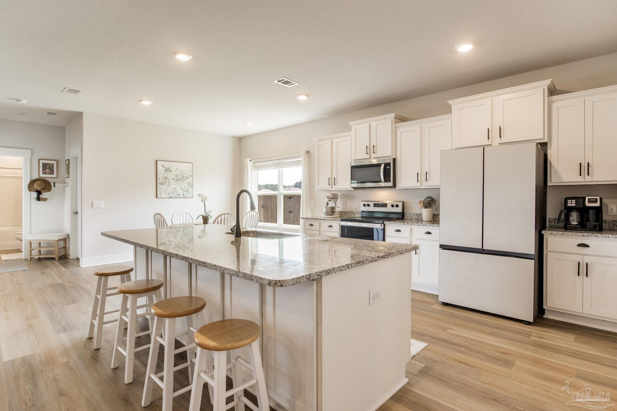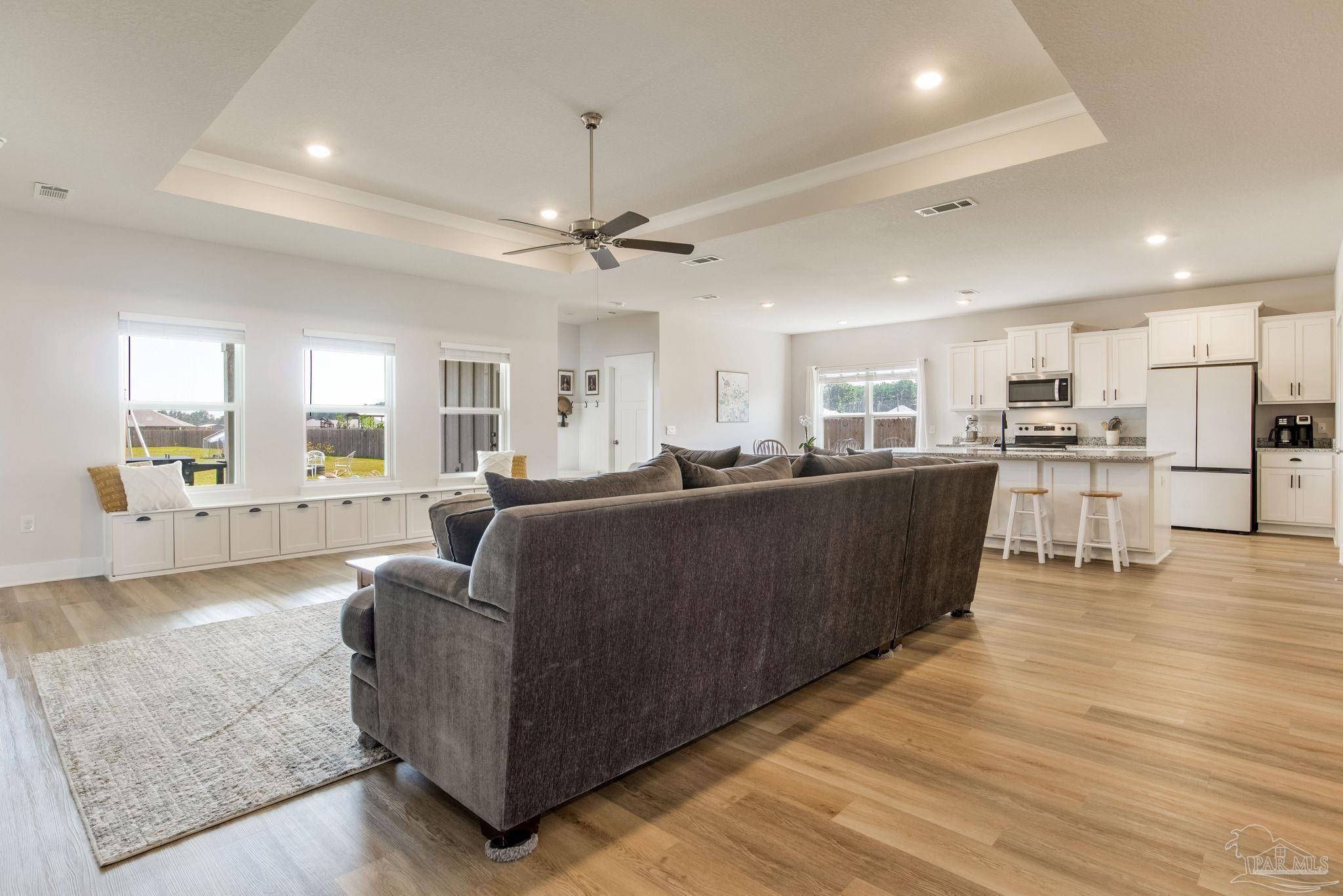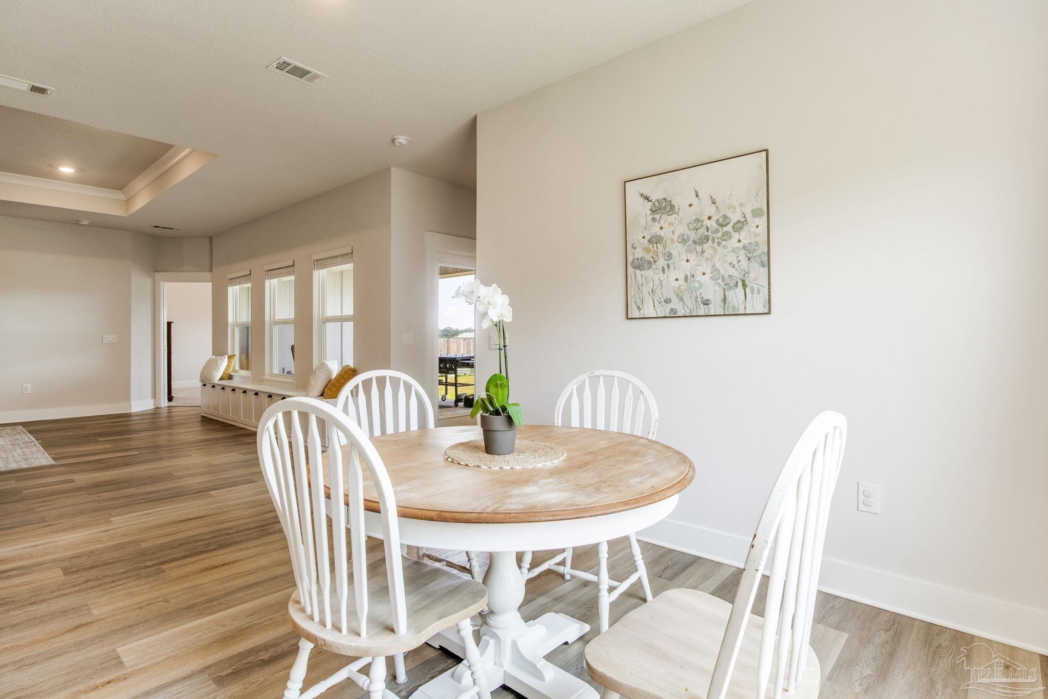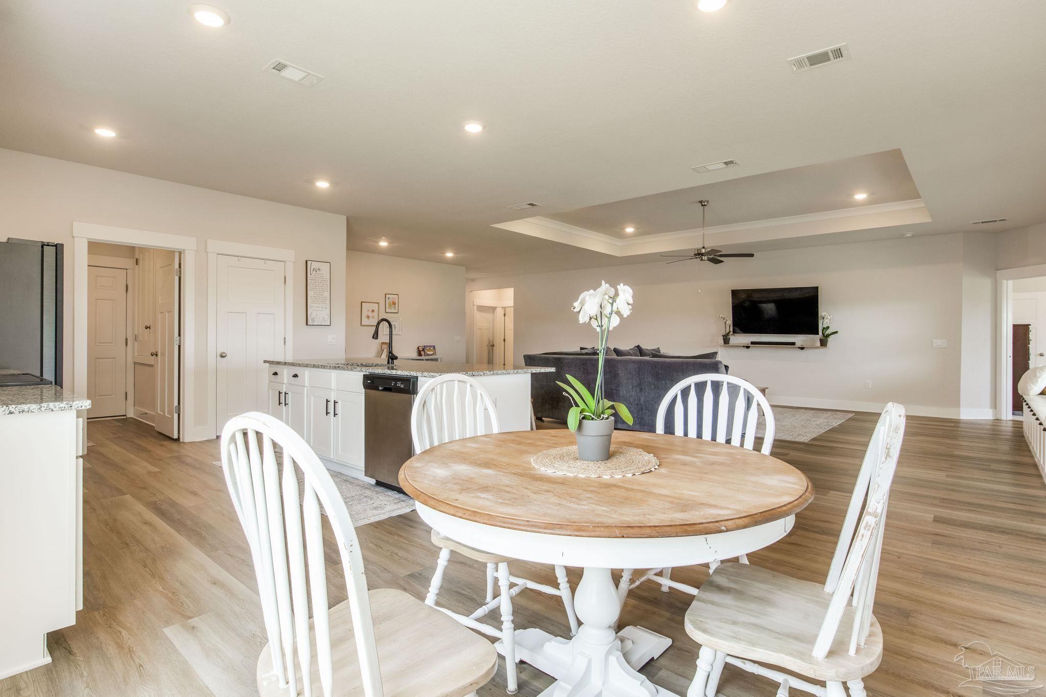 Spilt Layout 4-Bed, 3-Bath Home Set on a Deep Lot. Move-in ready home with over 2,300 square feet of thoughtfully designed living space awaits you in the heart of Pace, Florida. Featuring 4 bedrooms and 3 full bathrooms, this single story home provides flexible options for both a formal dining room and a cozy breakfast nook. Your oversized three-car garage is ideal for storing vehicles, tools, water toys, or even setting up your own workshop. Outside, the covered patio overlooks a fully fenced acre lot that is ready for a custom pool, fire pit or play area. Currently there are blueberry bushes, elderberry bushes and beauty berry bushes in raised beds. On the interior you’ll notice generously sized closets, millwork accents and newly added built-in bench seating. Special features include a walk-in pantry, upgraded laundry room cabinetry, security system and convenient service road. This home sits in a neighborhood that is anything but cookie cutter. Pace has many new and exciting developments in the works with highly rated schools. We welcome you to tour this home that combines space, comfort, and community.