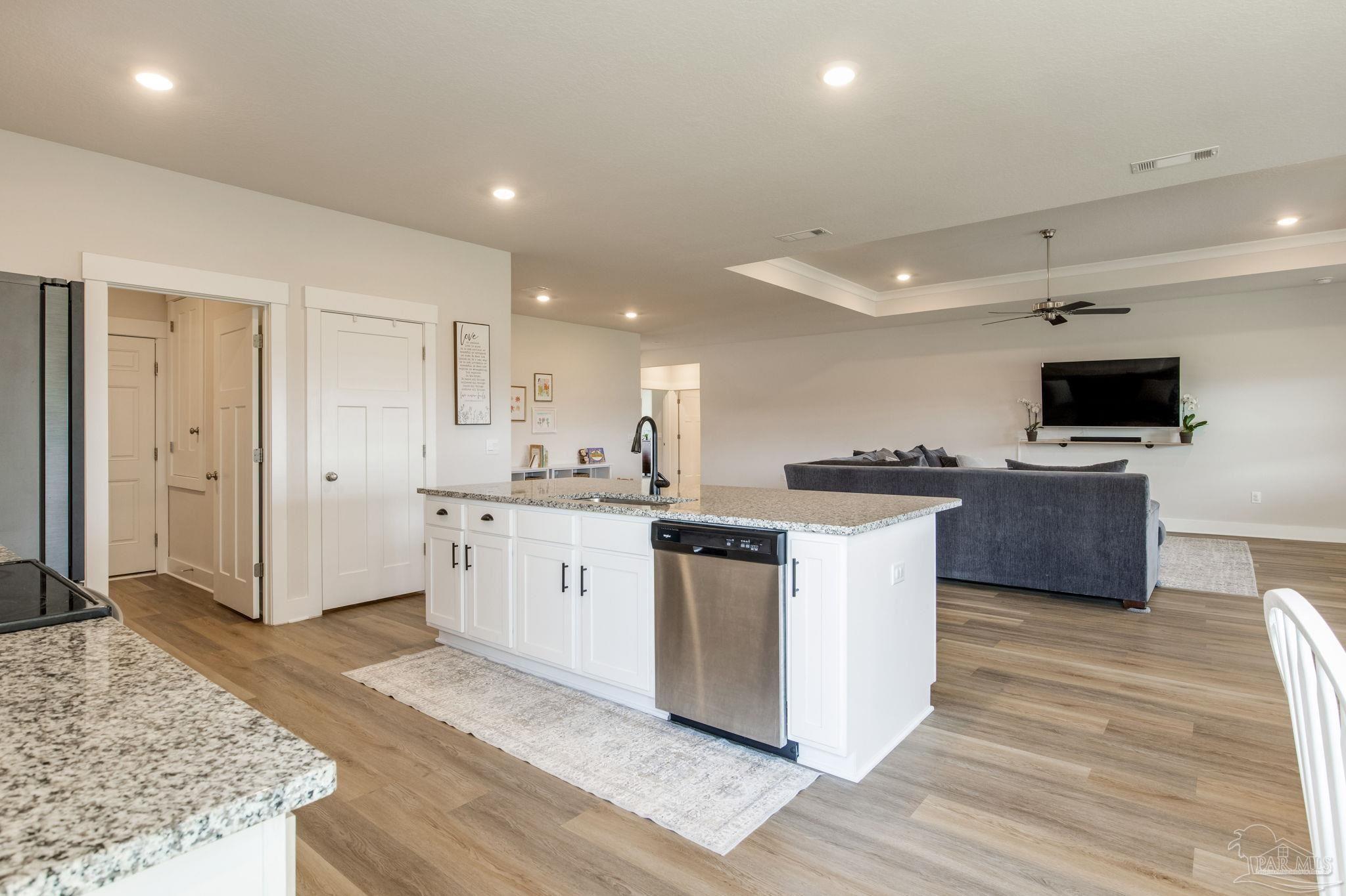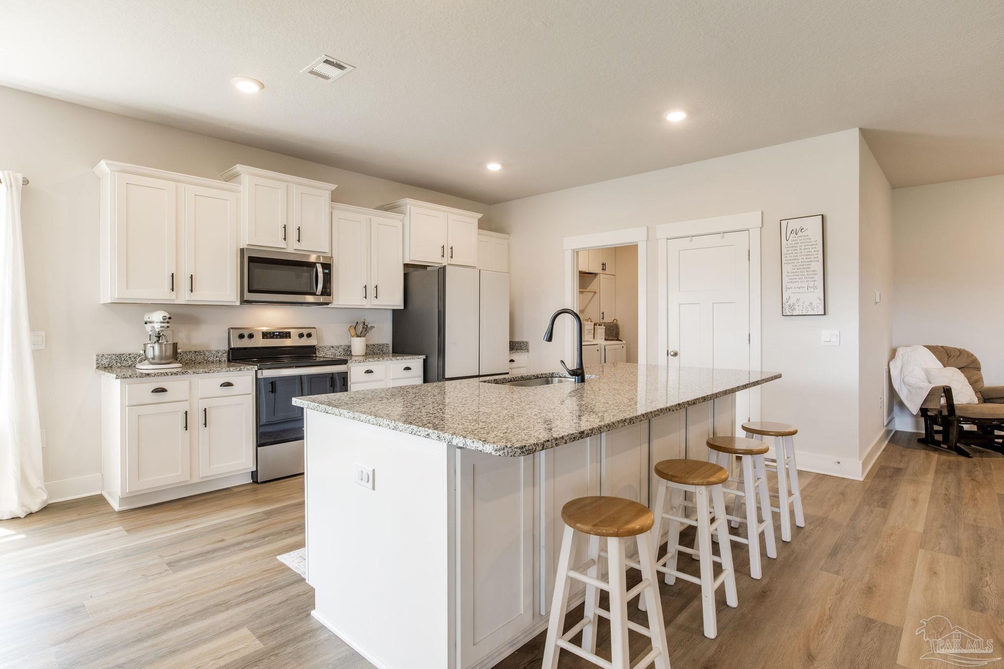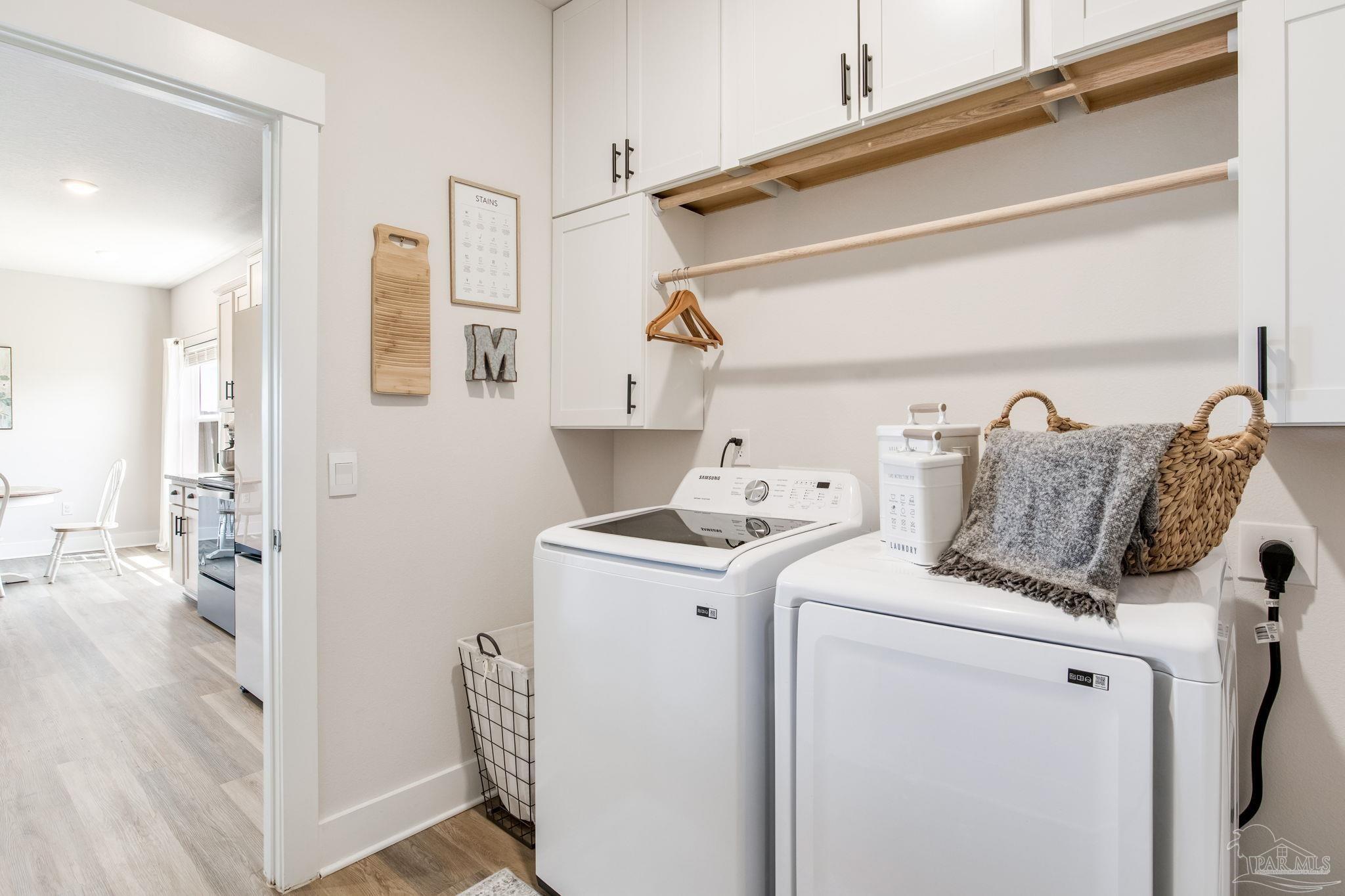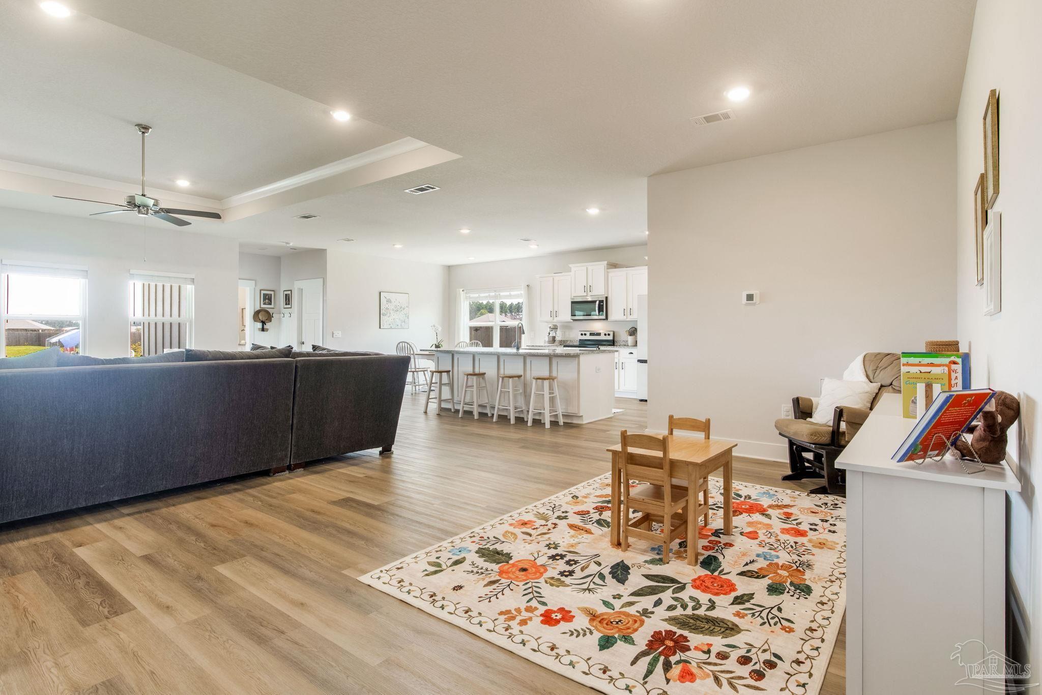 Spilt Layout 4-Bed, 3-Bath Home Set on a Deep Lot. Move-in ready home with over 2,300 square feet of thoughtfully designed living space awaits you in the heart of Pace, Florida. Featuring 4 bedrooms and 3 full bathrooms, this single story home provides flexible options for both a formal dining room and a cozy breakfast nook. Your oversized three-car garage is ideal for storing vehicles, tools, water toys, or even setting up your own workshop. Outside, the covered patio overlooks a fully fenced acre lot that is ready for a custom pool, fire pit or play area. Currently there are blueberry bushes, elderberry bushes and beauty berry bushes in raised beds. On the interior you’ll notice generously sized closets, millwork accents and newly added built-in bench seating. Special features include a walk-in pantry, upgraded laundry room cabinetry, security system and convenient service road. This home sits in a neighborhood that is anything but cookie cutter. Pace has many new and exciting developments in the works with highly rated schools. We welcome you to tour this home that combines space, comfort, and community.