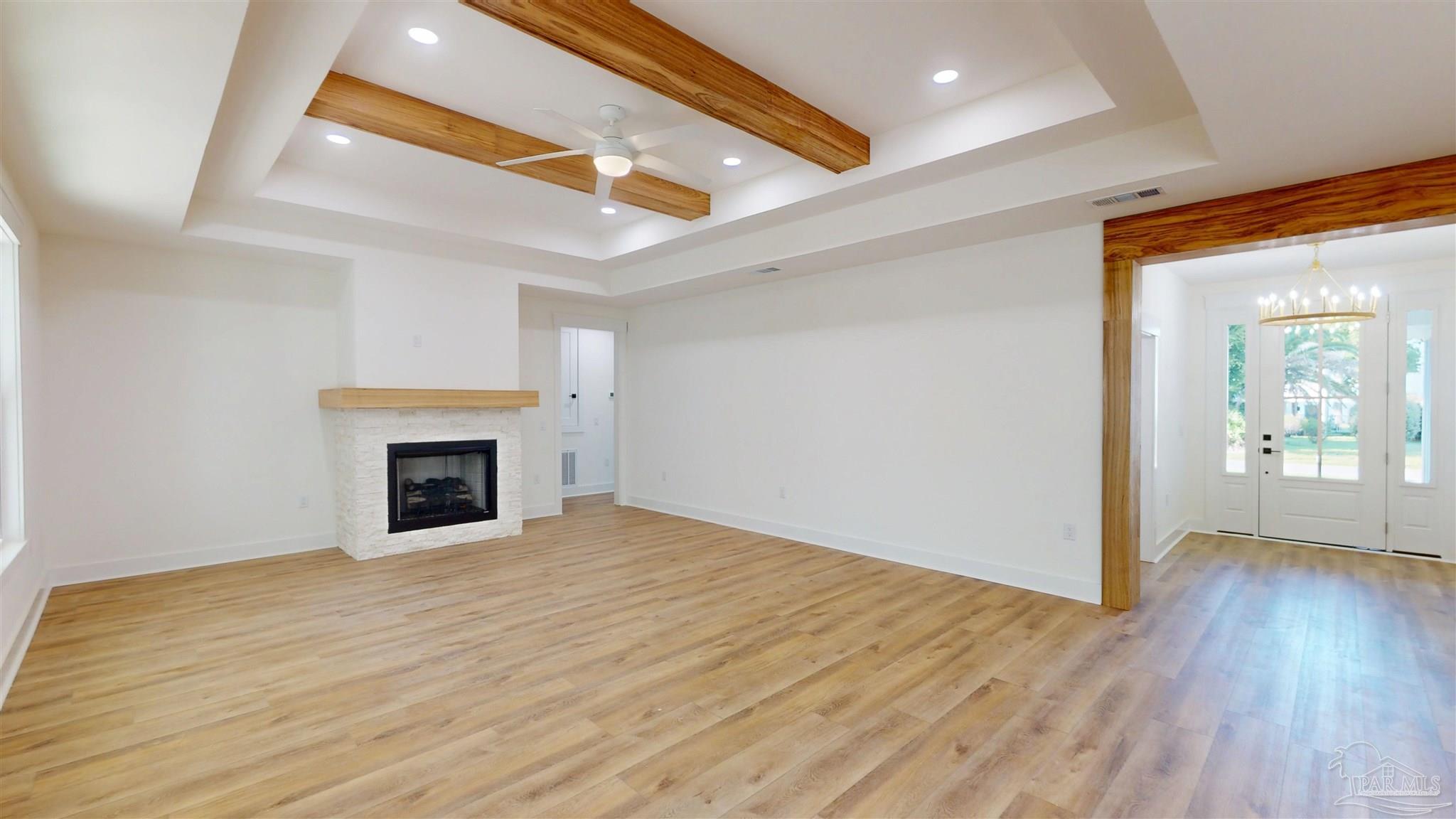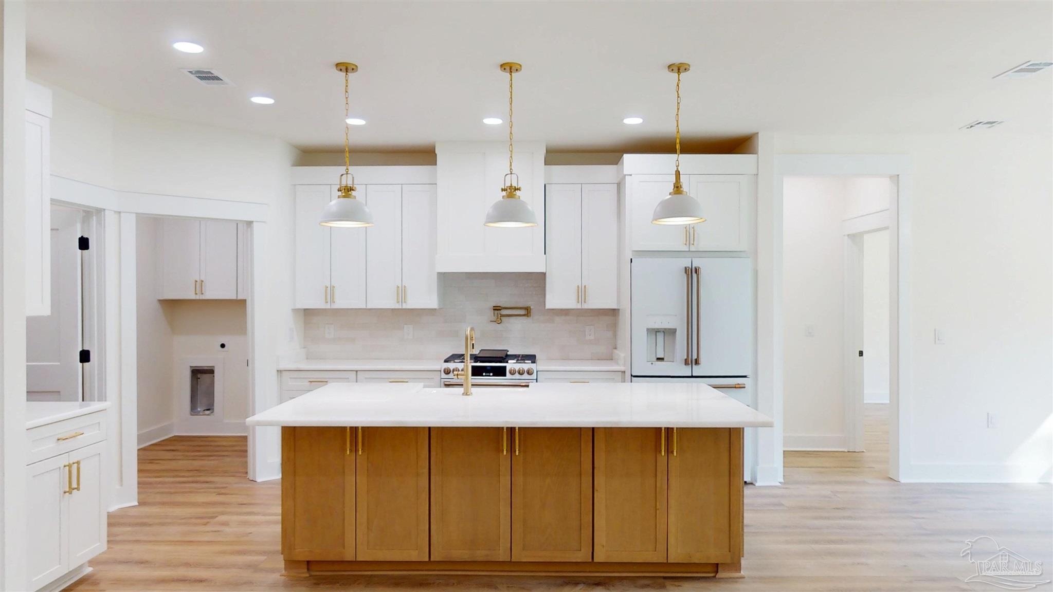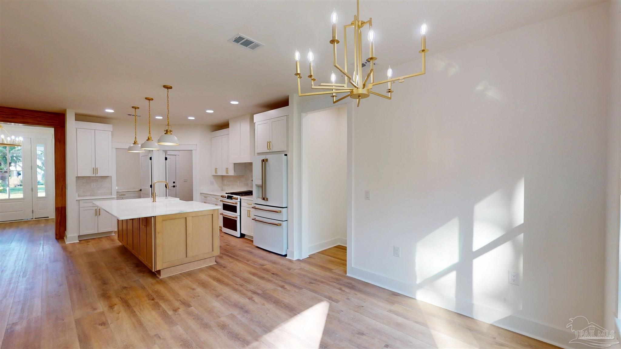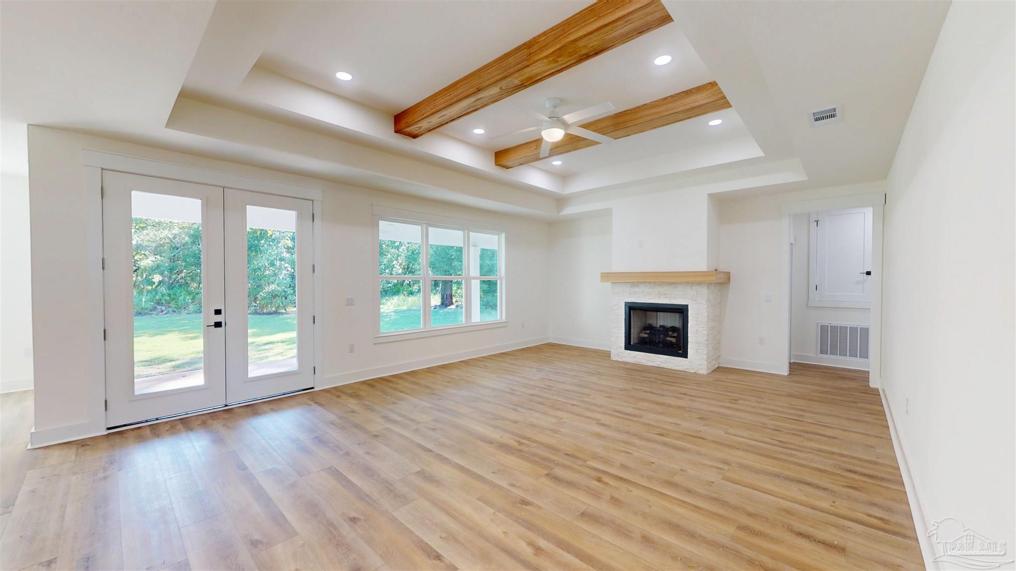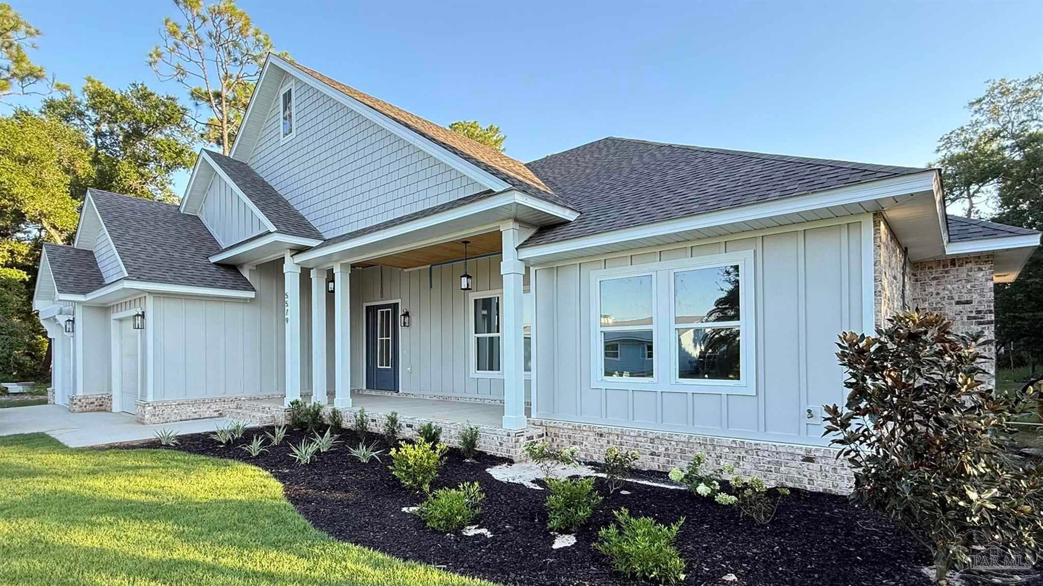 Brand New Construction in Gated Innerarity Island! This thoughtfully designed 4-bedroom, 3-bathroom home is perfectly situated on a spacious lot in one of Perdido Key’s most sought-after communities. Enjoy glimpses of Perdido Bay from the inviting front porch, the perfect spot for morning coffee or evening sunsets. Step through the foyer and take in the open-concept living space, flooded with natural light and anchored by a gas fireplace. French doors provide a beautiful view and access to the backyard and covered patio, ideal for relaxing or entertaining. The kitchen features a gas range with pot filler, walk-in pantry, island with extra storage and generous counter space, making both daily living and hosting a breeze. The primary suite is a serene retreat with a spacious bedroom, luxurious bath featuring tiled shower, private water closet, and oversized walk-in closet. Two additional bedrooms are connected by a convenient Jack and Jill bathroom, while the fourth bedroom—complete with its own en-suite—makes an ideal guest room, office, or flex space. Enjoy the peaceful privacy of your large backyard from the covered back patio, ideal for afternoon lounging or grilling out. Innerarity Island offers a unique coastal lifestyle with community amenities including a park on Perdido Bay with a pier, pickleball/basketball court, picnic tables and a basketball hoop and beach access on the Intracoastal side. Neighborhood events like golf cart parades for Mardi Gras and the Fourth of July add to the charm and vibrant sense of community.