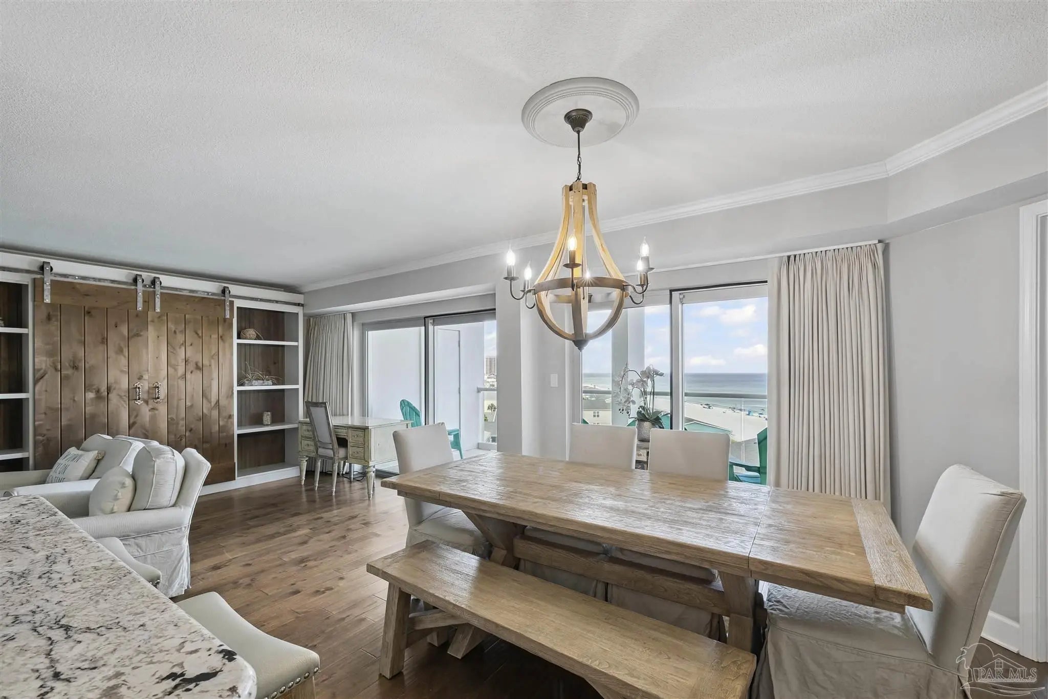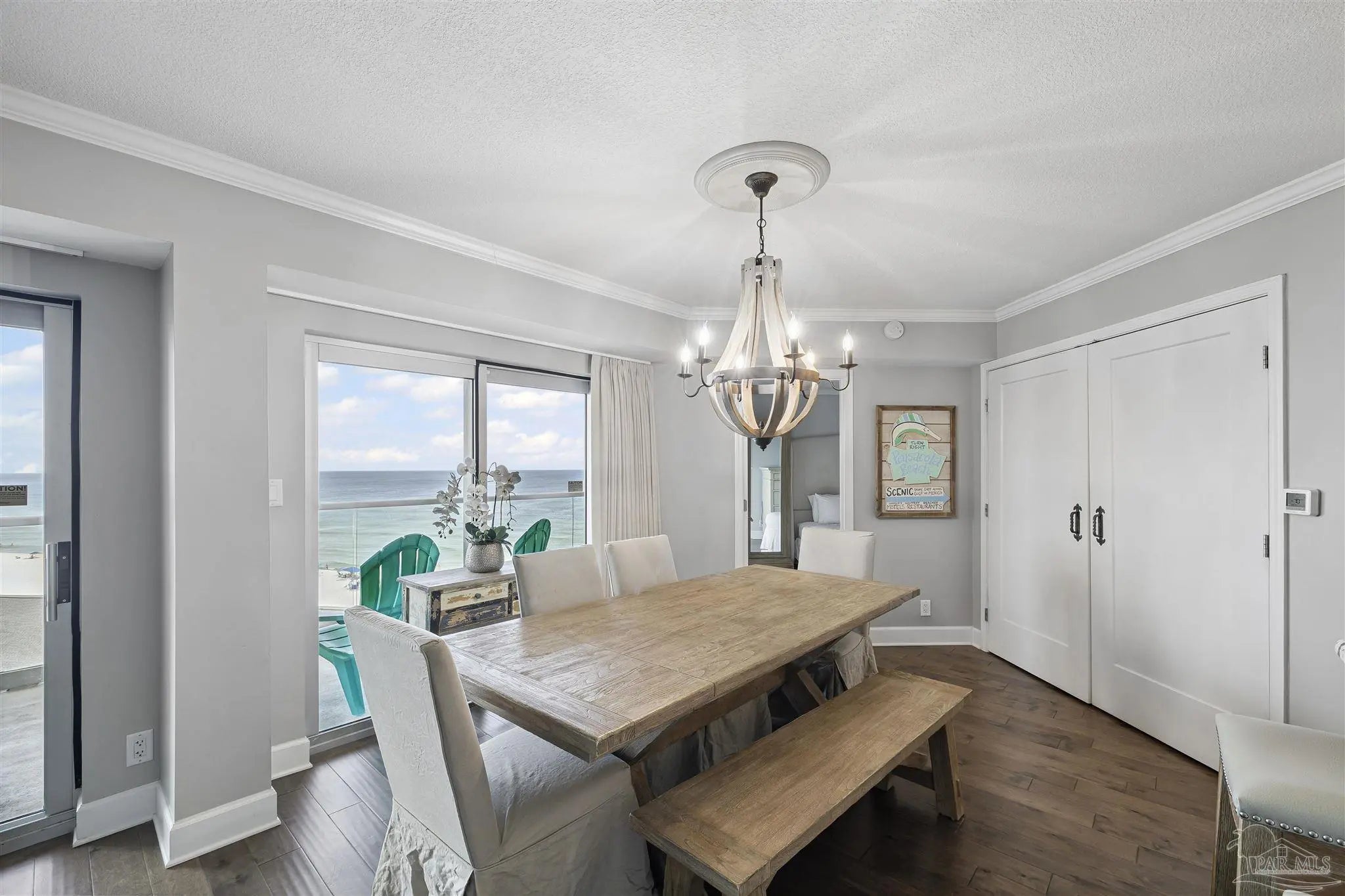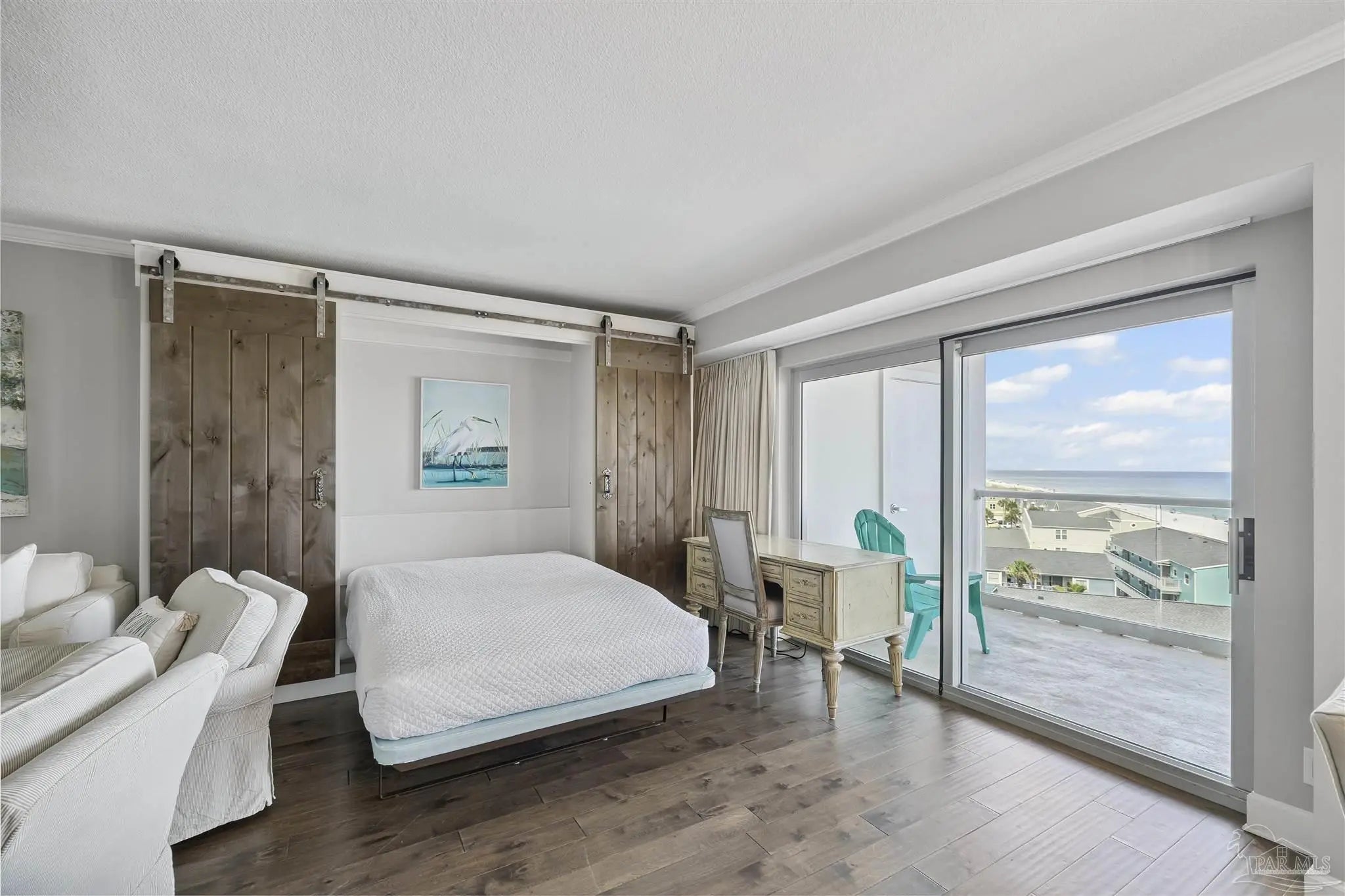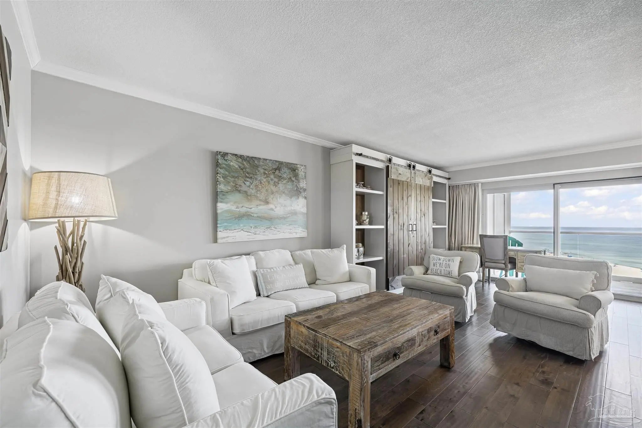 Welcome to your perfect coastal retreat on the top floor of the highly sought-after Regency Towers, directly overlooking the emerald waters and pristine white beach of the Gulf of Mexico. This beautifully updated, high-end condo offers breathtaking views and an oversized balcony — an ideal setting for watching dolphins play, or catching the iconic Blue Angels soaring overhead. Step inside to a spacious, open-concept layout that blends comfort with coastal elegance. The bright living and dining areas flow seamlessly into a modern kitchen complete with granite countertops, glass tile backsplash, stainless steel appliances, and a generously sized pantry. Designed with thoughtful upgrades, the condo features custom-built-in cabinetry and a Murphy bed to comfortably accommodate guests. The primary suite is a private sanctuary with direct access to the balcony, so you can wake up to the sound of waves and a view of the endless horizon. Enjoy a full-size walk-in closet, a luxurious en-suite bath, and stylish finishes throughout. Whether you're seeking a full-time residence, a vacation home, or an investment opportunity, this lovingly maintained top-floor condo is a rare find. Experience the beach lifestyle you've always dreamed of — schedule your showing today!