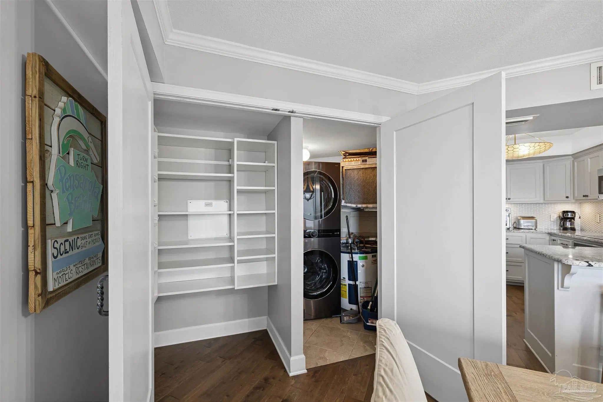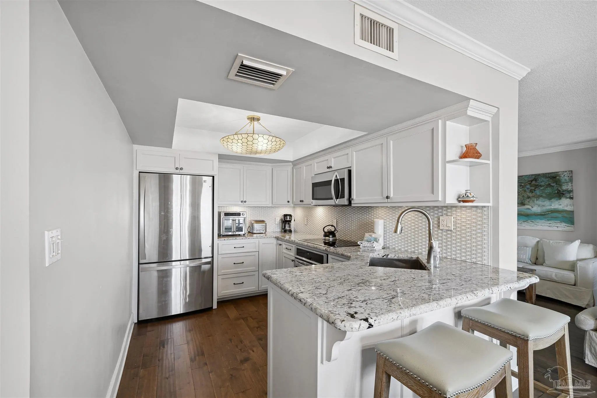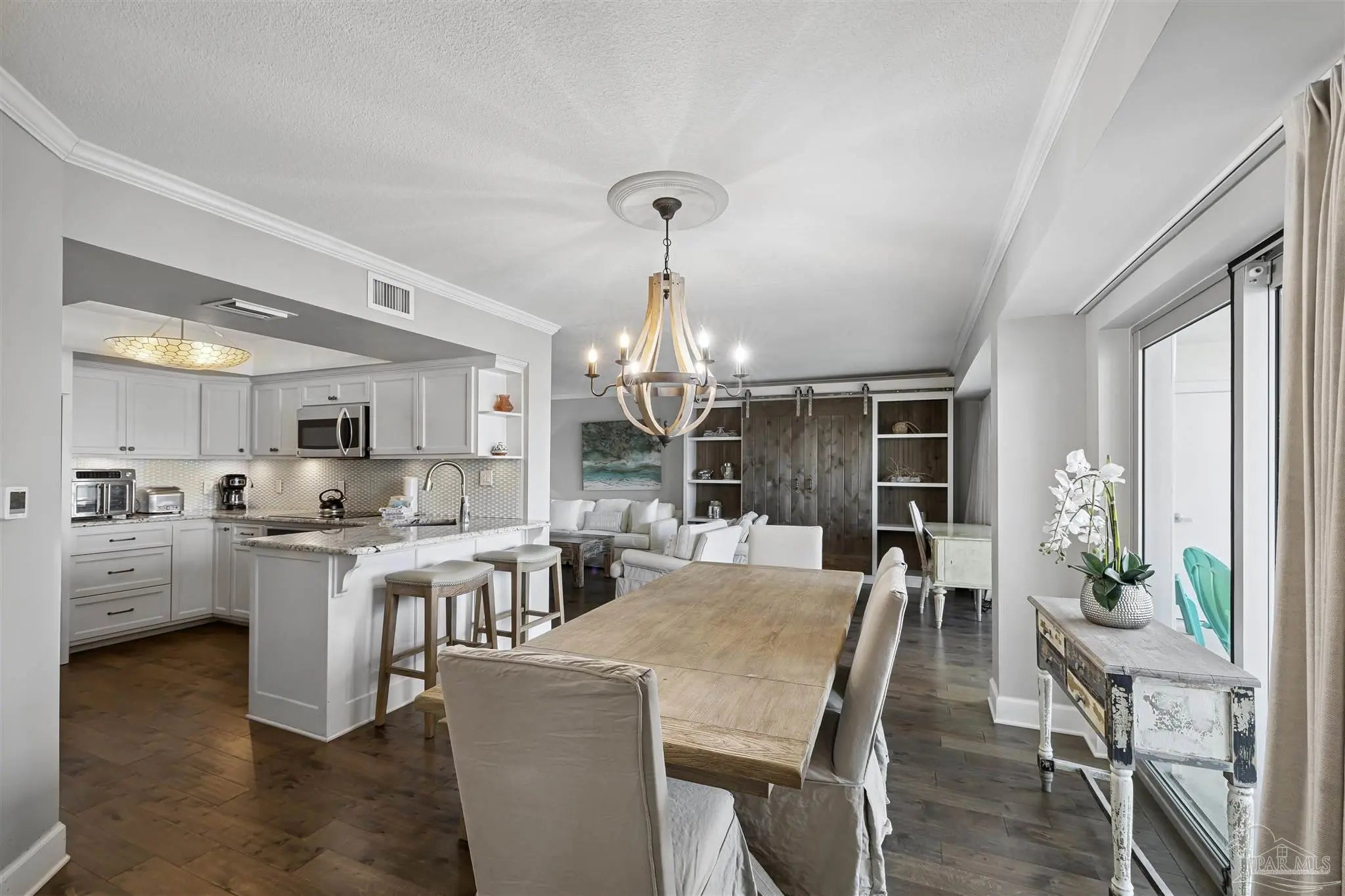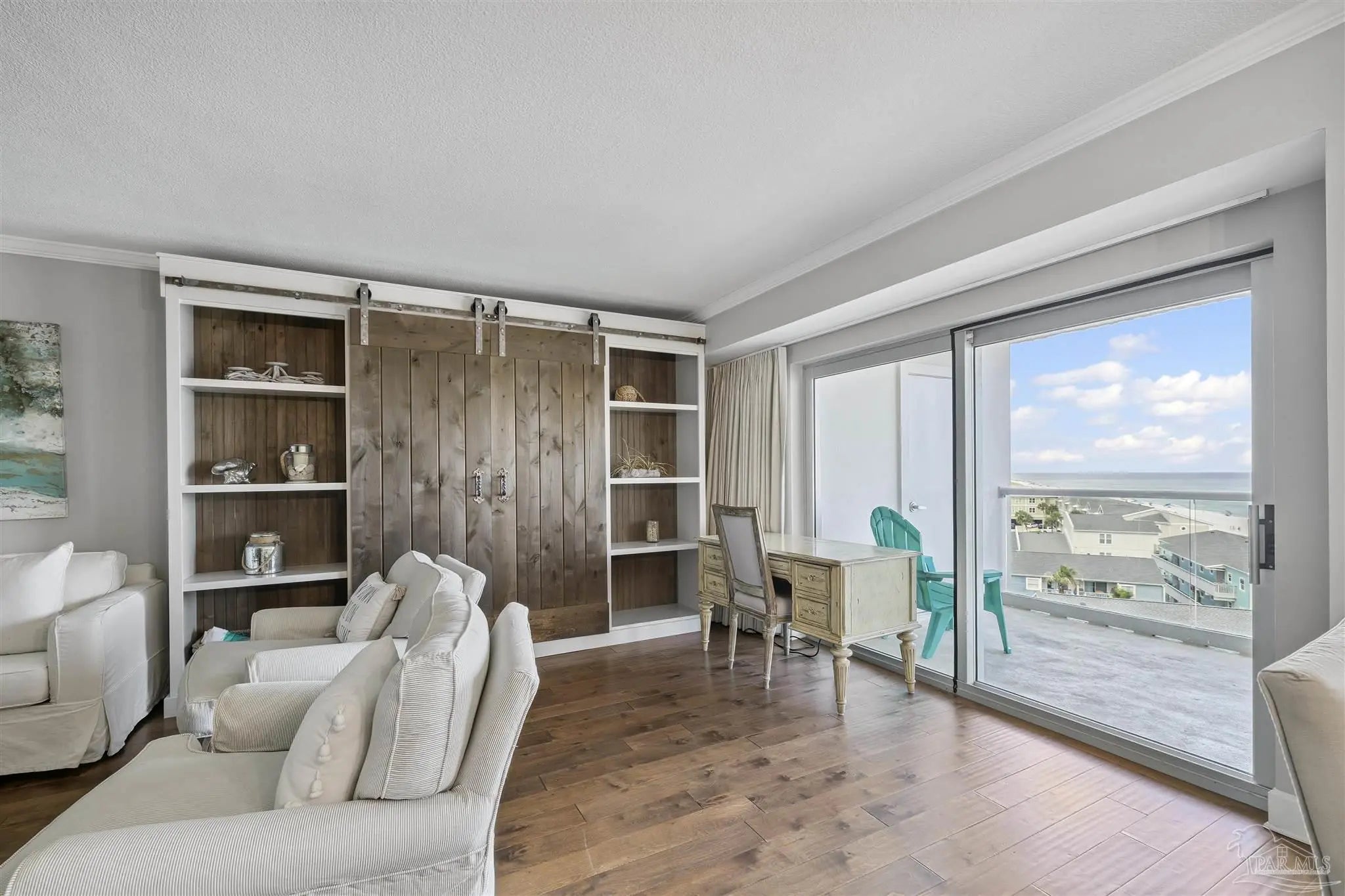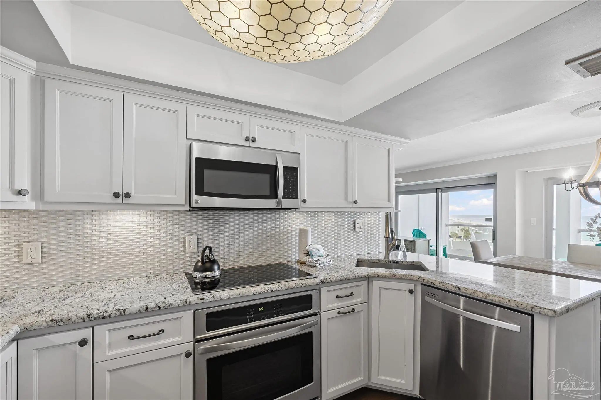 Welcome to your perfect coastal retreat on the top floor of the highly sought-after Regency Towers, directly overlooking the emerald waters and pristine white beach of the Gulf of Mexico. This beautifully updated, high-end condo offers breathtaking views and an oversized balcony — an ideal setting for watching dolphins play, or catching the iconic Blue Angels soaring overhead. Step inside to a spacious, open-concept layout that blends comfort with coastal elegance. The bright living and dining areas flow seamlessly into a modern kitchen complete with granite countertops, glass tile backsplash, stainless steel appliances, and a generously sized pantry. Designed with thoughtful upgrades, the condo features custom-built-in cabinetry and a Murphy bed to comfortably accommodate guests. The primary suite is a private sanctuary with direct access to the balcony, so you can wake up to the sound of waves and a view of the endless horizon. Enjoy a full-size walk-in closet, a luxurious en-suite bath, and stylish finishes throughout. Whether you're seeking a full-time residence, a vacation home, or an investment opportunity, this lovingly maintained top-floor condo is a rare find. Experience the beach lifestyle you've always dreamed of — schedule your showing today!