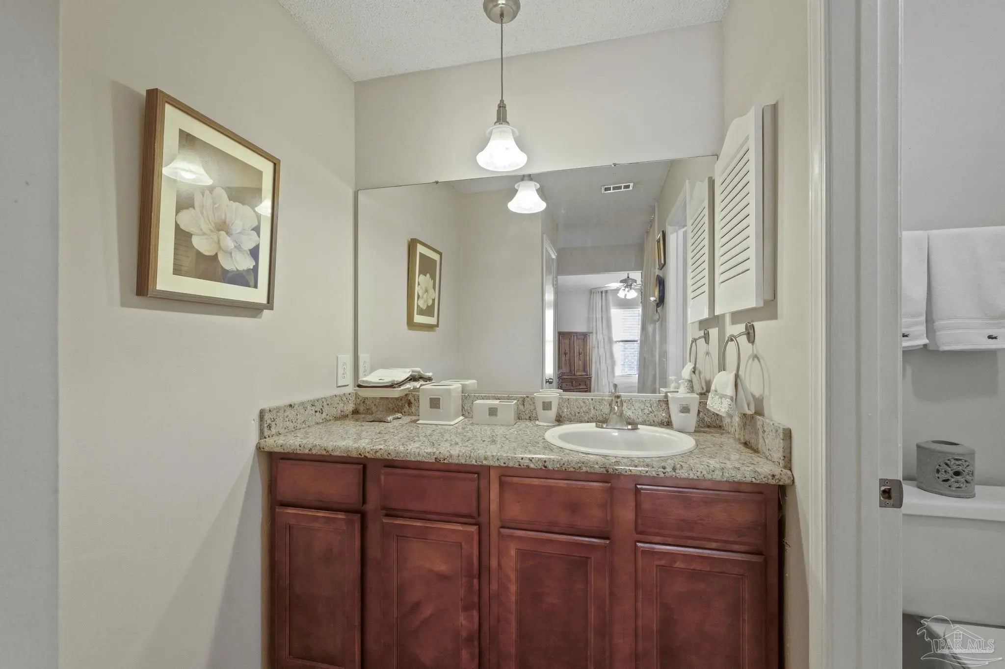 Celebrate the holidays in comfort and style in this beautifully maintained second-floor condo—perfect for cozy gatherings, festive dinners, and hosting friends or family. Offering over 900 square feet of thoughtfully designed living space, this 2-bedroom, 2-bath home blends modern convenience with a warm, inviting atmosphere. The open-concept layout connects the living, dining, and kitchen areas, creating an effortless flow for entertaining during the holiday season. The kitchen features granite countertops, all-wood cabinetry, and a convenient breakfast bar—ideal for prepping holiday treats or serving appetizers while guests mingle. Soft, neutral tones and natural light fill the home, adding to its welcoming feel. Step out onto your private balcony to enjoy a quiet morning coffee or a peaceful evening under the glow of holiday lights. With plenty of room for hosting overnight guests, this condo is perfect for welcoming loved ones throughout the season. As part of a well-cared-for community, you’ll also enjoy access to a sparkling inground pool, manicured grounds, and covered maintenance services—so you can focus on celebrating, not upkeep. Located just 8 minutes from downtown Pensacola, 14 minutes from Pensacola Beach, and 17 minutes from NAS, this condo offers the ideal balance of relaxation and convenience. Whether you’re looking for a seasonal retreat or a full-time home, this is the perfect place to make holiday memories year after year.