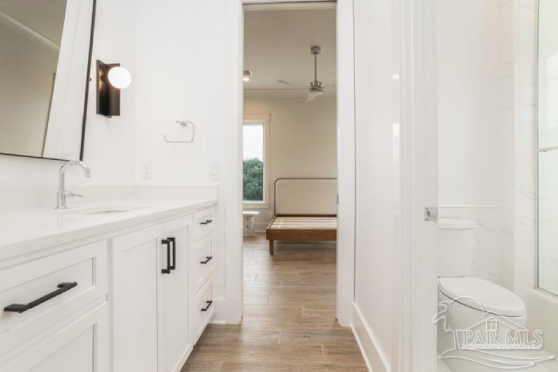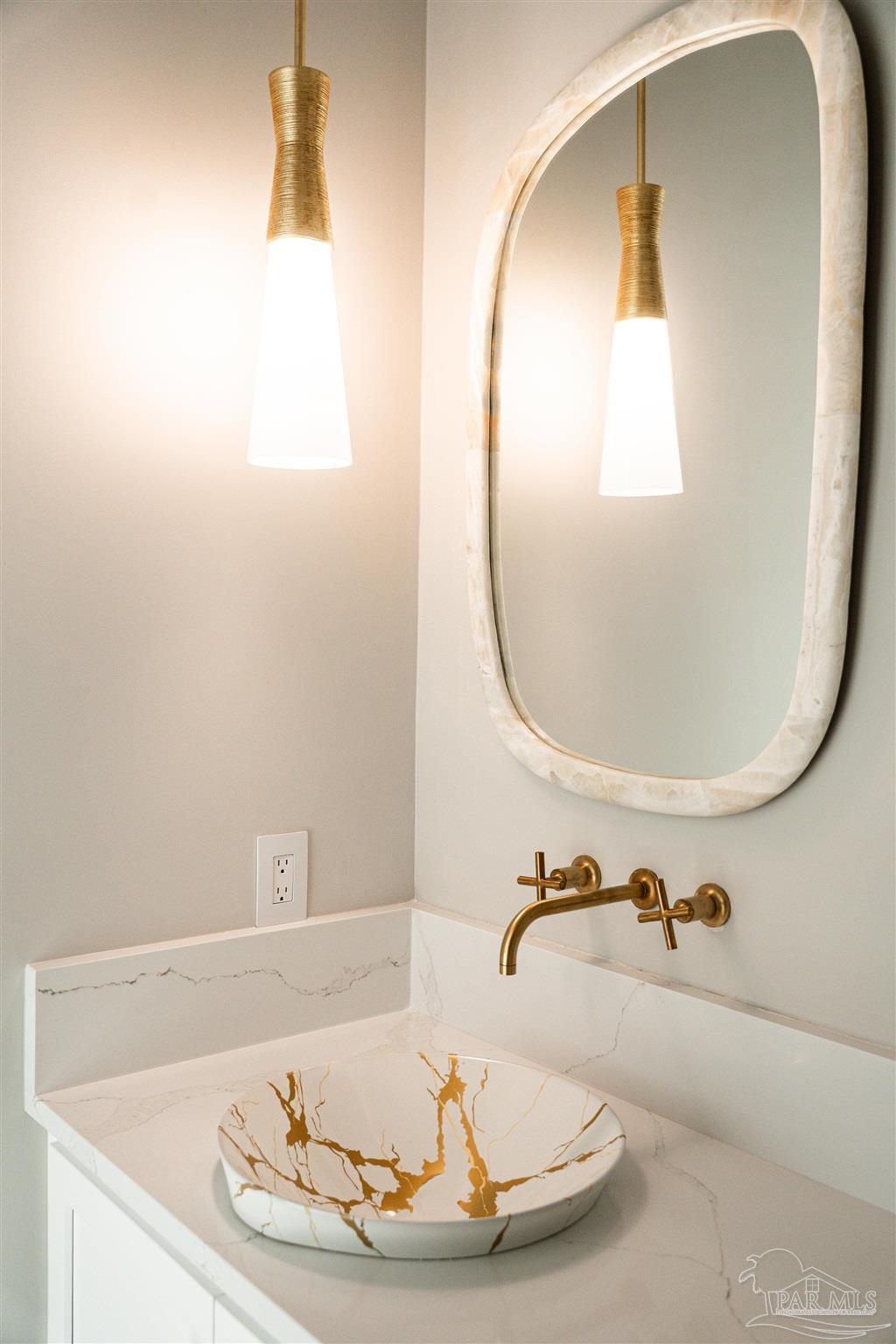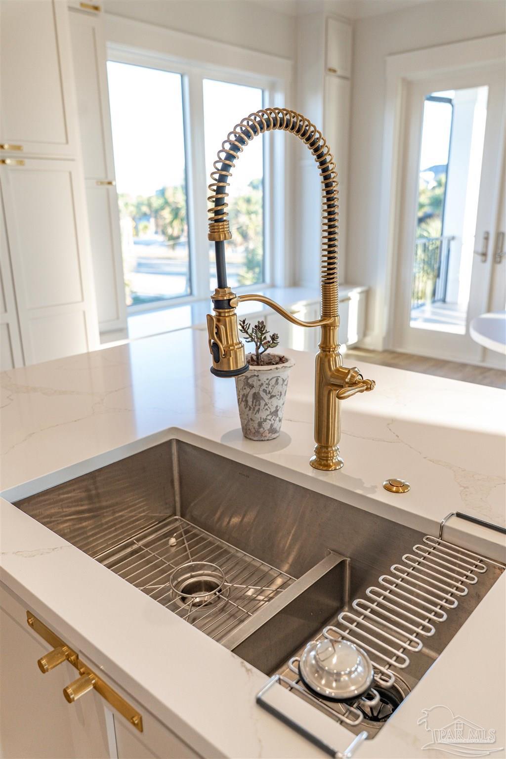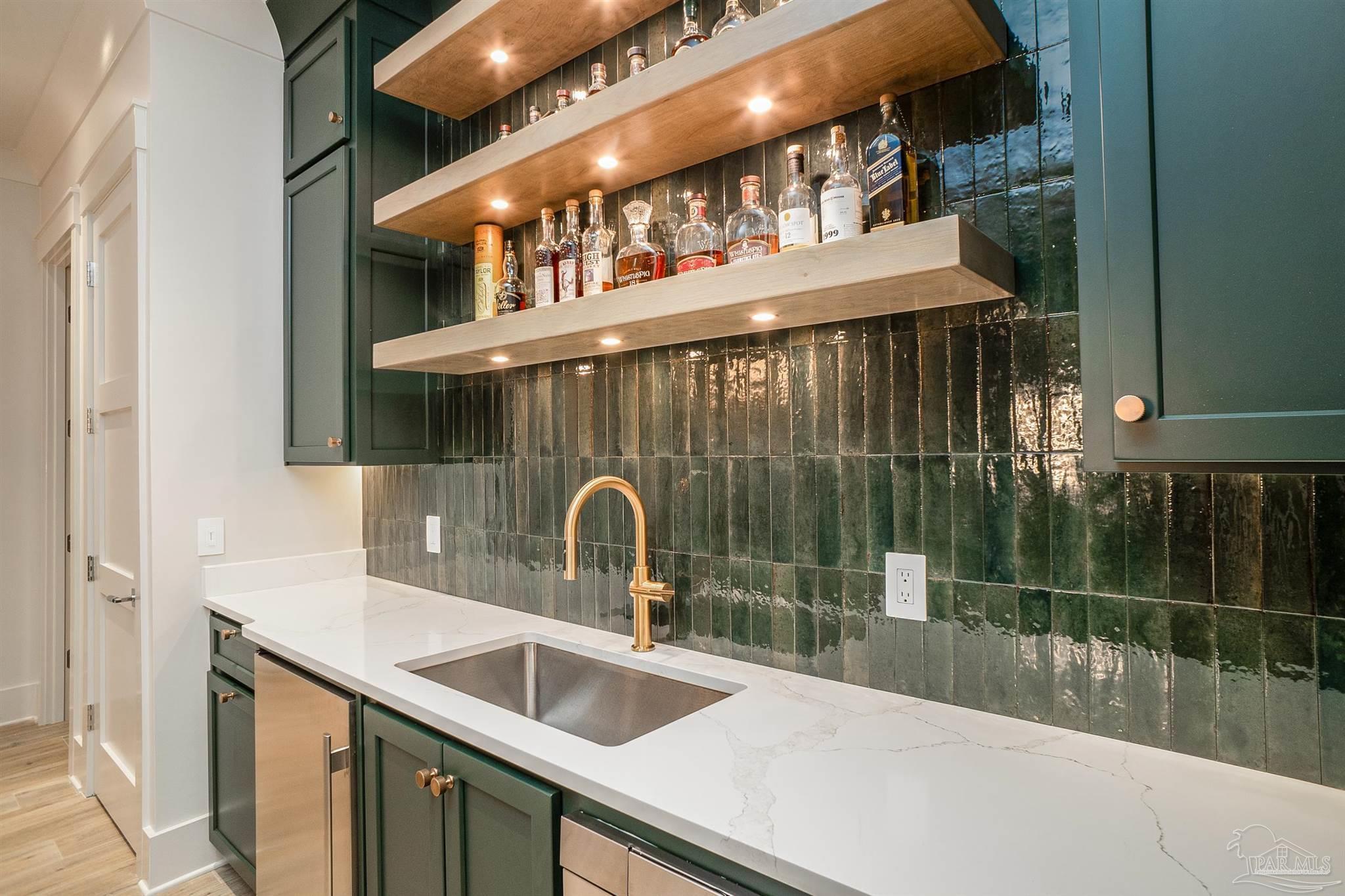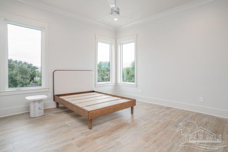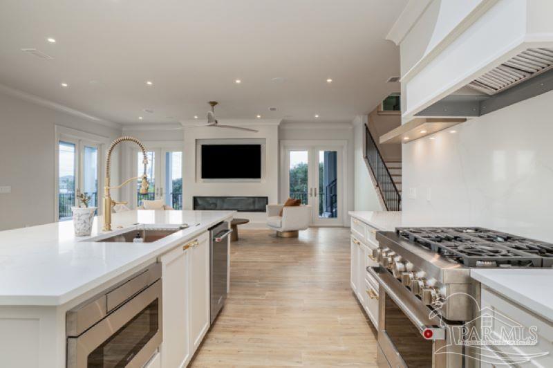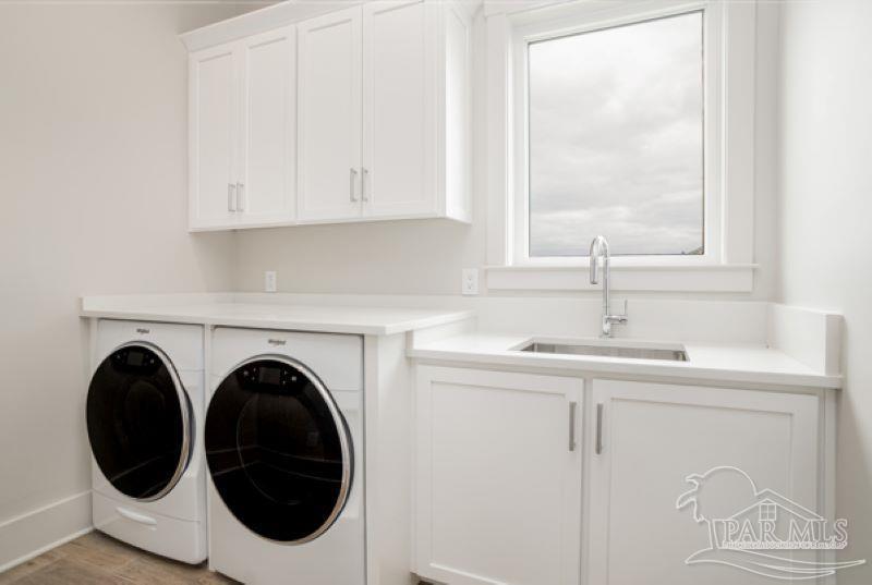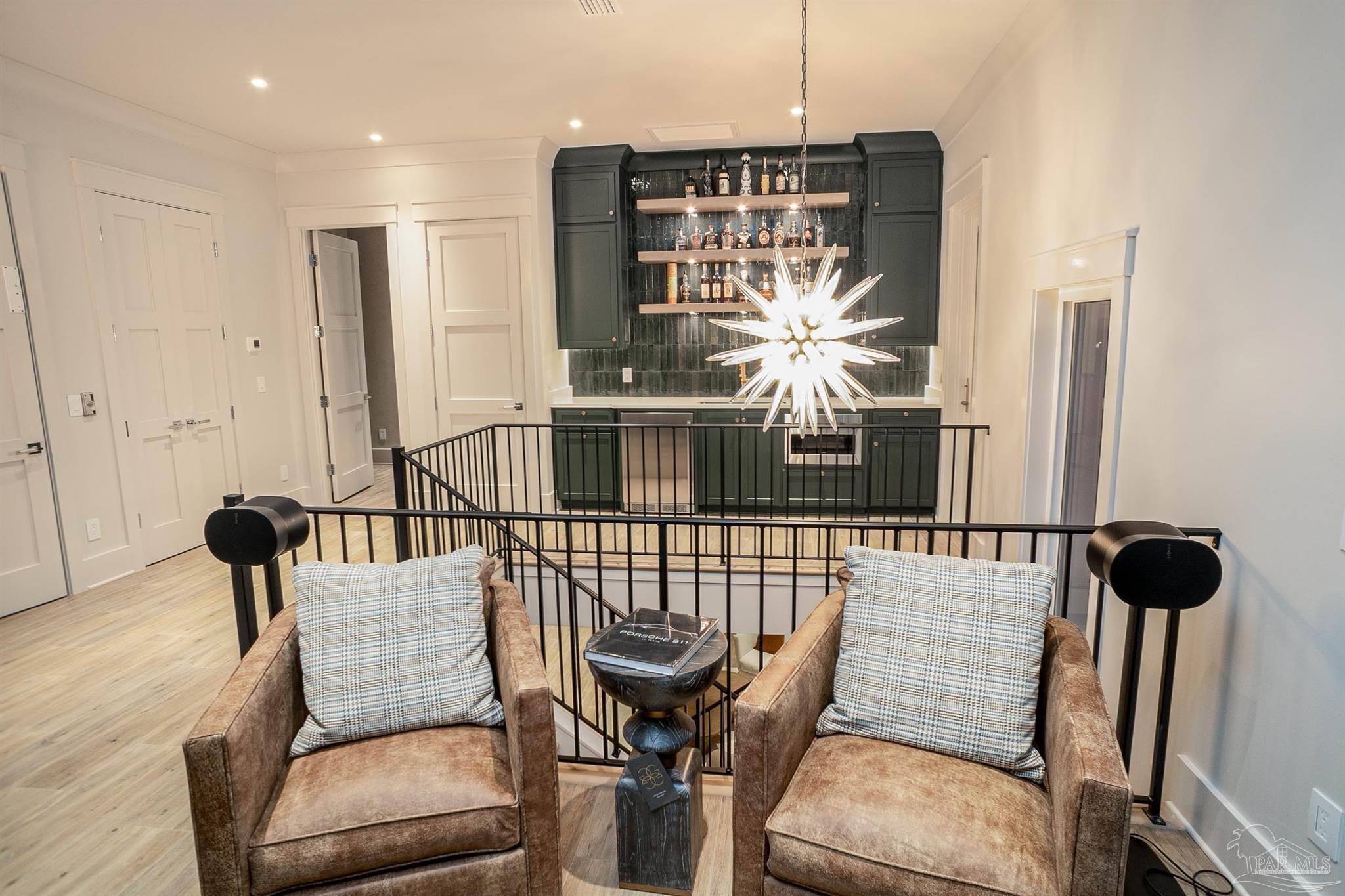 One of the most attractive residences on all of P-beach & believed to be the tallest residential home on the Beach giving views of the Sound & the Gulf. Boasting Elite Caliber finishes plus efficient dollar saving home hardening construction materials installed by craftsmen & perfectly placed on a rare larger estate size .29-acre lot w the entire perimeter enveloped by a heavy-duty custom vinyl fencing system w motorized gate. Parking is a breeze w the unique 50 ft paver parking round about. One of the few home sites that sits adjacent to a 15 ft easement that runs North & South from the sound to the gulf. If you enjoy outdoor living space this beautiful abode has appx 3500 SF of covered outdoor decks w tongue & groove exterior ceiling system at all decks, patios & stairwells. The large ground level covered porch at the rear of the home is well suited for your future outdoor kitchen & flows well with the side yard which can accommodate the attached pool design without a variance. Low maintenance construction & extra attention to detail offer significant insurance, utility & maintenance savings. Enhanced efficiency standards are: larger 14” pilings versus 12” installed to 20’ piling ground depth versus 15’ standard; built 18' above sea level 5' above the base flood elevation; all stainless steel fasteners; structural soffits; go bolt threaded rod anchoring system; spray foam insulation; Senergy encapsulated seal coat exterior polymer system; Aeritis tongue & groove decking; stained & sealed tongue & groove ceilings at all covered porches; 3500sf of covered outdoor living space; 799sf insulated & finished garage; custom gutter system w underground drainage; custom paver walkways; double pane low-e impact Colby Casement windows & Neuma doors w/3 point locking system; white glass aluminum garage doors; aluminum hand rails w/powder coat finish; standing seam metal roof w peel & stick underlayment; large rooftop observation deck & Custom Cab elevator serving all levels.