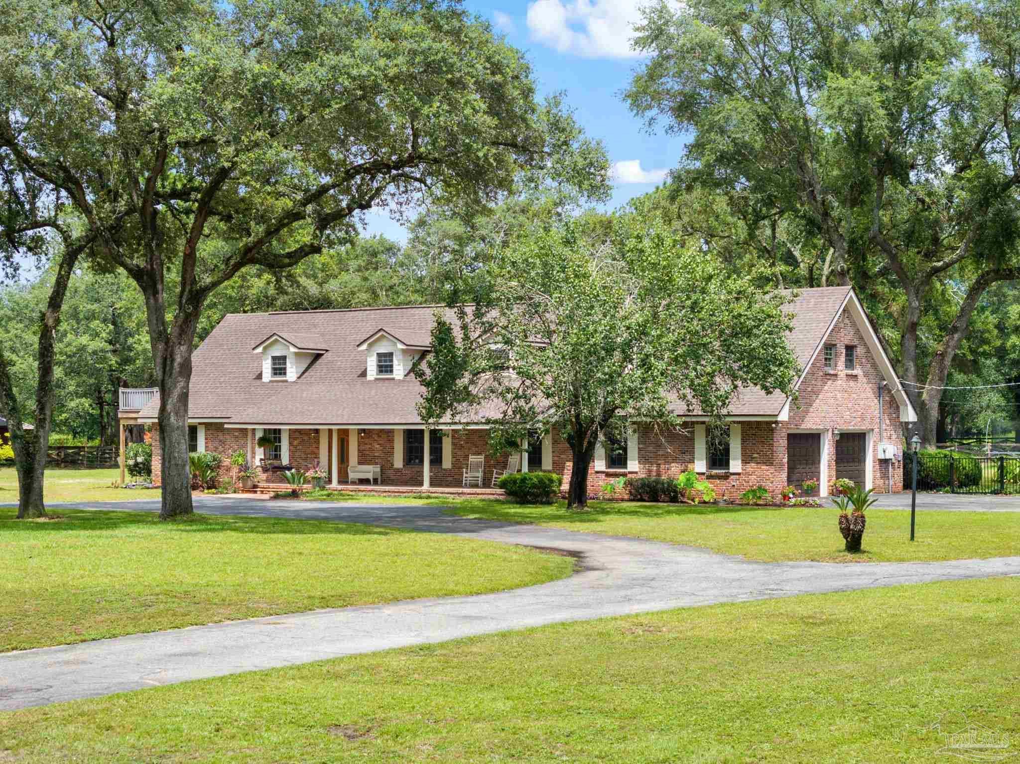 This unique property is in the heart of town but feels like you are out in your own oasis! Once inside this beautiful 2 story brick home with a circular drive you will find travertine floors, an updated kitchen with stainless steel appliances, a separate dining room and a wood burning fireplace in the living room. There are 3 bedrooms and 2 full baths downstairs. As you begin upstairs, you have a private bedroom suite to the right with a full bath and outside deck access. Across the hall is the main bedroom suite complete with a large bathroom, double vanities, large walk-in shower, and a jetted tub that looks over your private acreage. Off the rear of the main bedroom is a walk-in closet with enough space for storage, an office or a personal gym. The property has a tennis court, in ground Gunite Pool, sauna, and a separate guest house that has a full bath and kitchen (use this as a mother-in-law suite, studio or to generate some income as an Airbnb with its separate gate entrance for access). The back yard is fenced with an 1,856-sf steel framed barn and a separate Run-In. There is also a well Pump for lawn Irrigation. The main house, irrigation wellhouse and pool/guest house all re-roofed in 2021. A new septic tank and fill lines were replaced for the main house June 2025. New tankless hot water heater for main house 2023, Main house had both HVAC's replaced in 2021 (2nd level) and 2024 (main level). Pool house HVAC replaced in 2025. Everything has been updated, and this gorgeous home is ready for you to move in!
