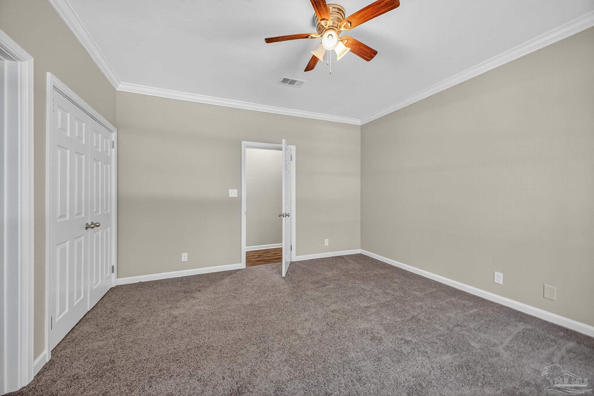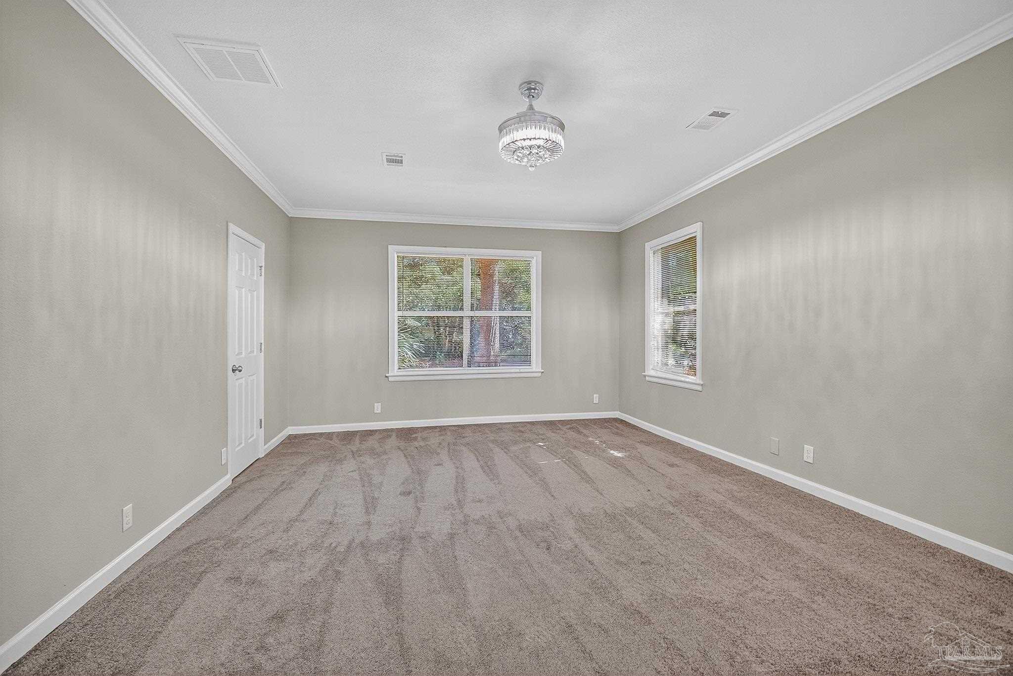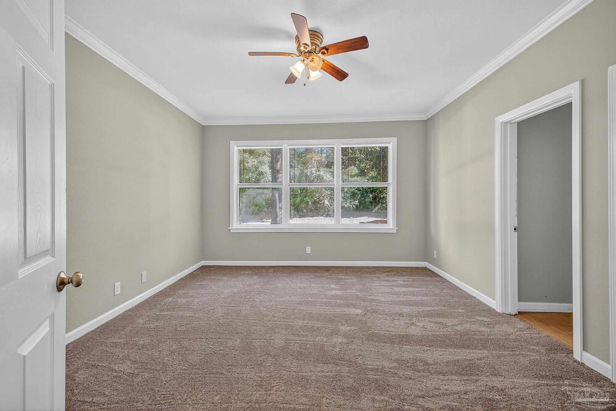 - Baseboards, Ceiling Fan(s), Crown Molding, Game Room, Office/Study