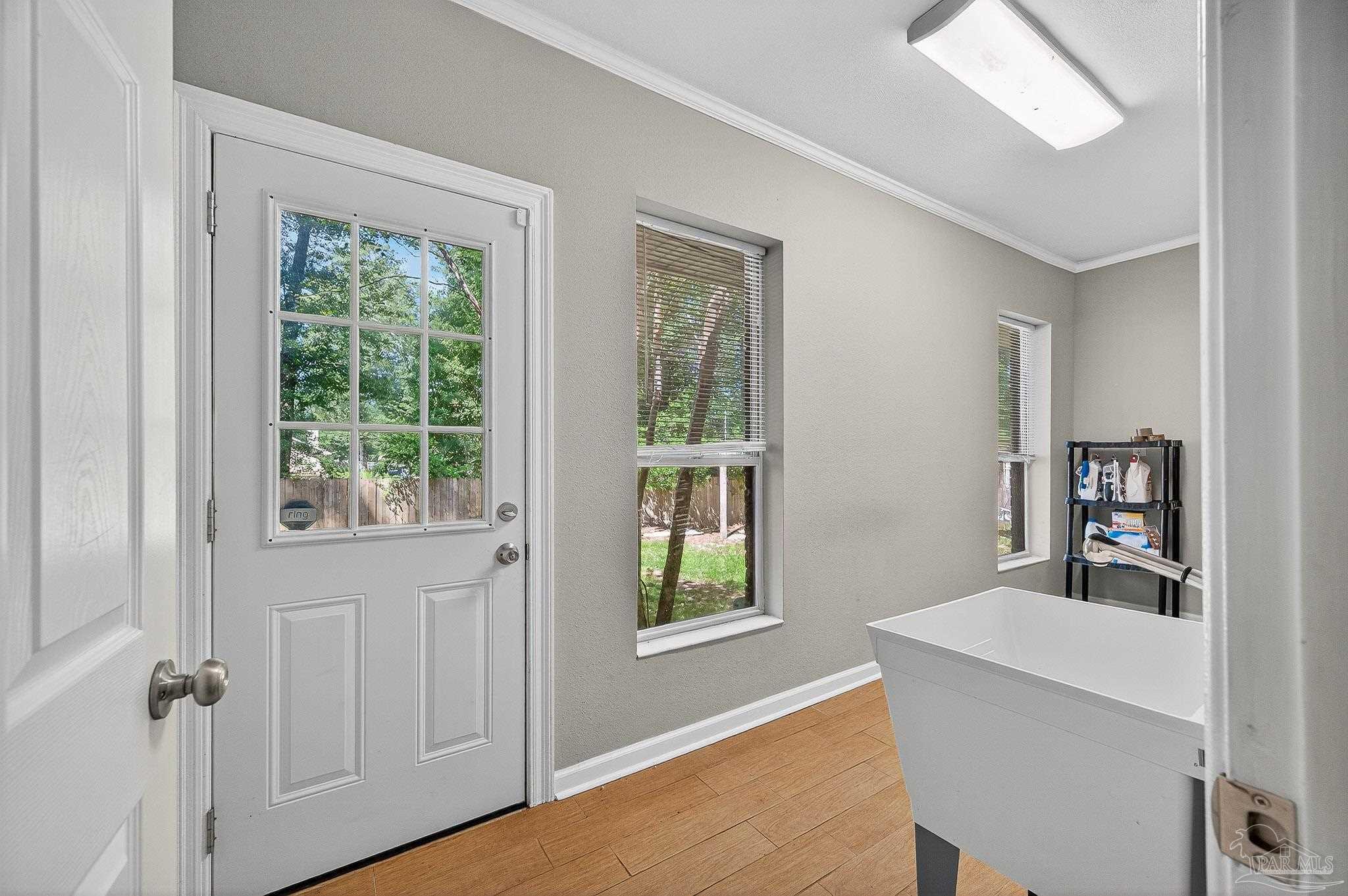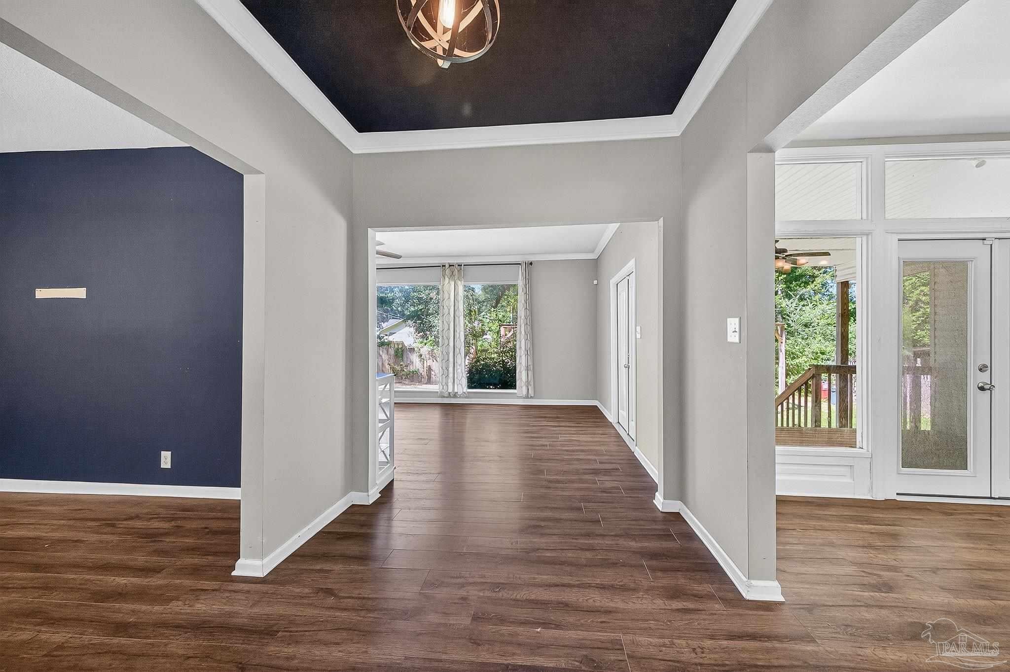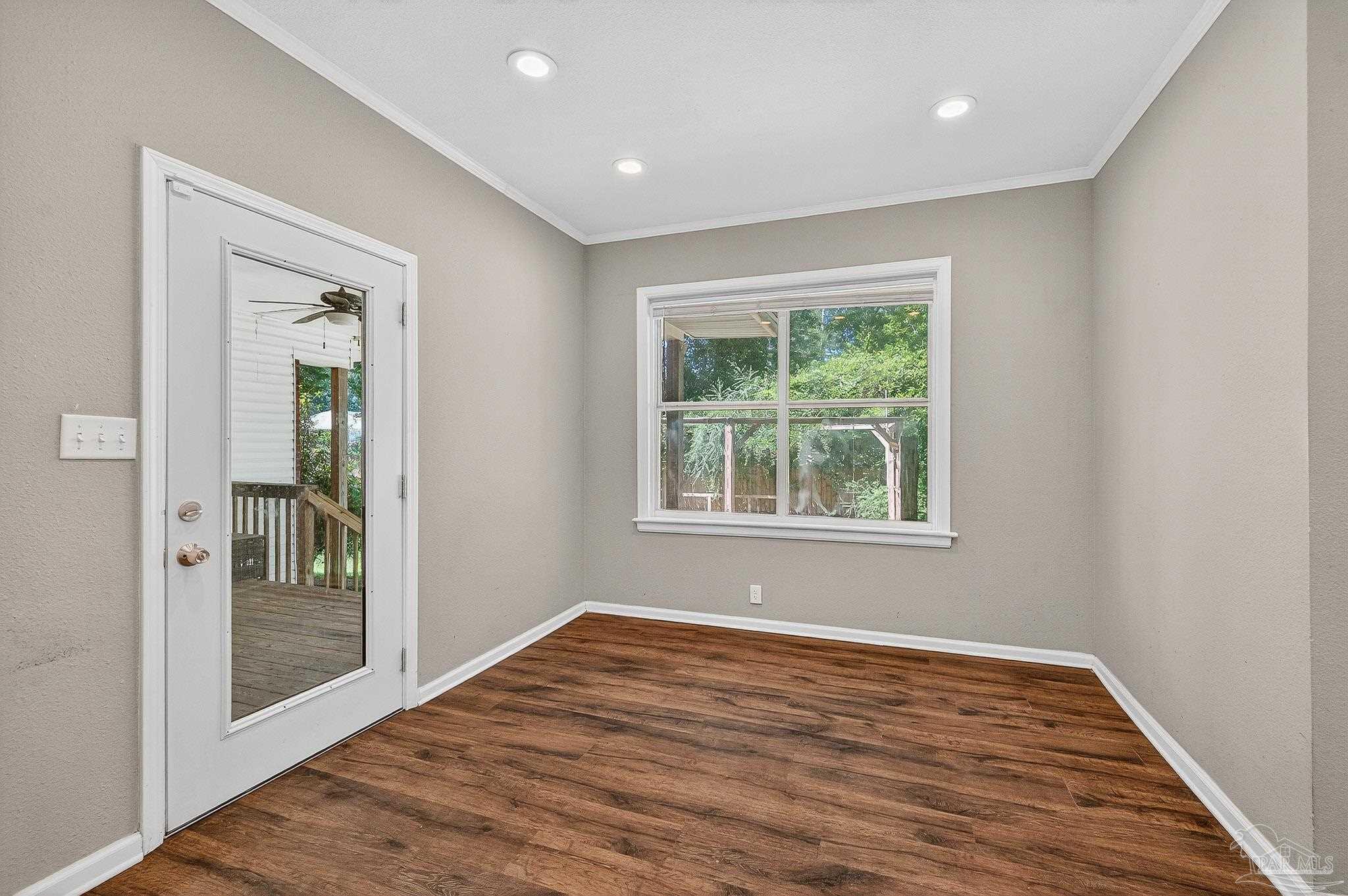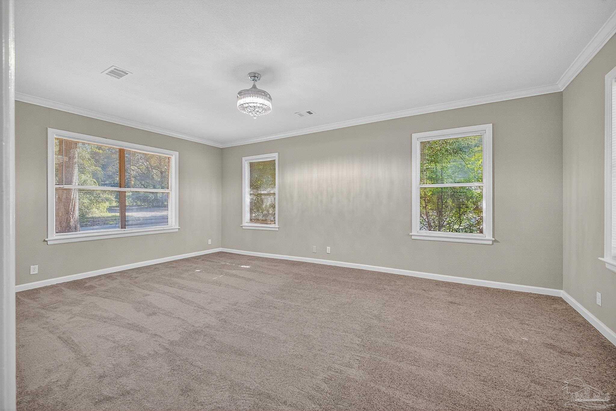 - Baseboards, Ceiling Fan(s), Crown Molding, Game Room, Office/Study